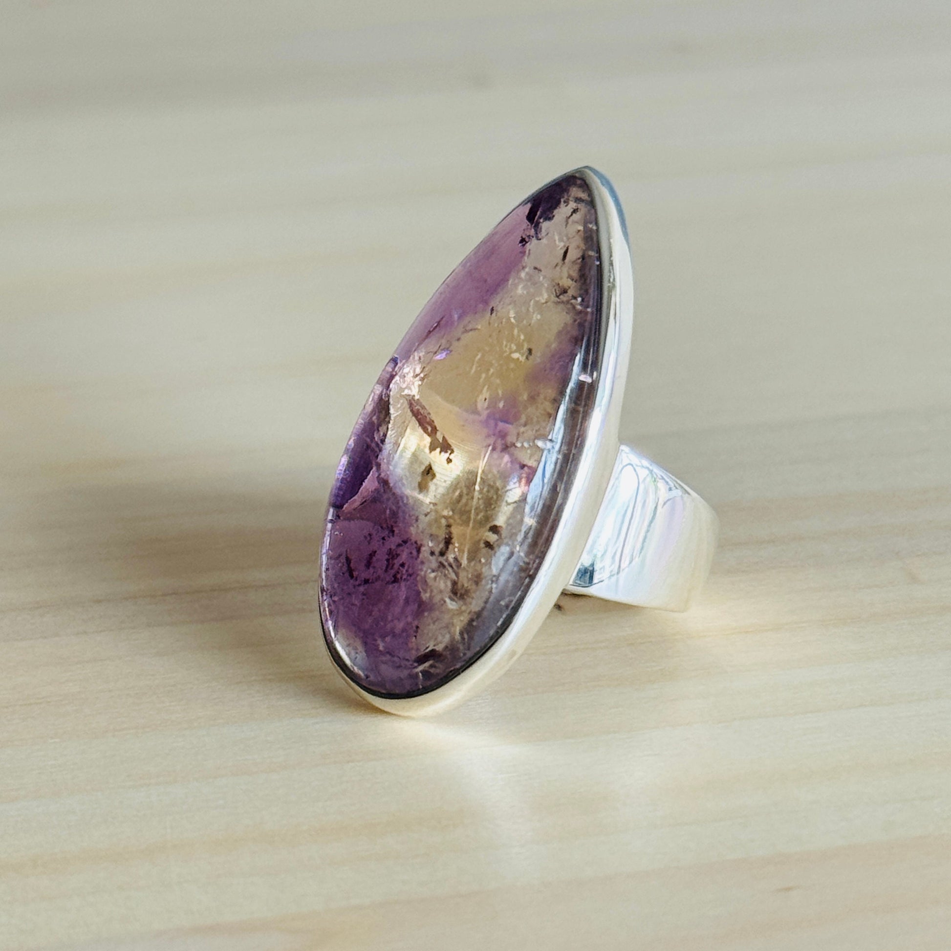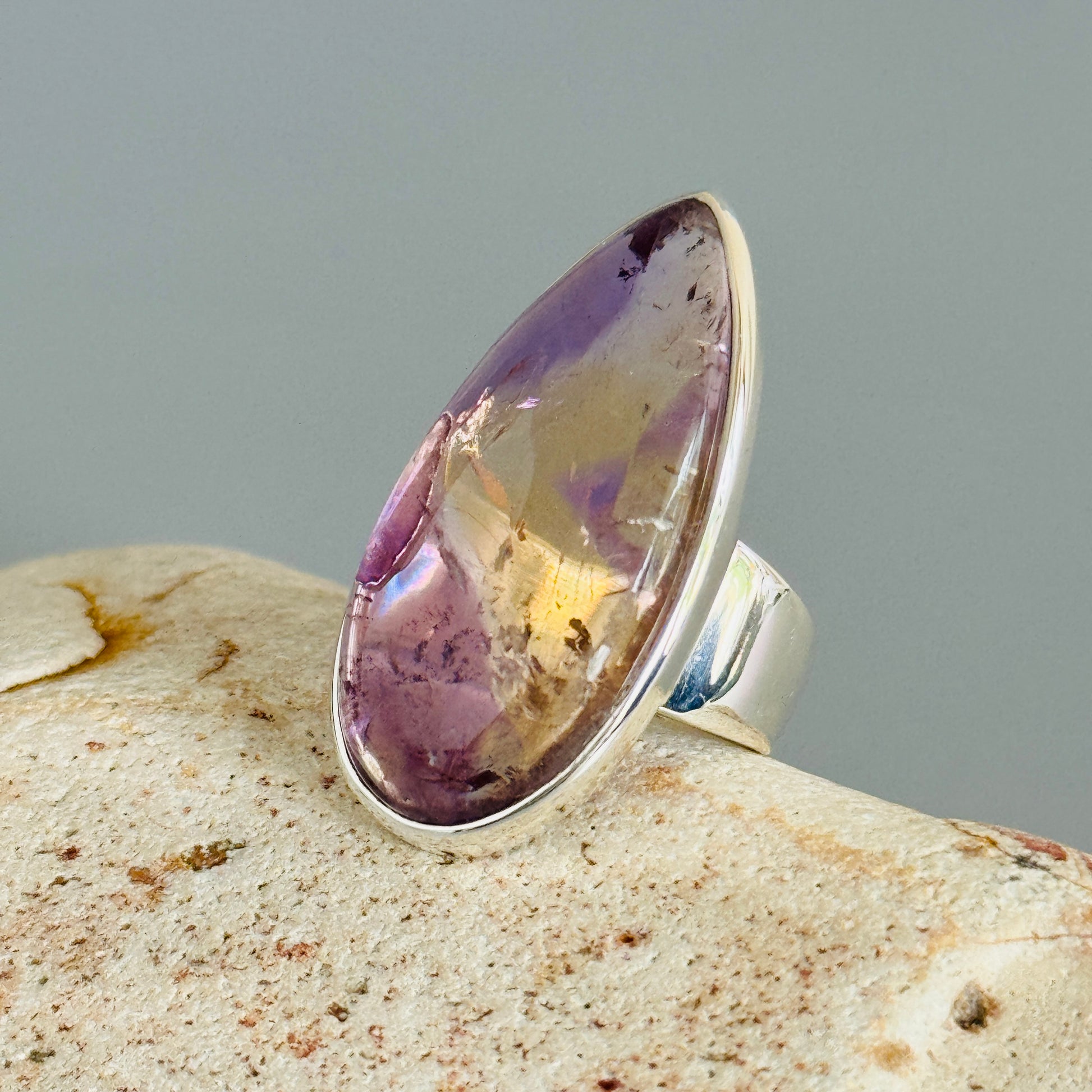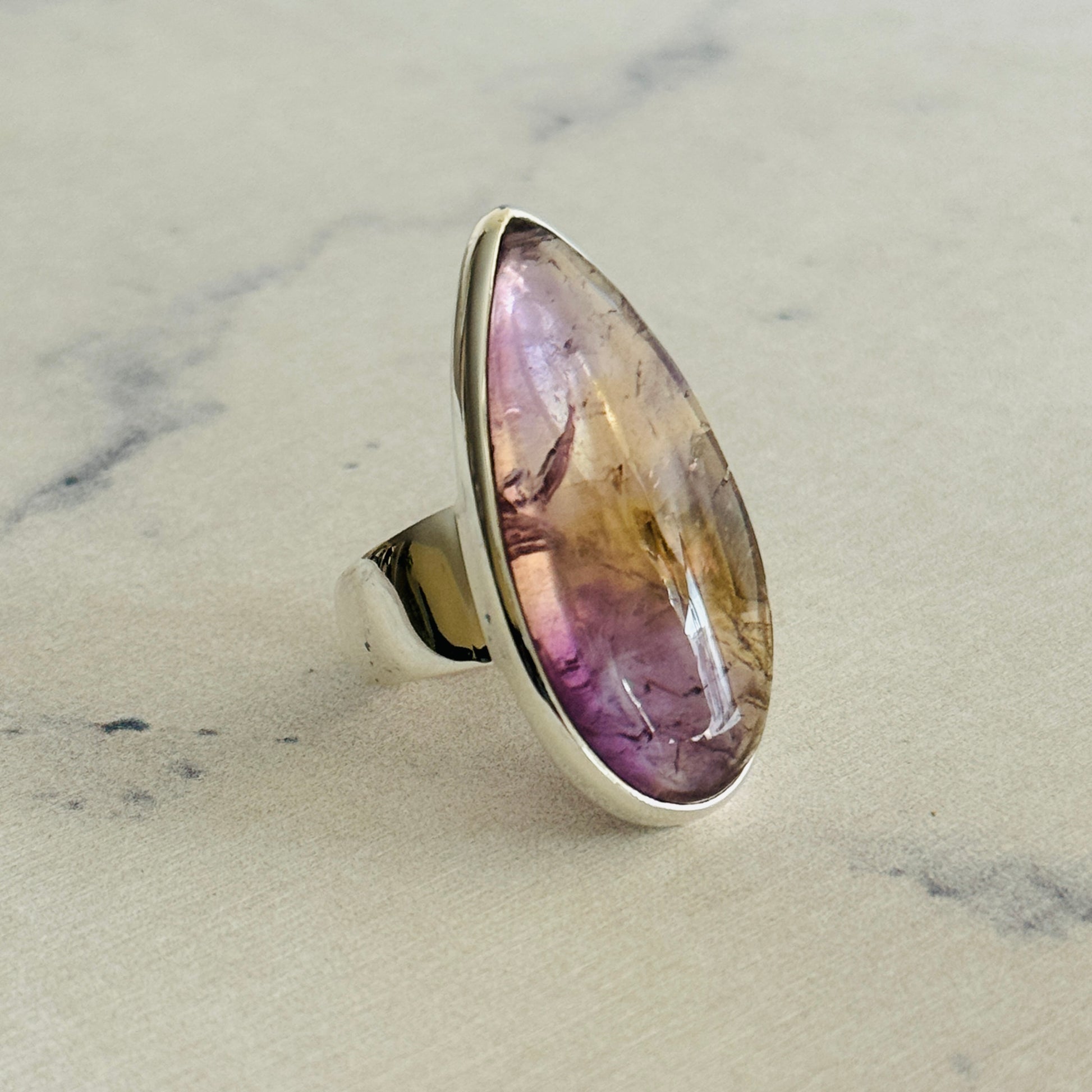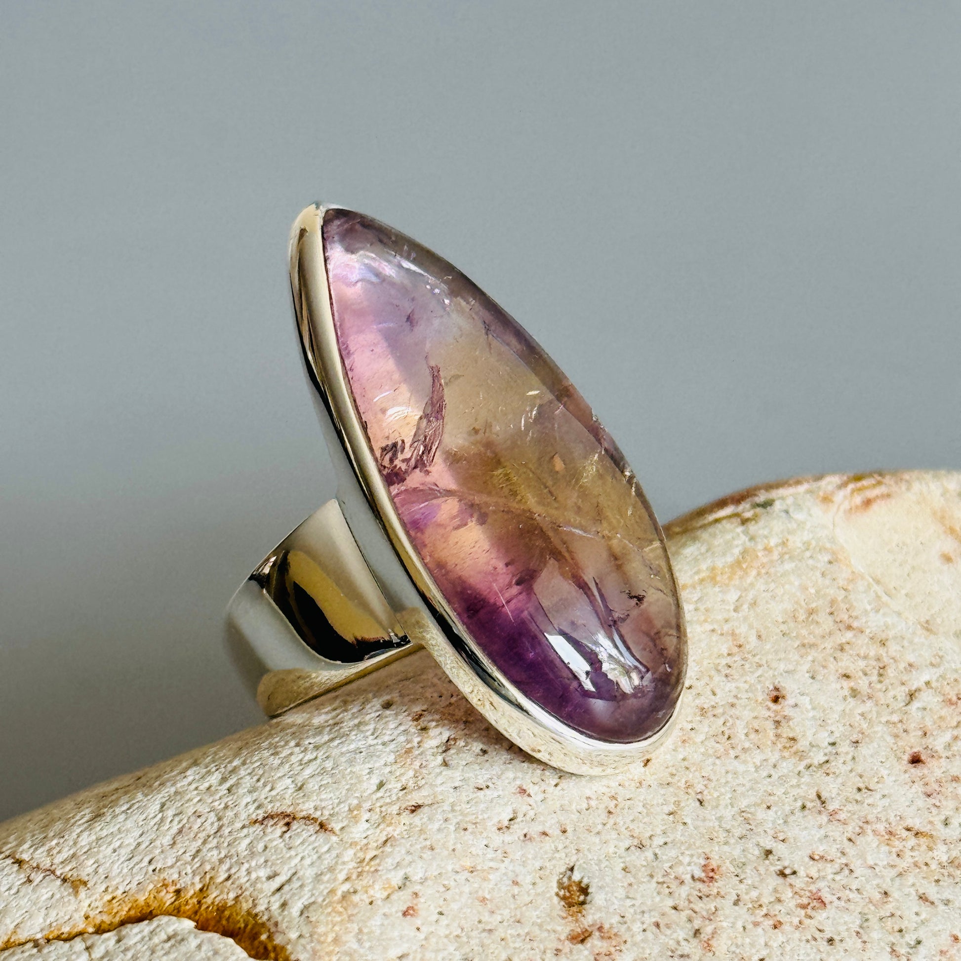 Ametrine Ring Natural Gemstone Ring 925 Sterling Silver Jewelry Purple Gold Stone Ring Handmade Ring Large Gift for Her Adjustable Ring