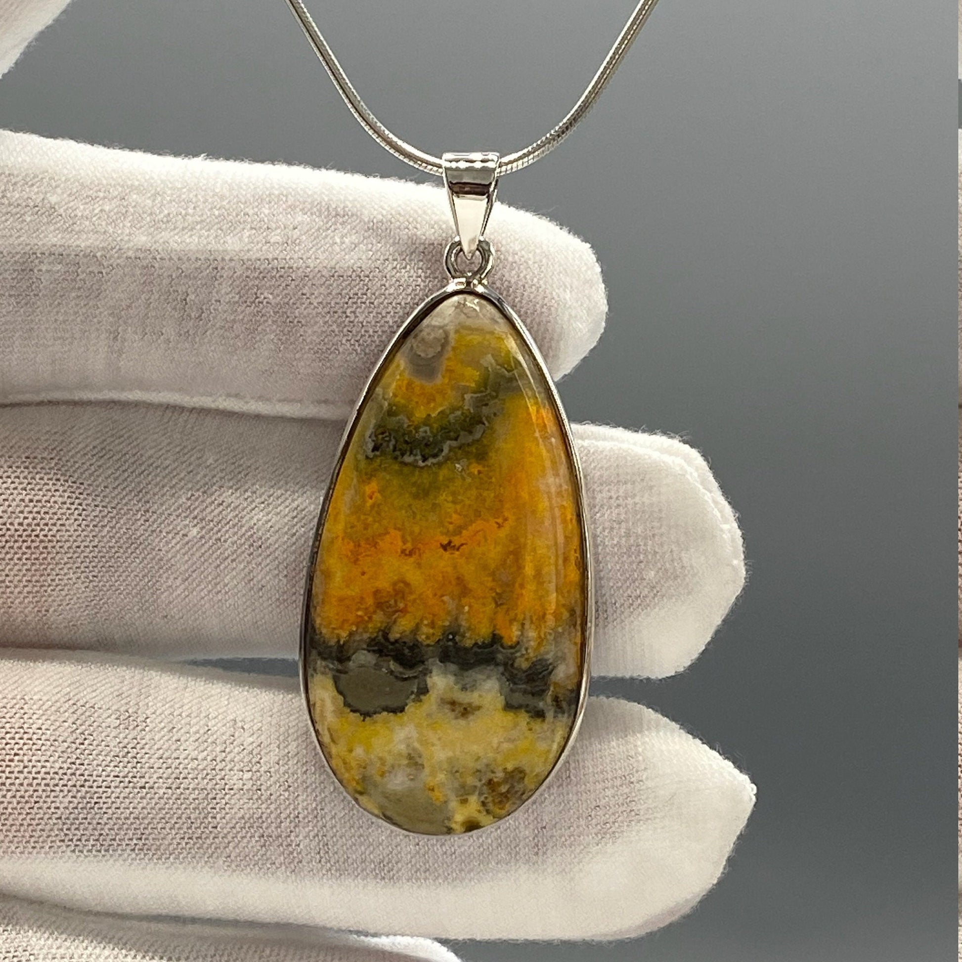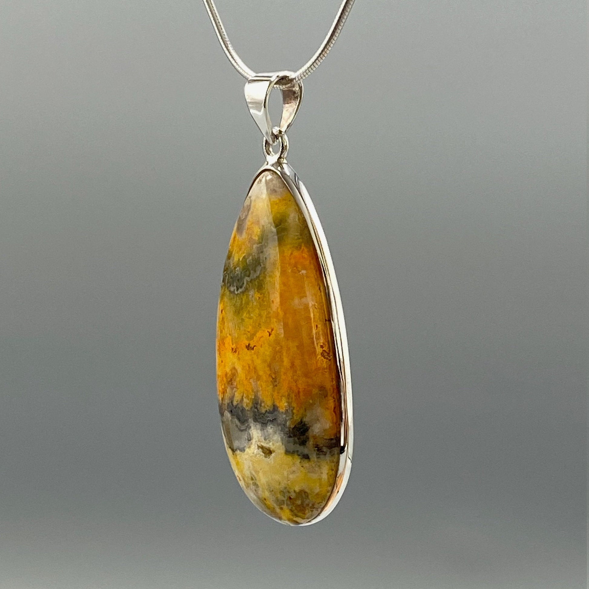 Beautiful natural bumble bee jasper pendant. Handmade high quality 925 silver one of a kind. Natural bumble bee jasper stone. Very stylish and perfect for everyday wear. This beautiful pendant would also make a perfect gift for any healing stones passionate person. Teardrop, Yellow, Orange.