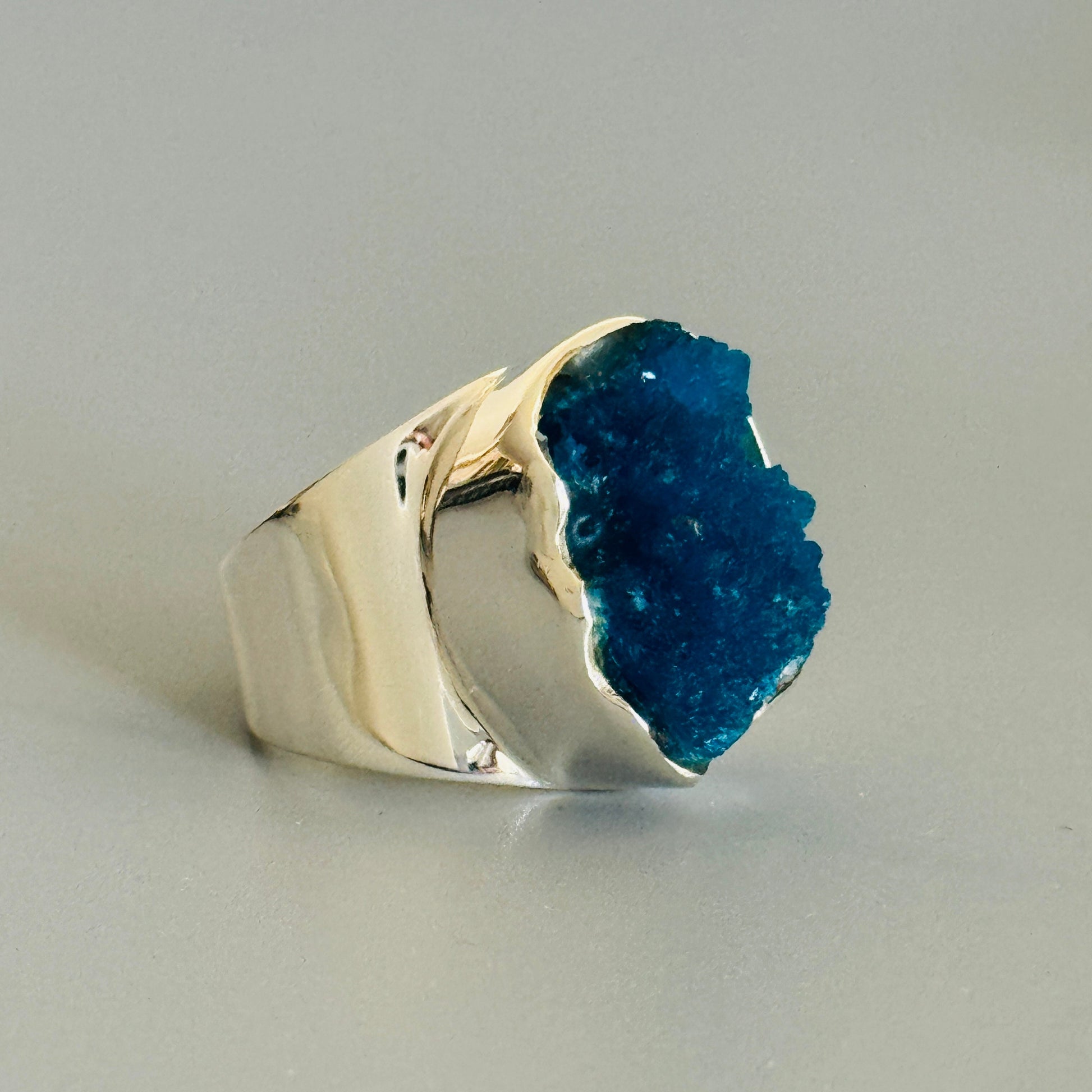 Cavansite ring druzy cavansite ring natural raw cavansite ring handmade 925 sterling silver jewelry rare unique natural blue crystal, size 8