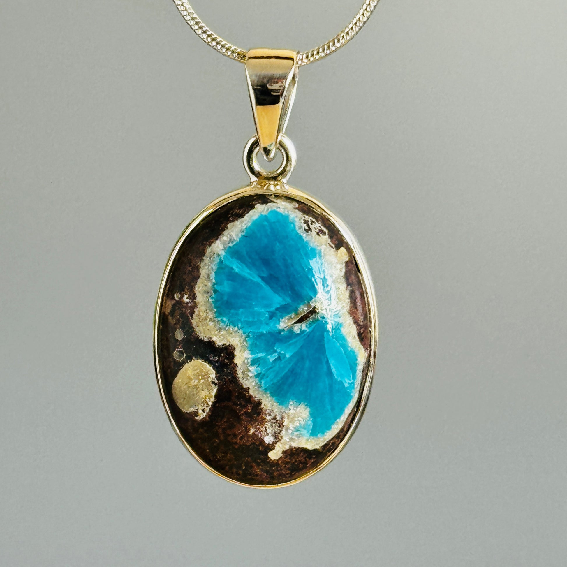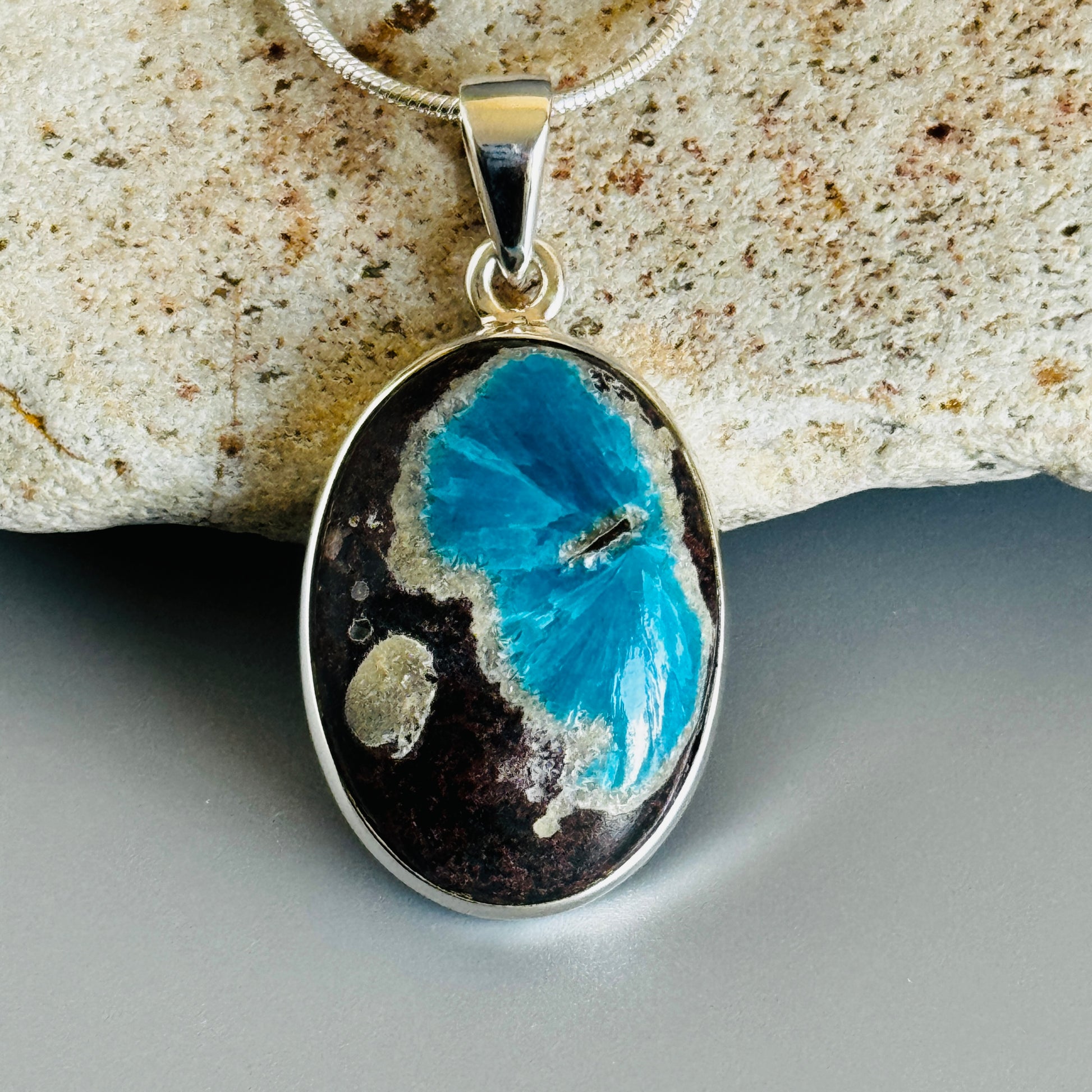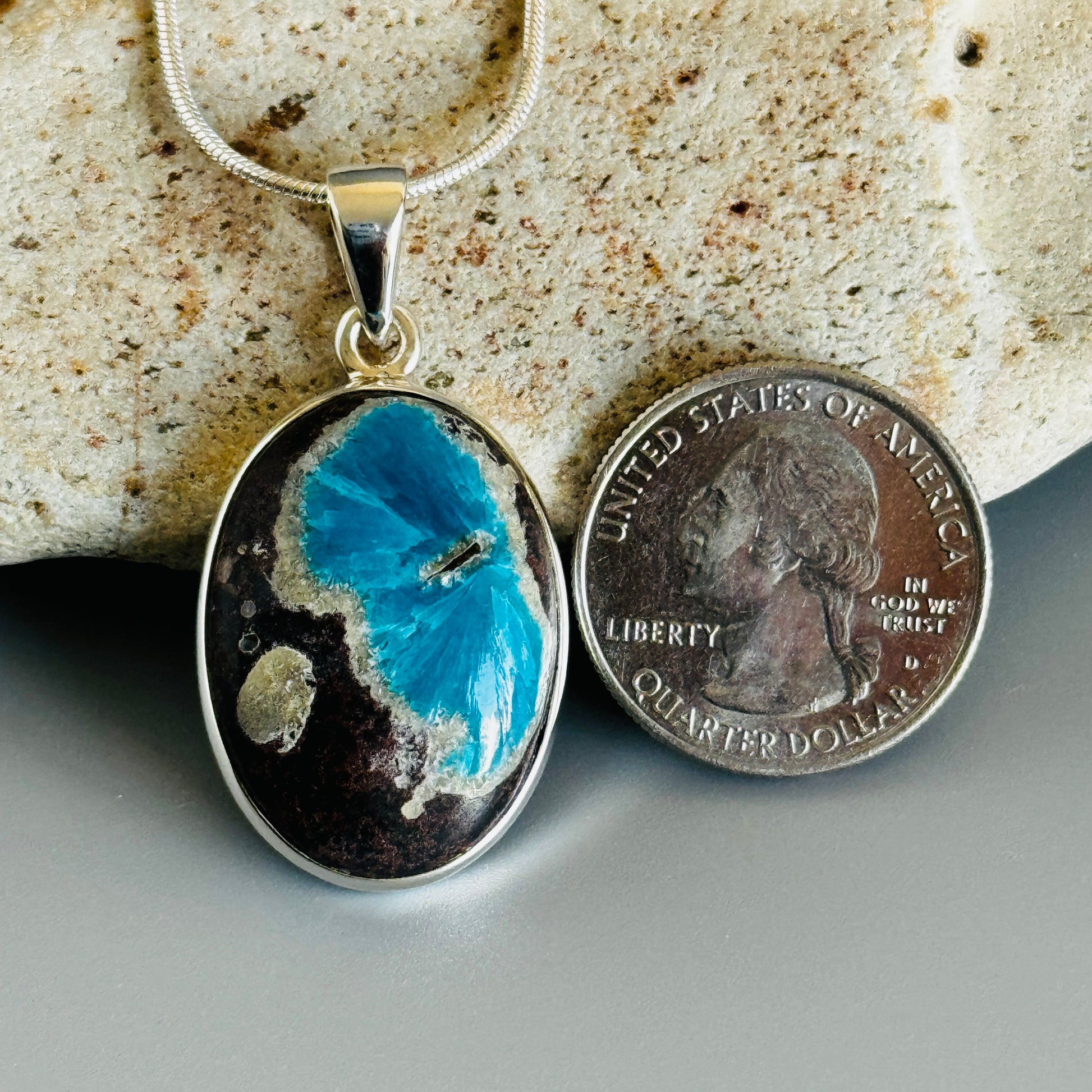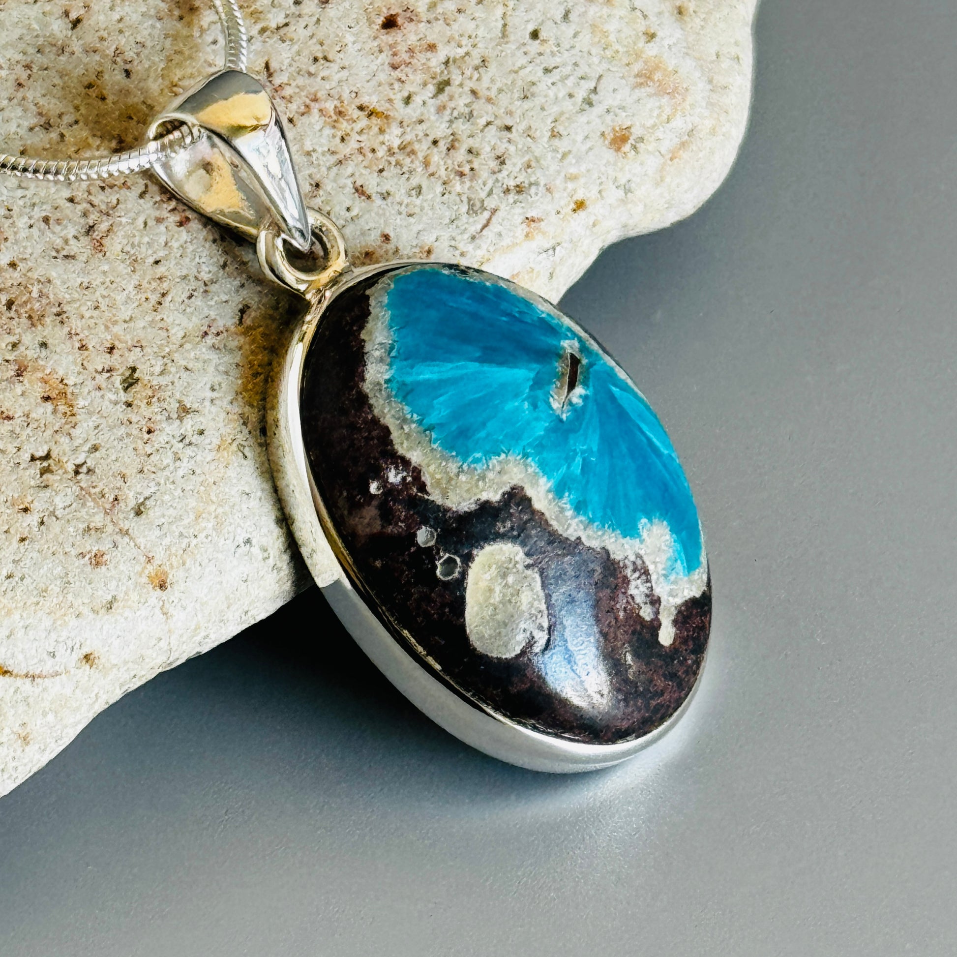 Cavansite Pendant, Handmade, 925 Sterling Silver, Polished stone, Raw Cavansite Pendant, Blue Cavansite, Gift for Her/Him, Healing Gemstone. One of a kind, Unique.