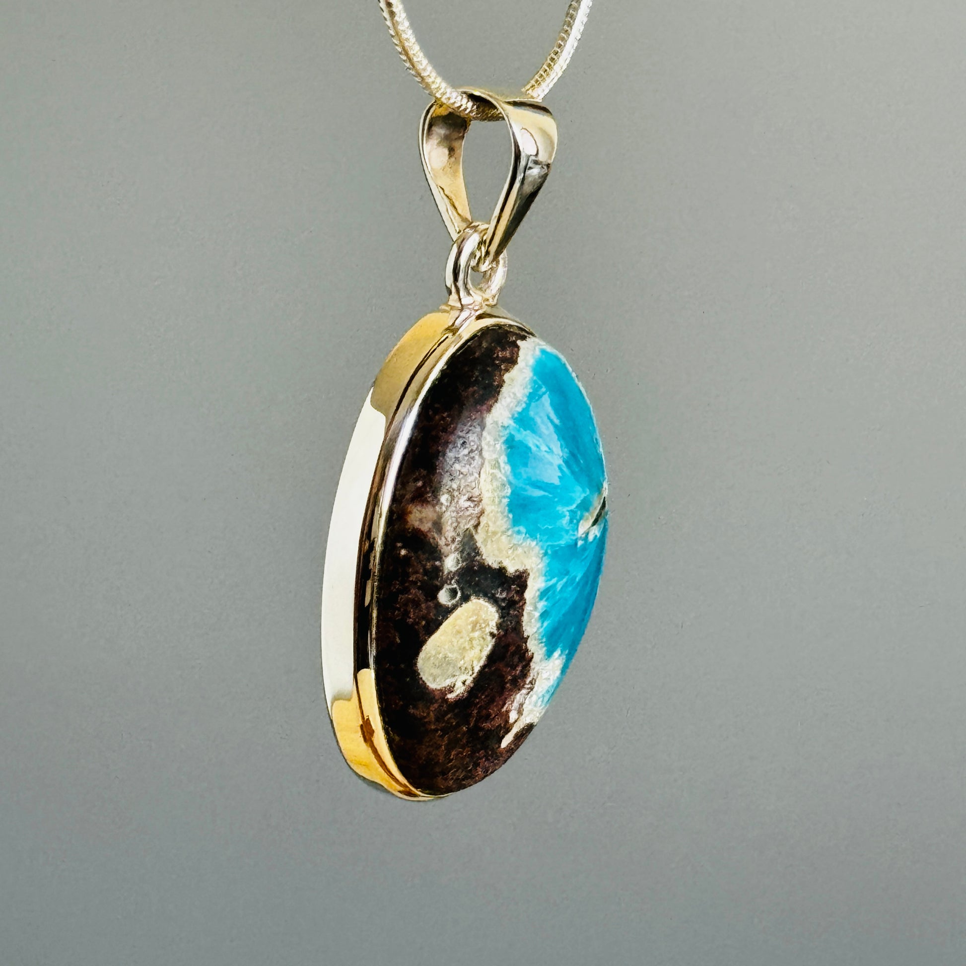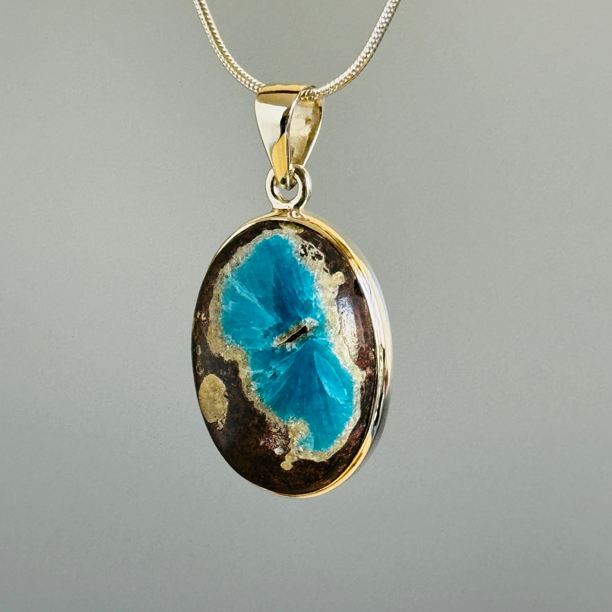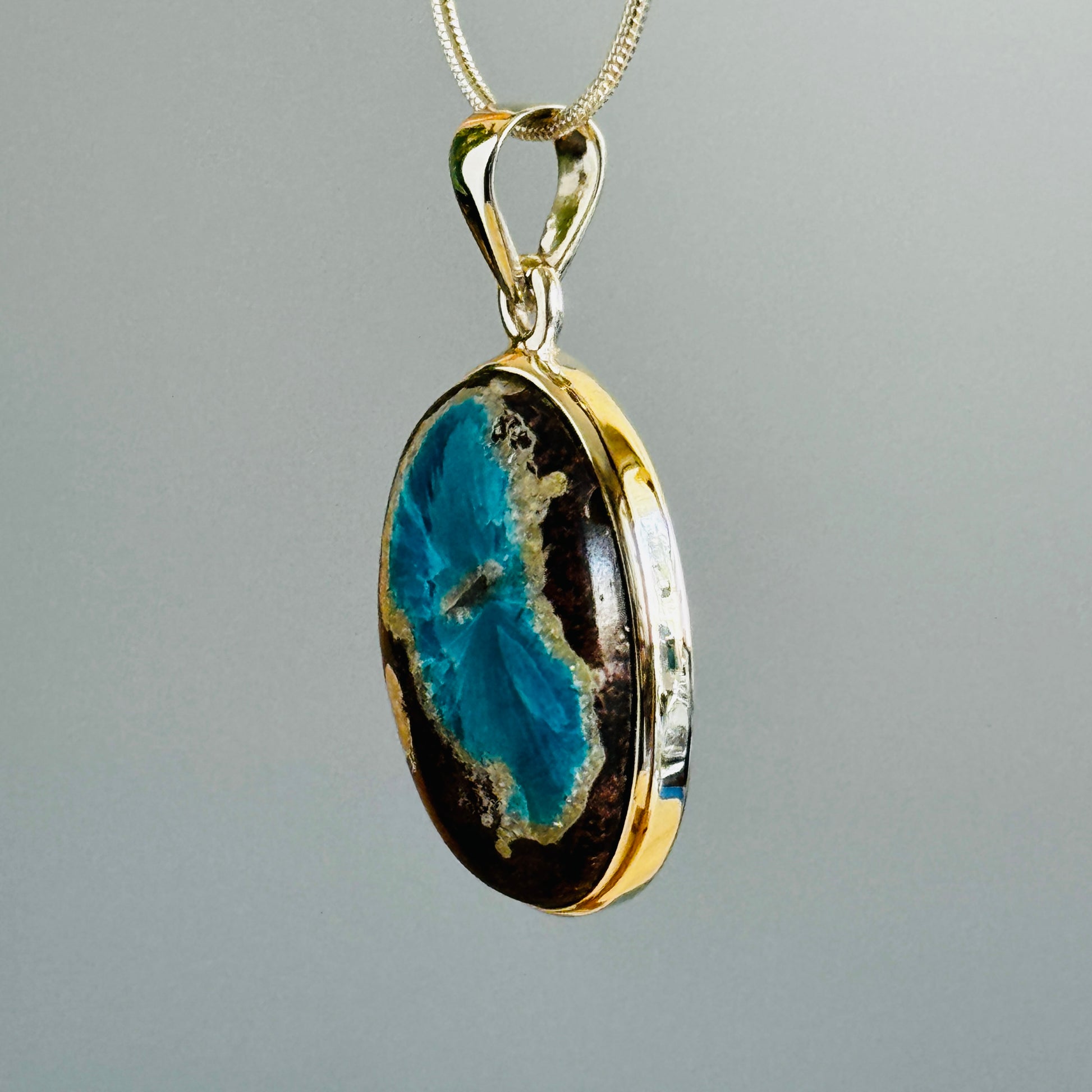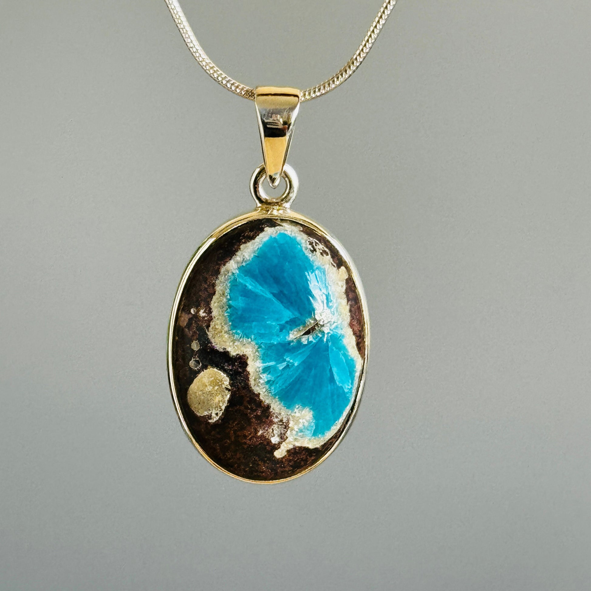 Cavansite Pendant, Handmade, 925 Sterling Silver, Polished stone, Raw Cavansite Pendant, Blue Cavansite, Gift for Her/Him, Healing Gemstone. One of a kind, Unique.