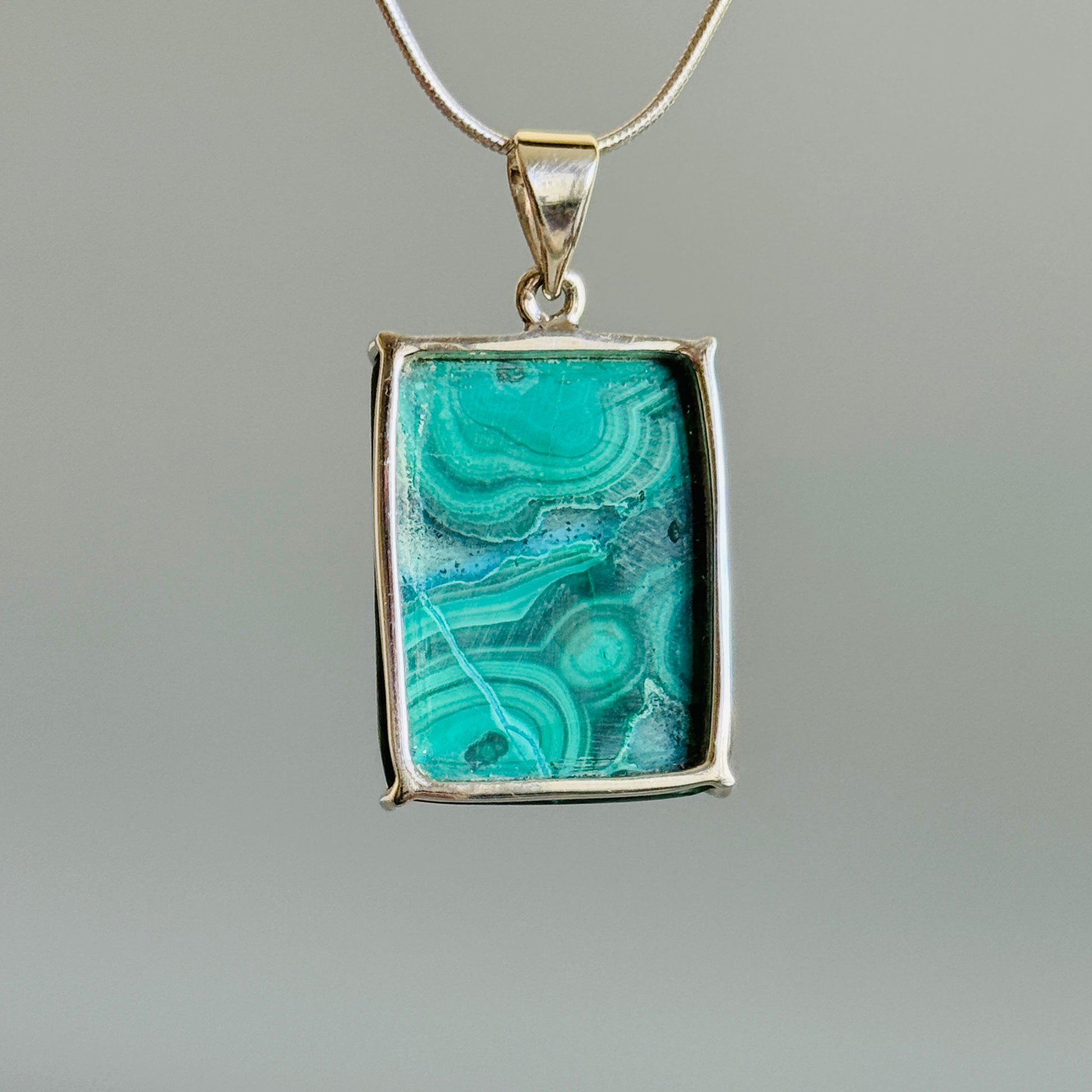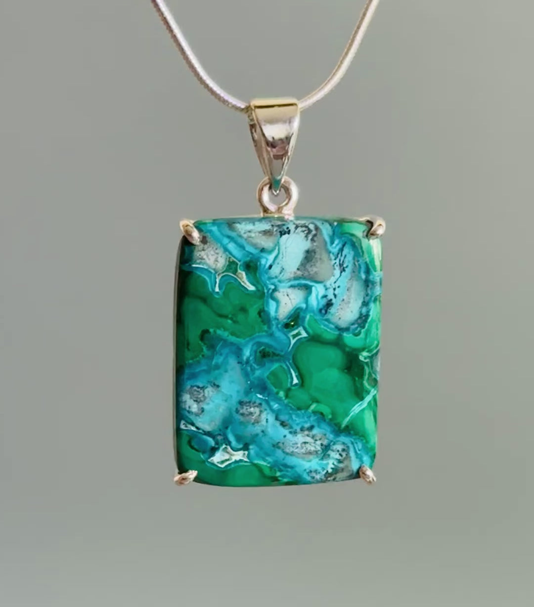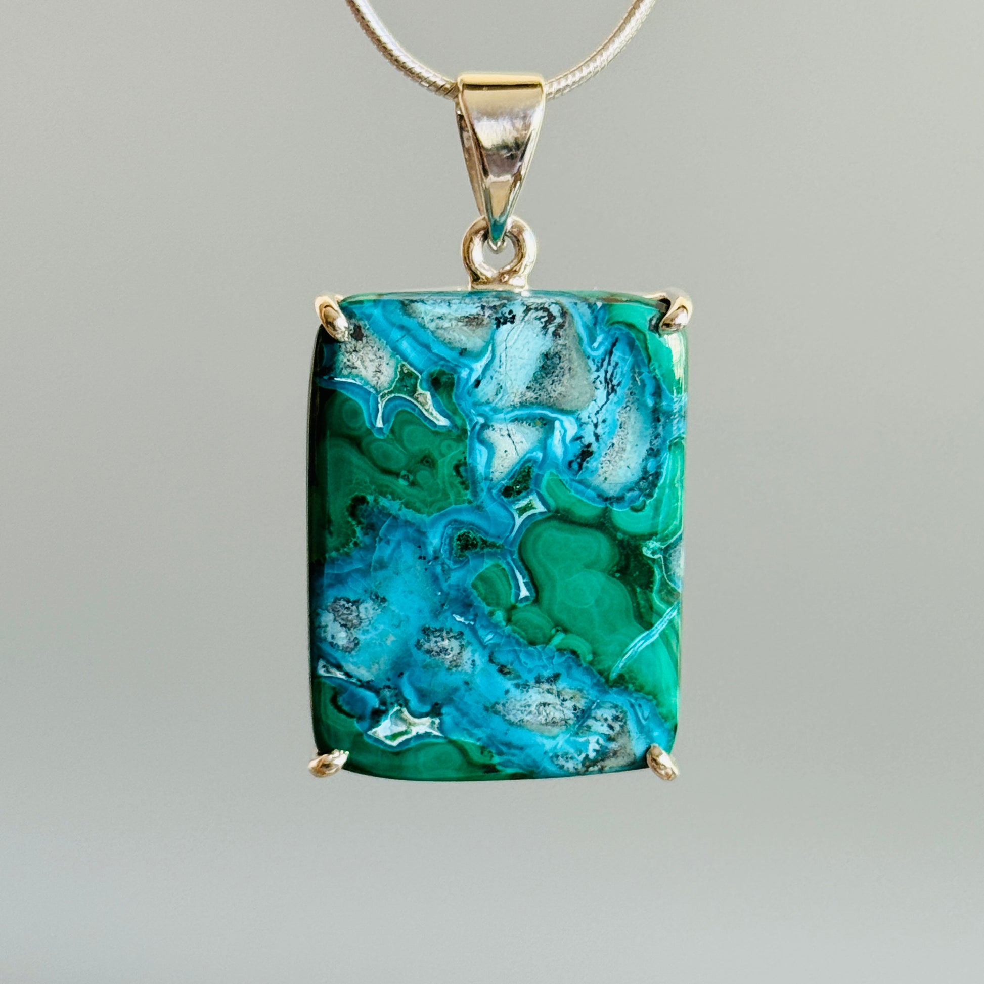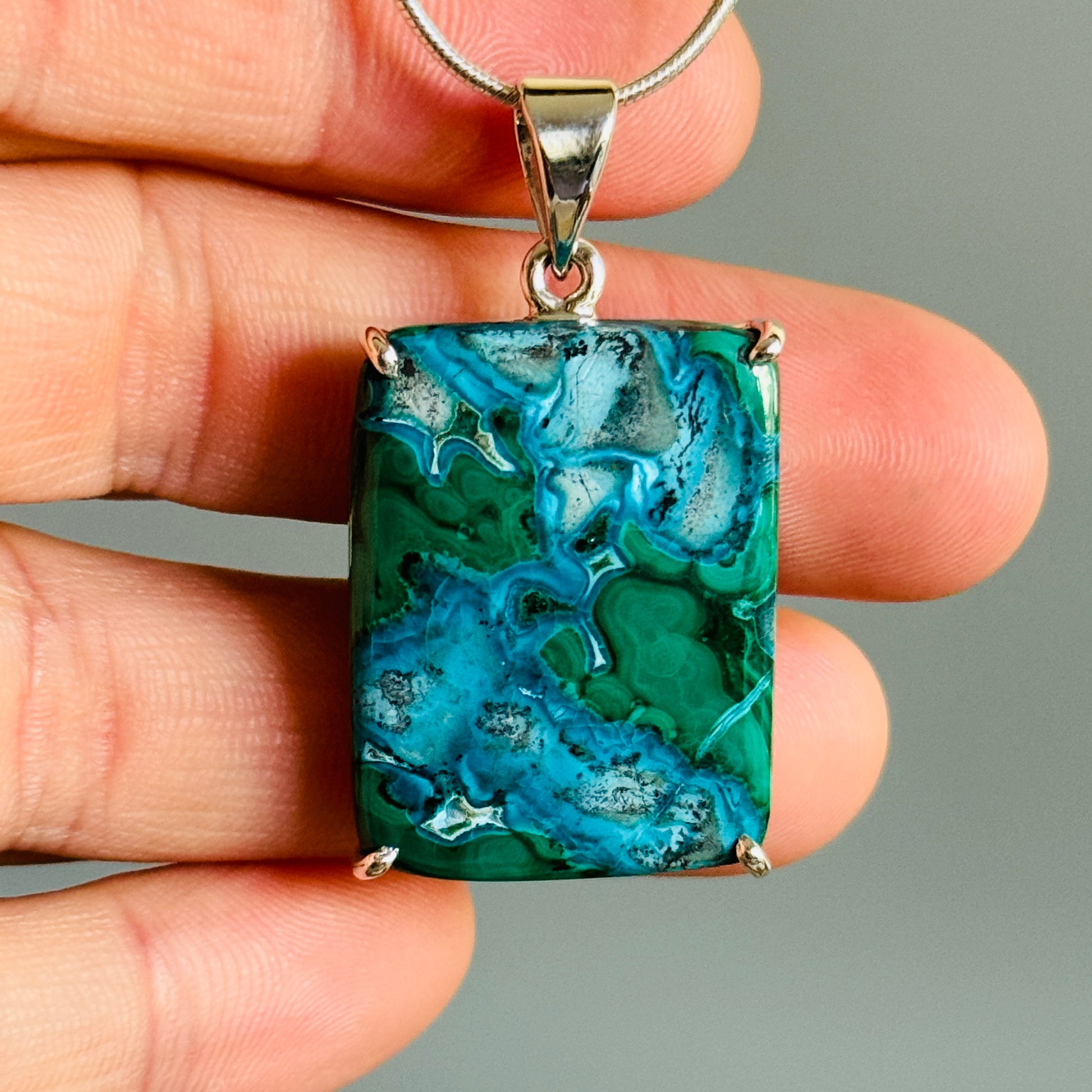 Chrysocolla with Malachite Pendant Blue Green Mosaic Handmade Sterling Silver 925 Inner Balance Crystal Natural Rare Formation Natural Unique Large Rectangle