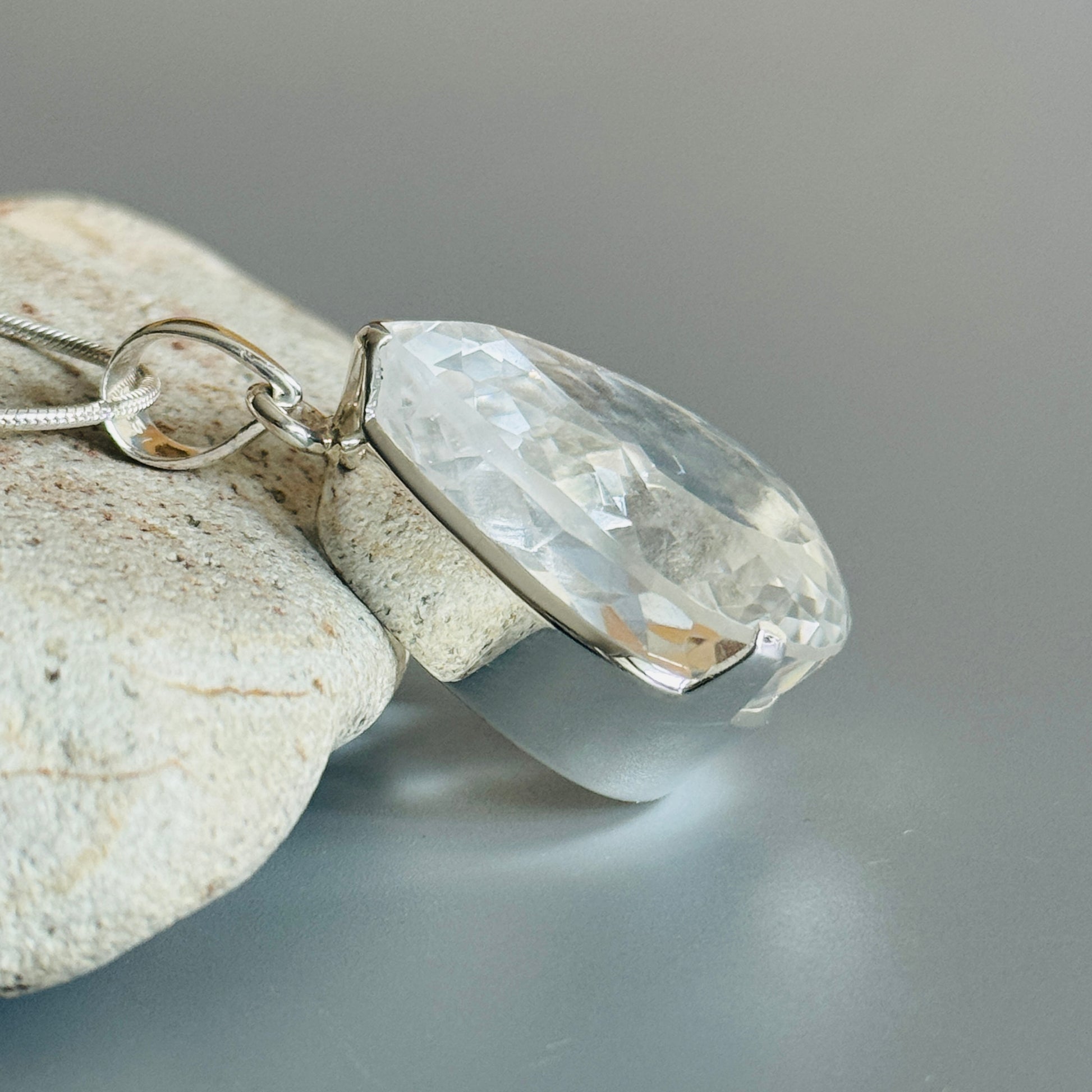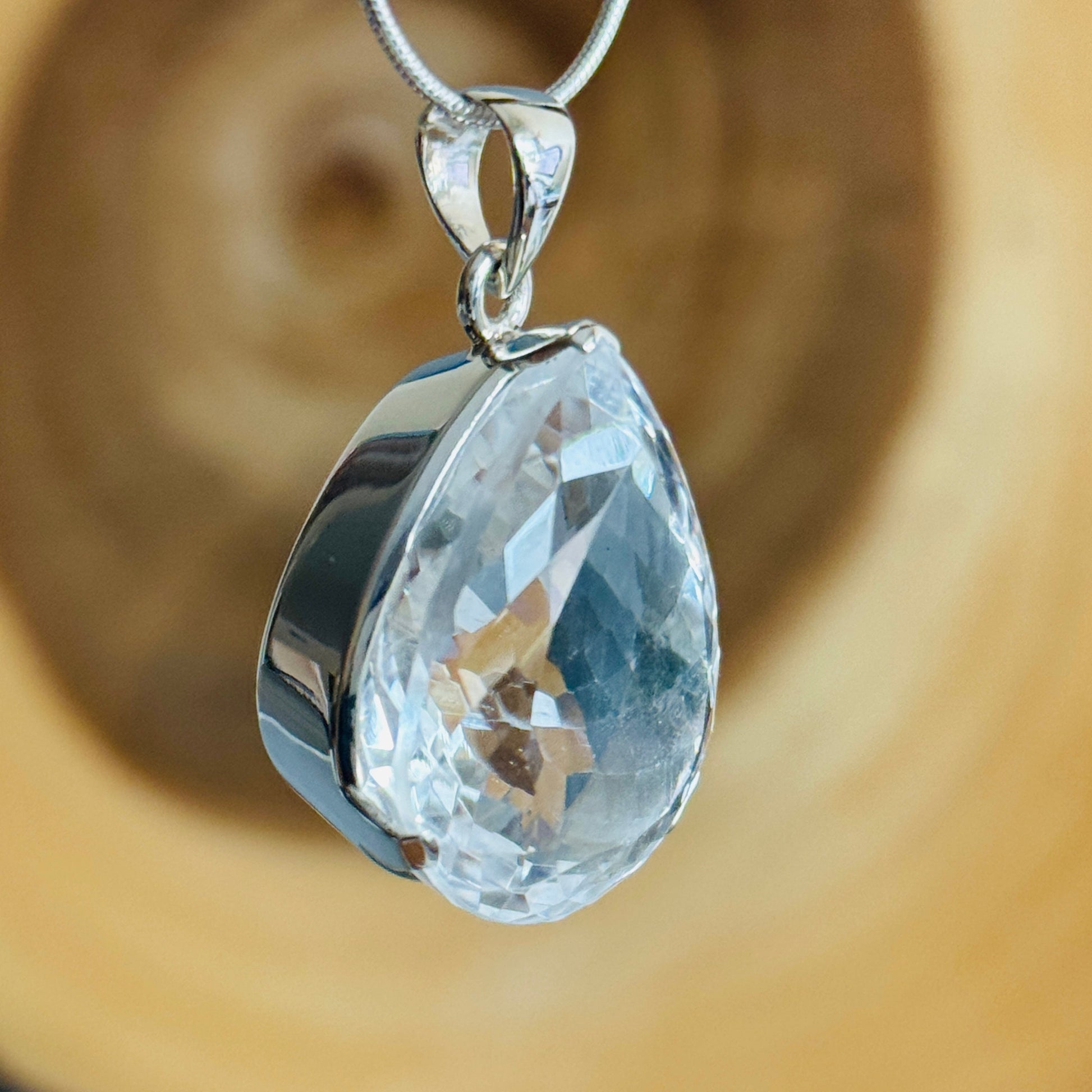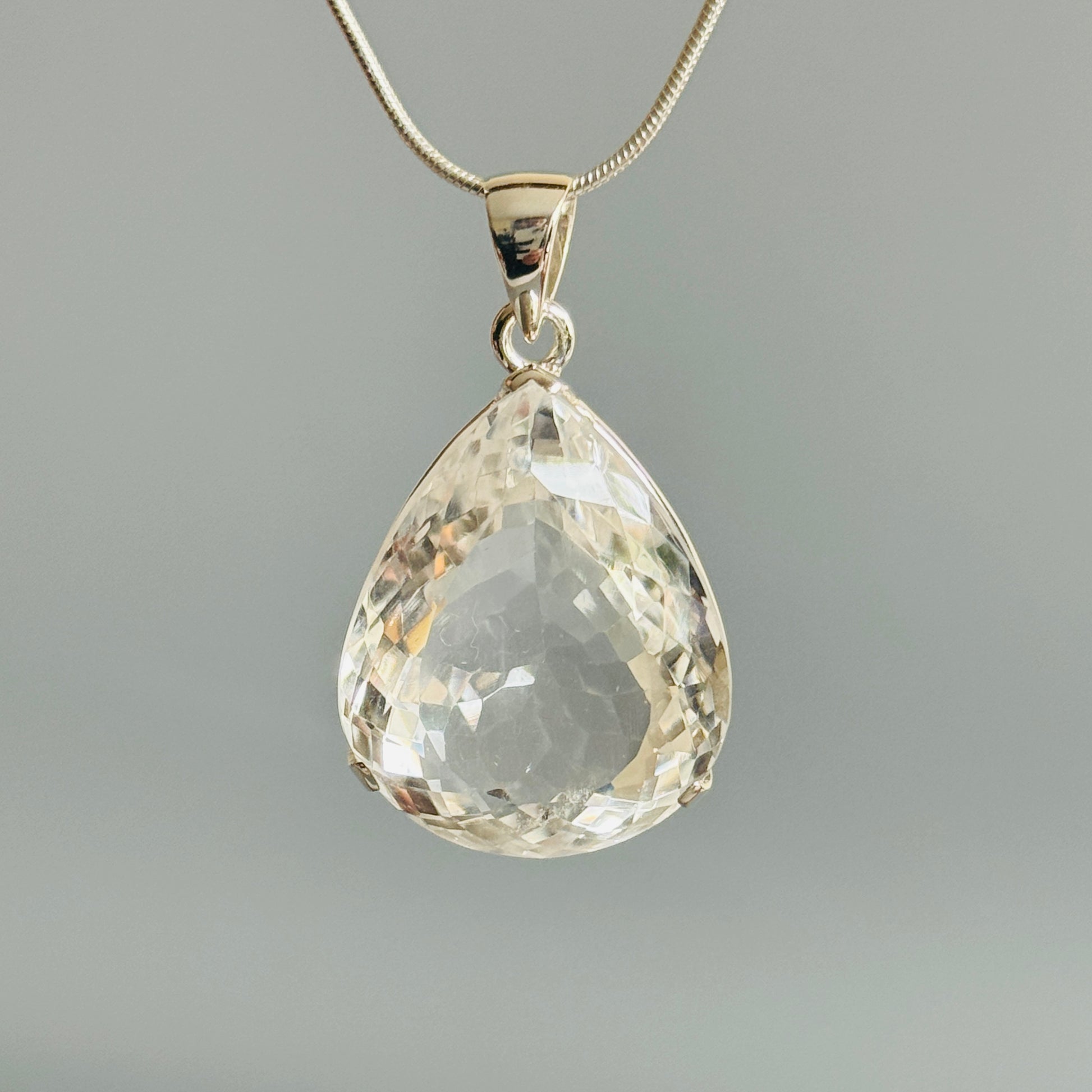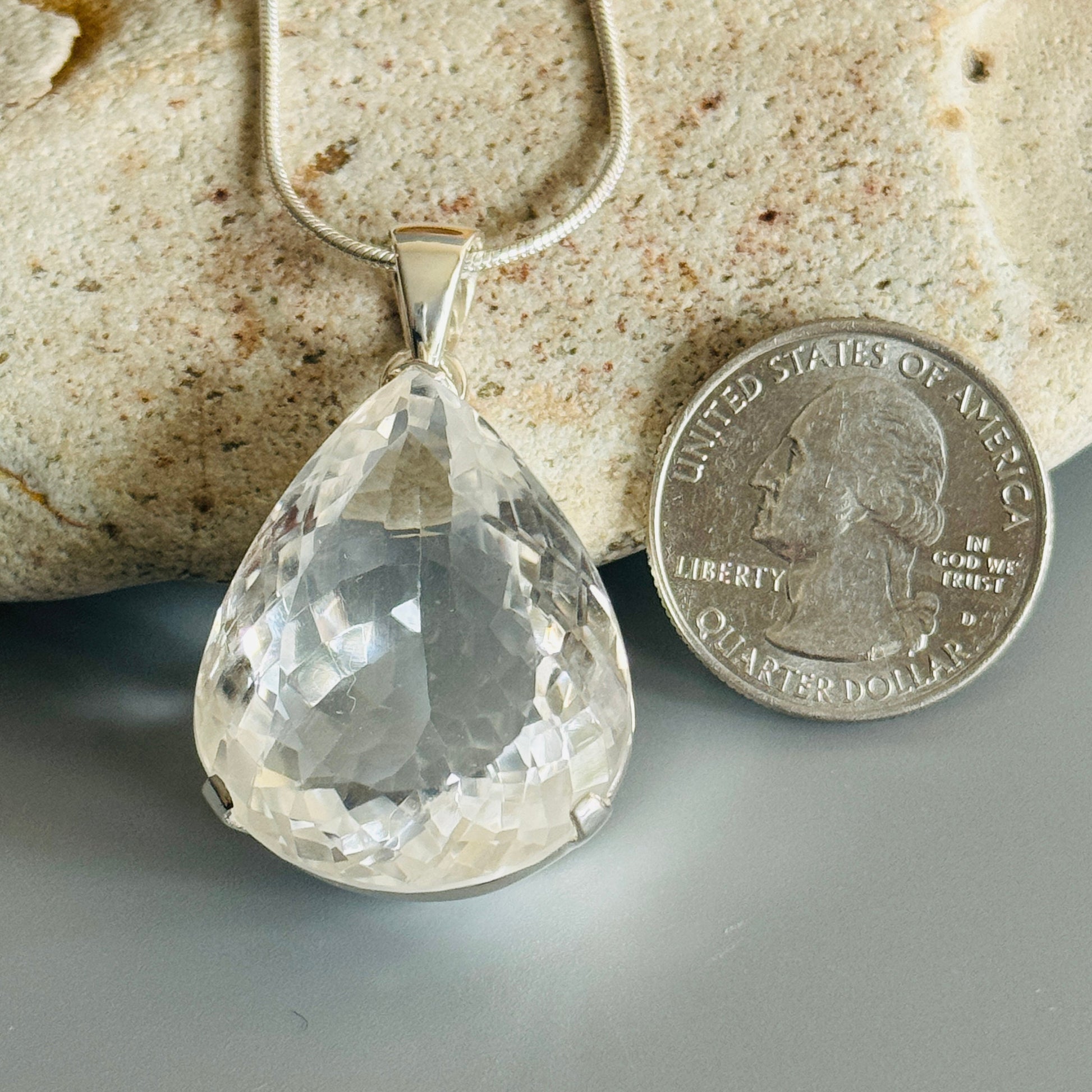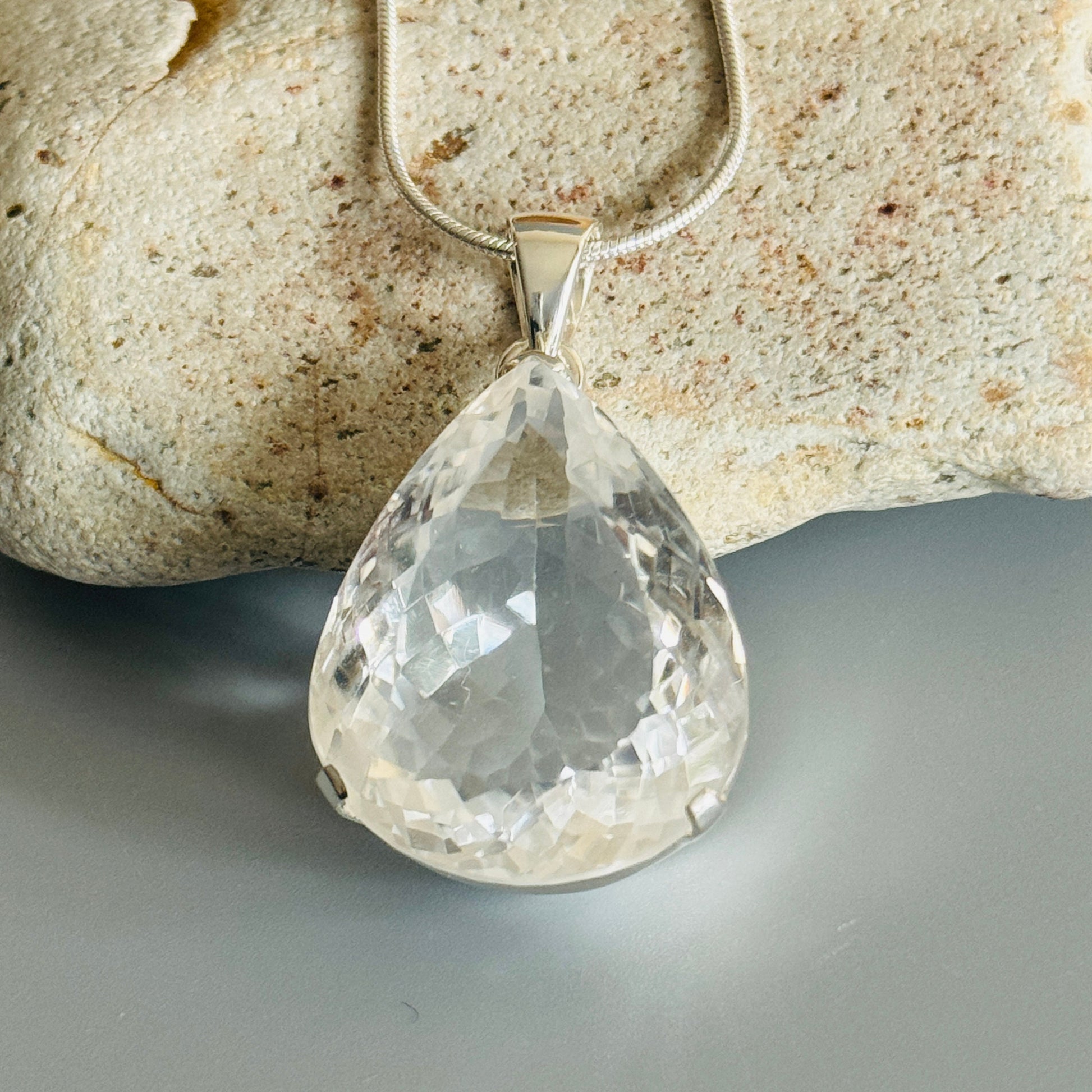 Clear Quartz Pendant , Handmade Sterling Silver Pendant , Healing Crystal Pendant , Natural Clear Quartz Pendant , Quartz Crystal Pendant Large Teardrop