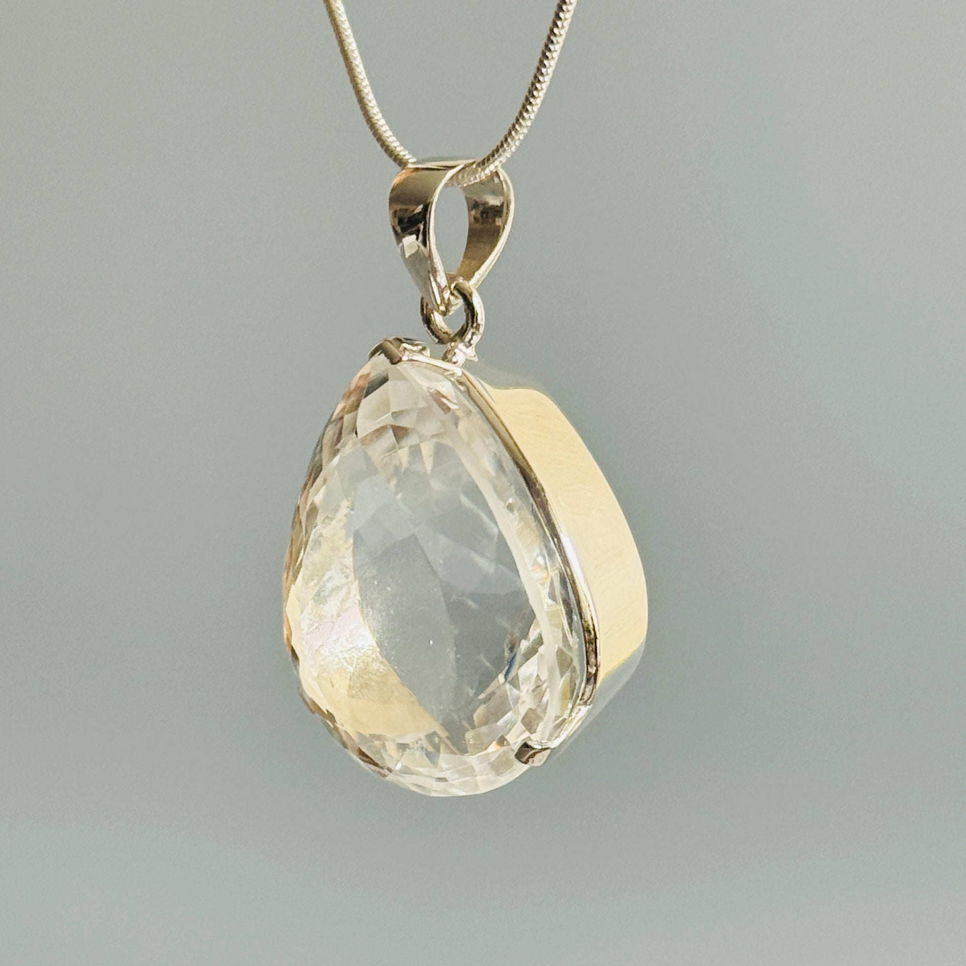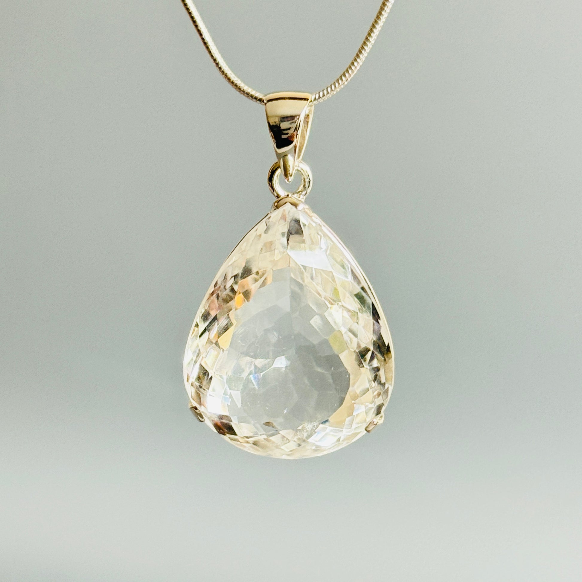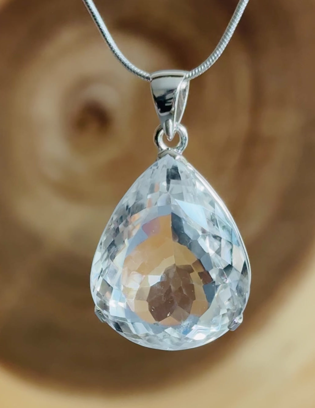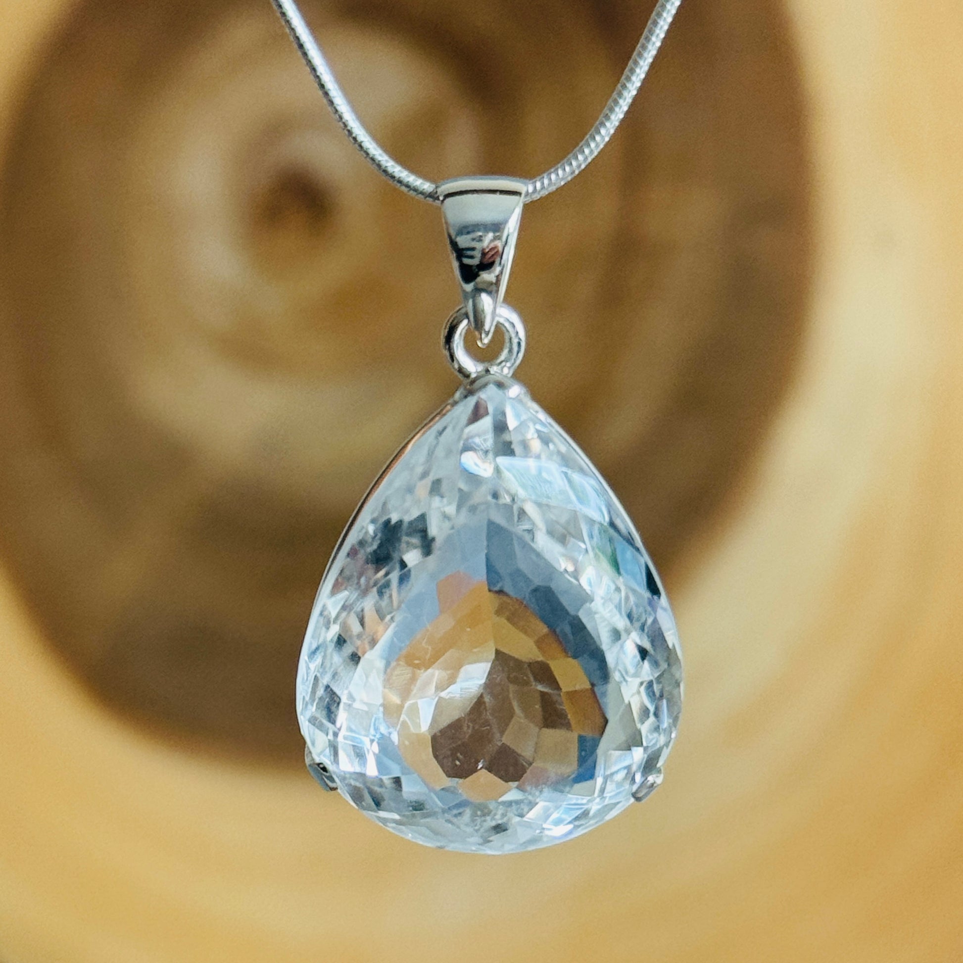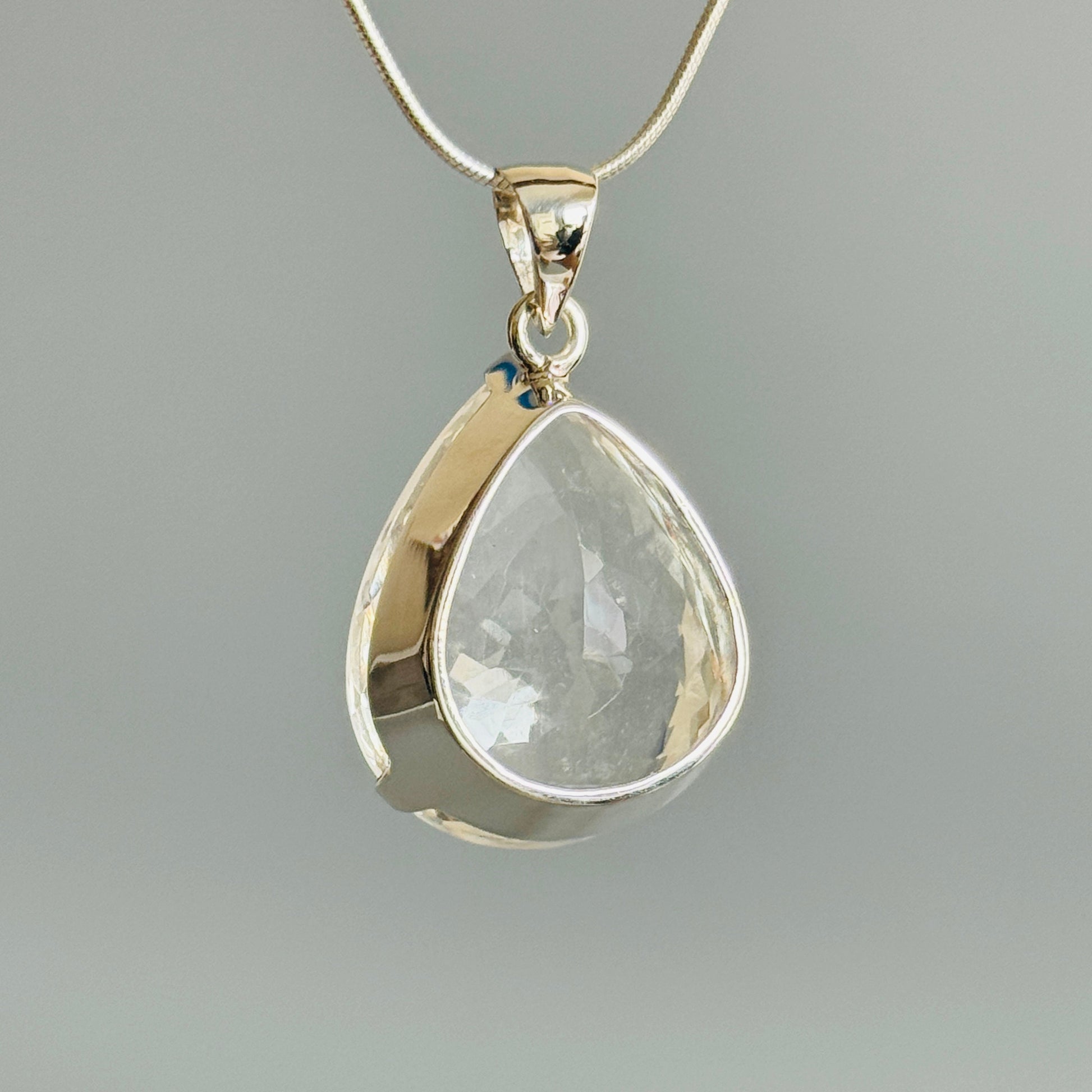 Clear Quartz Pendant , Handmade Sterling Silver Pendant , Healing Crystal Pendant , Natural Clear Quartz Pendant , Quartz Crystal Pendant Large Teardrop