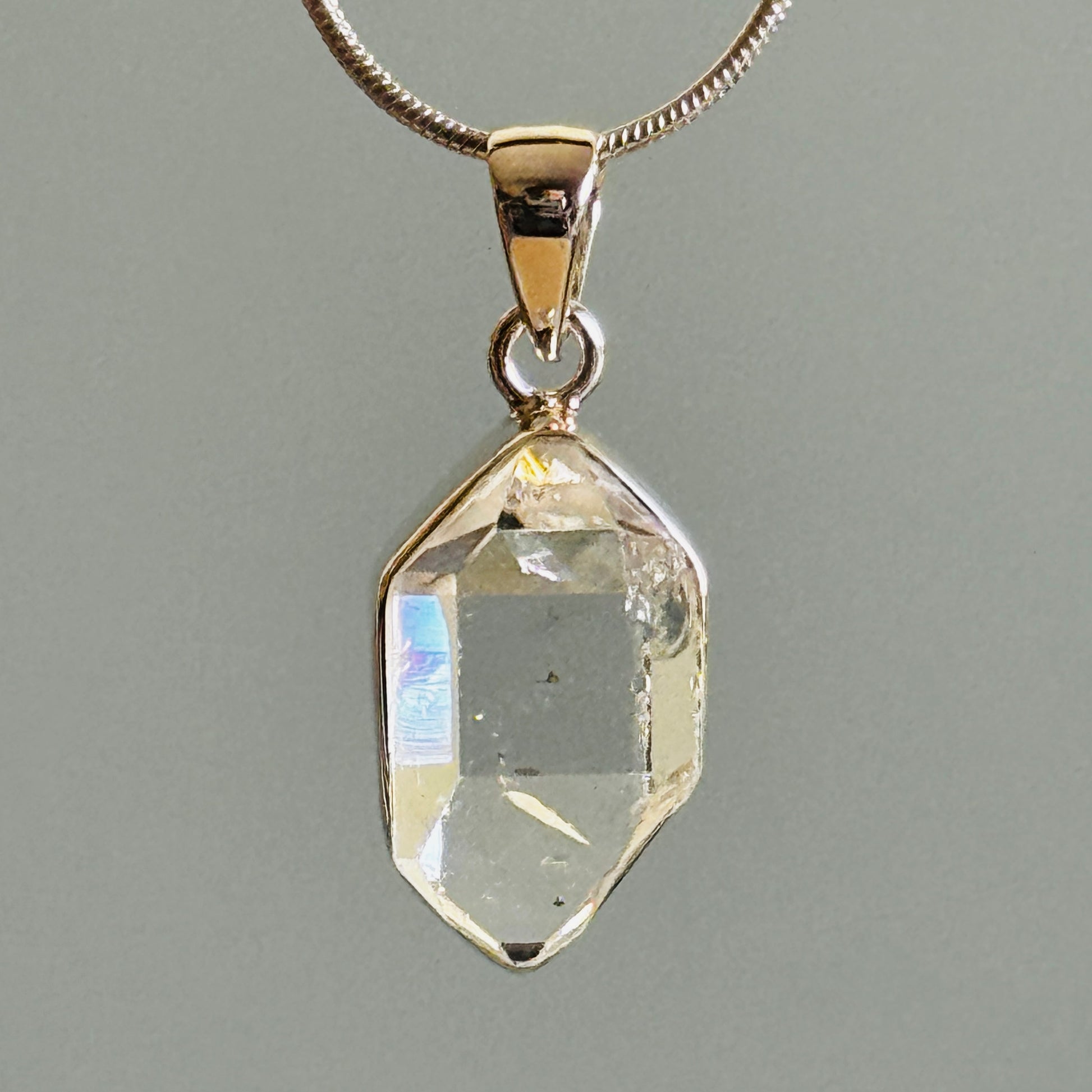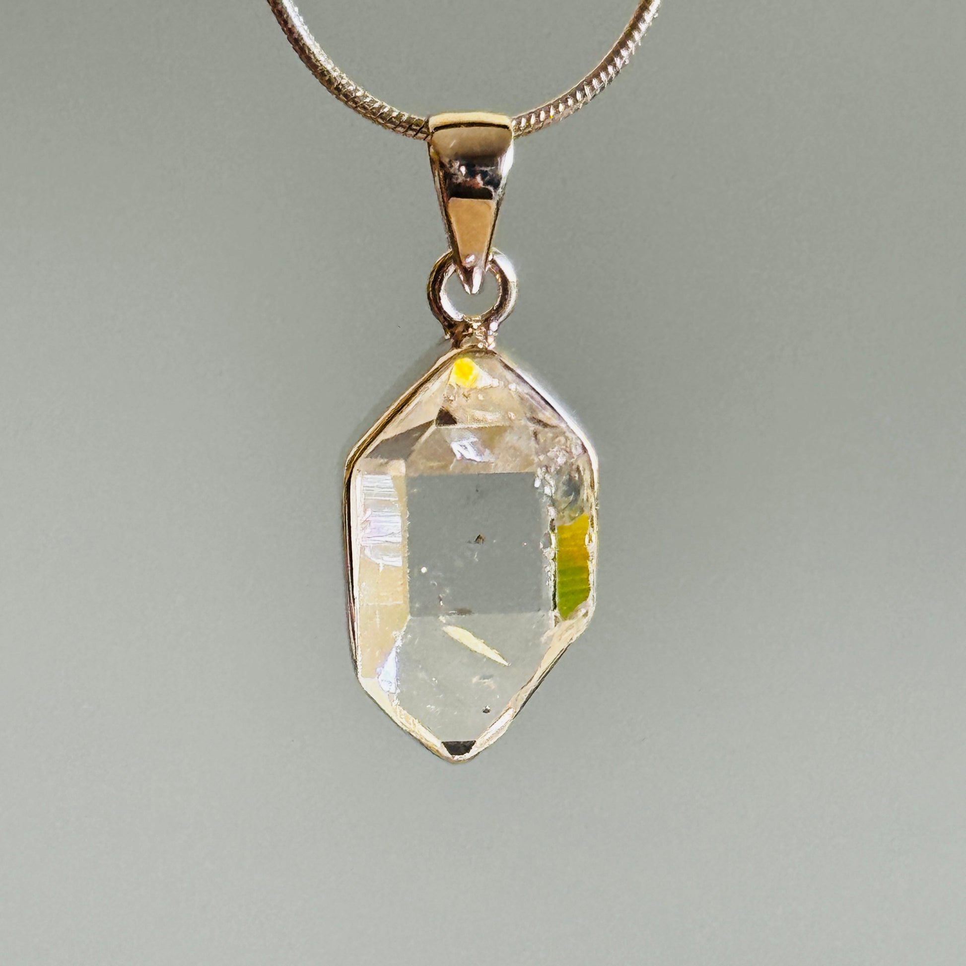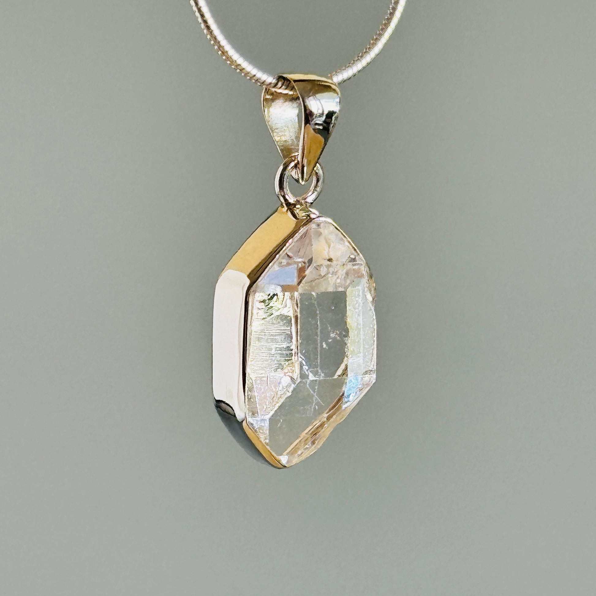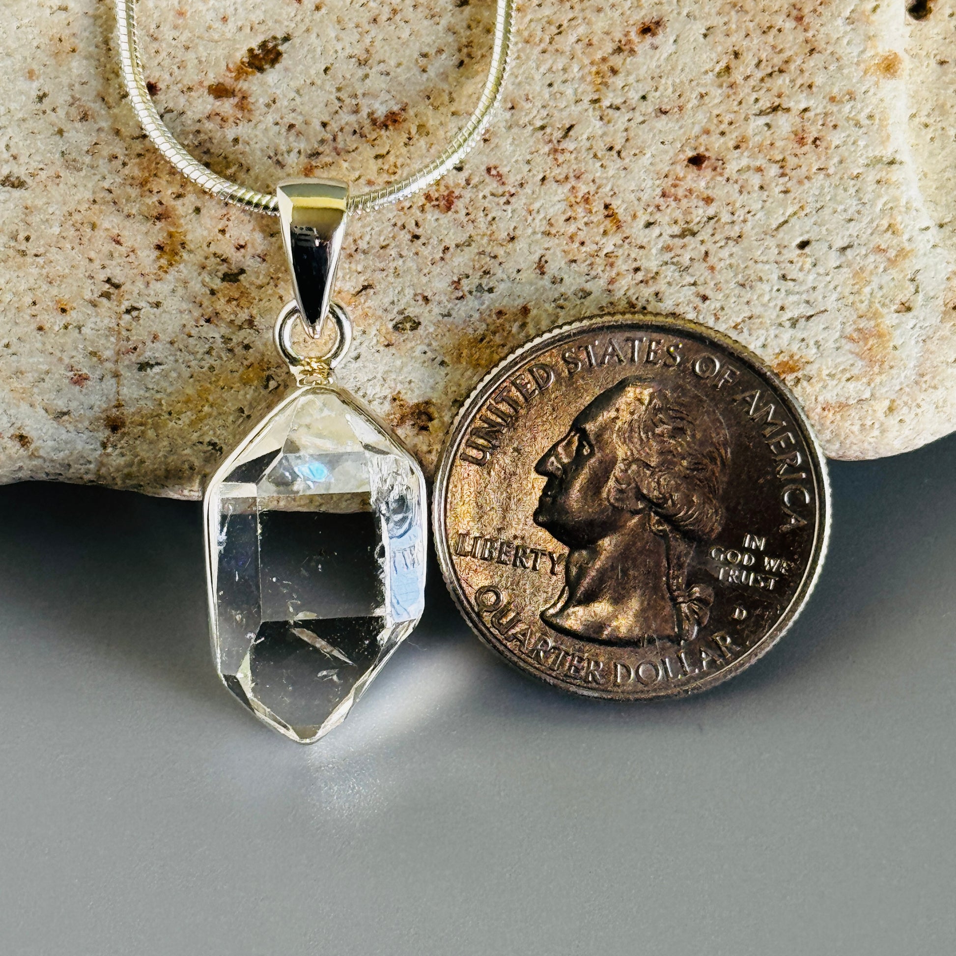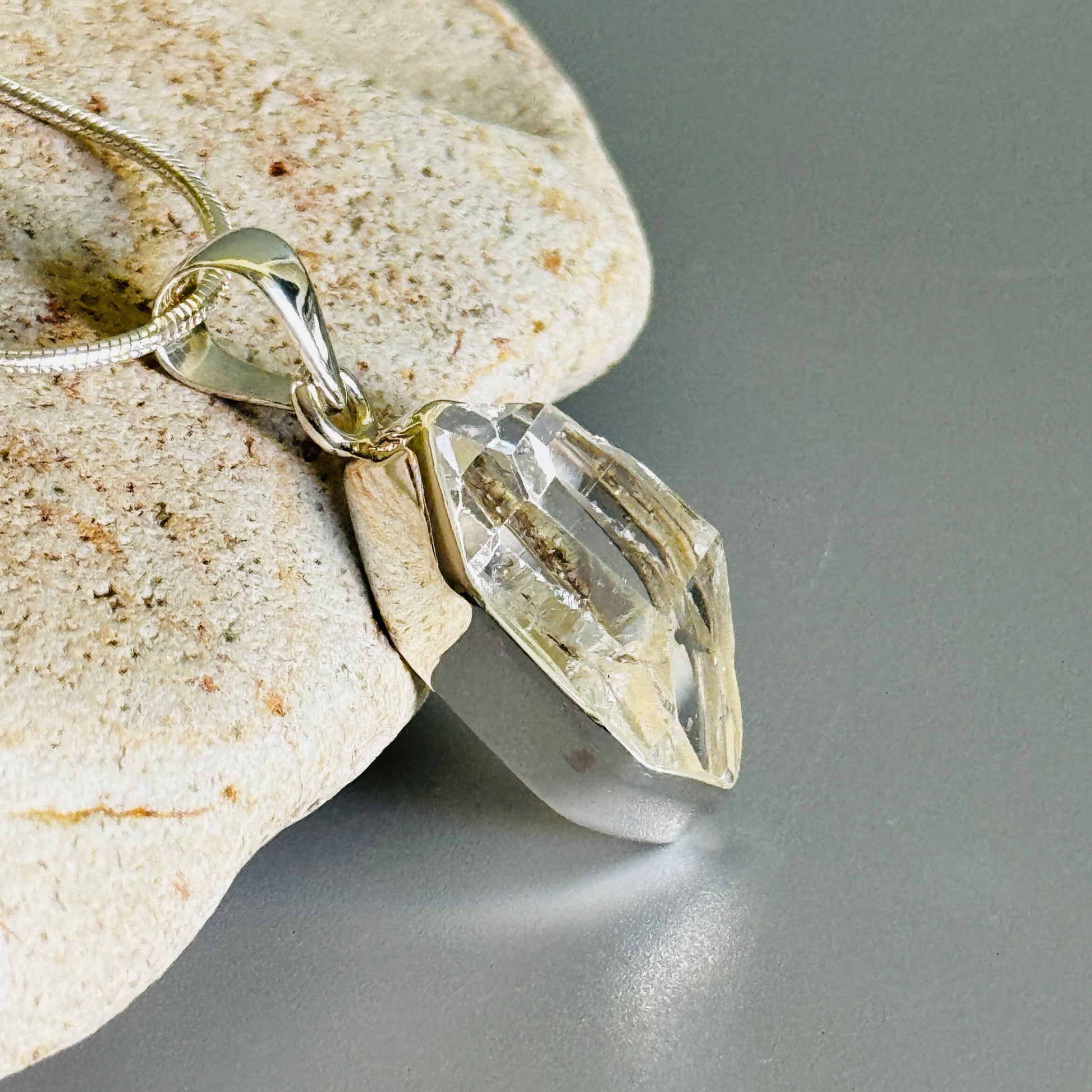 Herkimer Diamond Rough Pendant, Herkimer Necklace, Crystal Pendant, Herkimer Jewelry, Raw Stone, Uncut Unpolished, Natural Silver Pendant