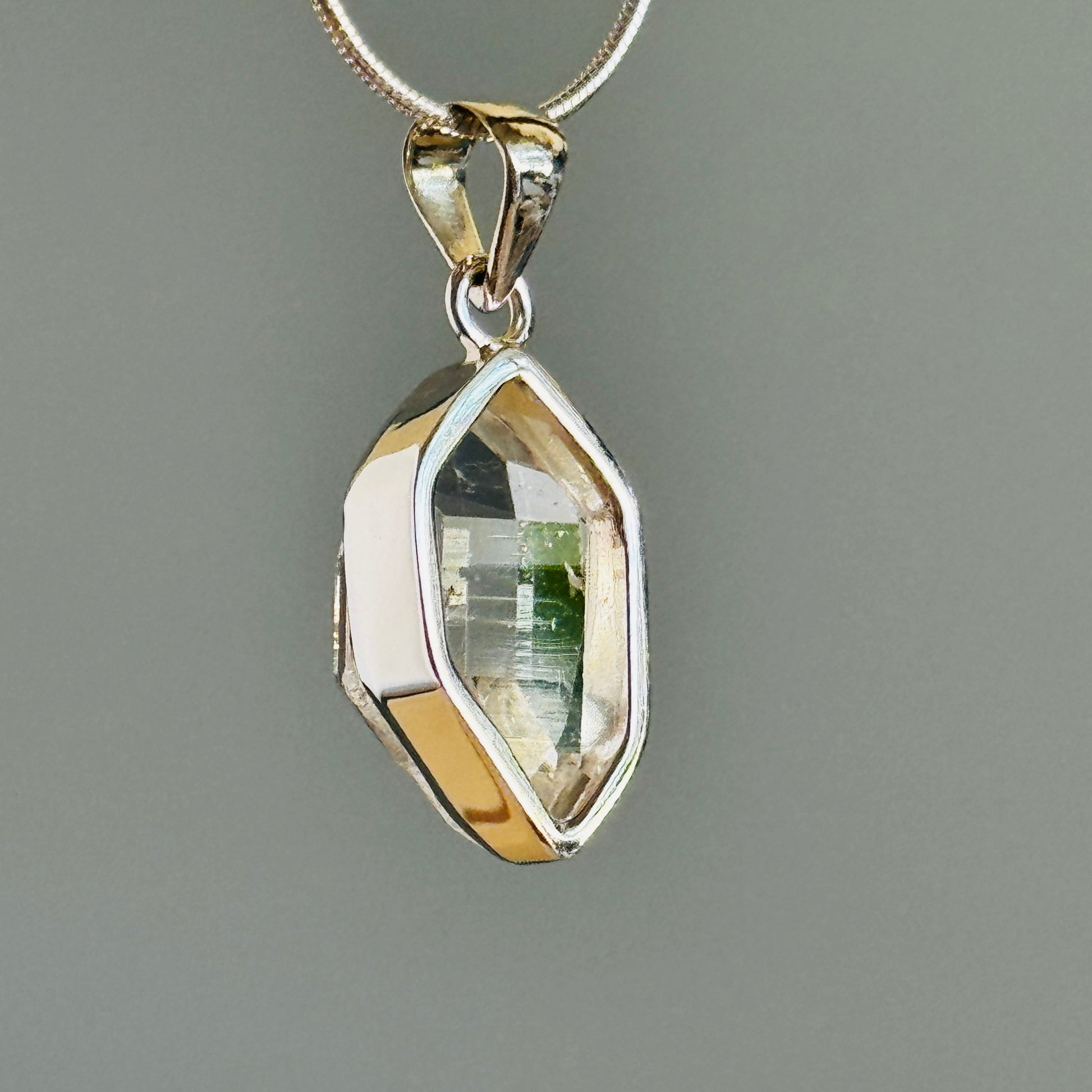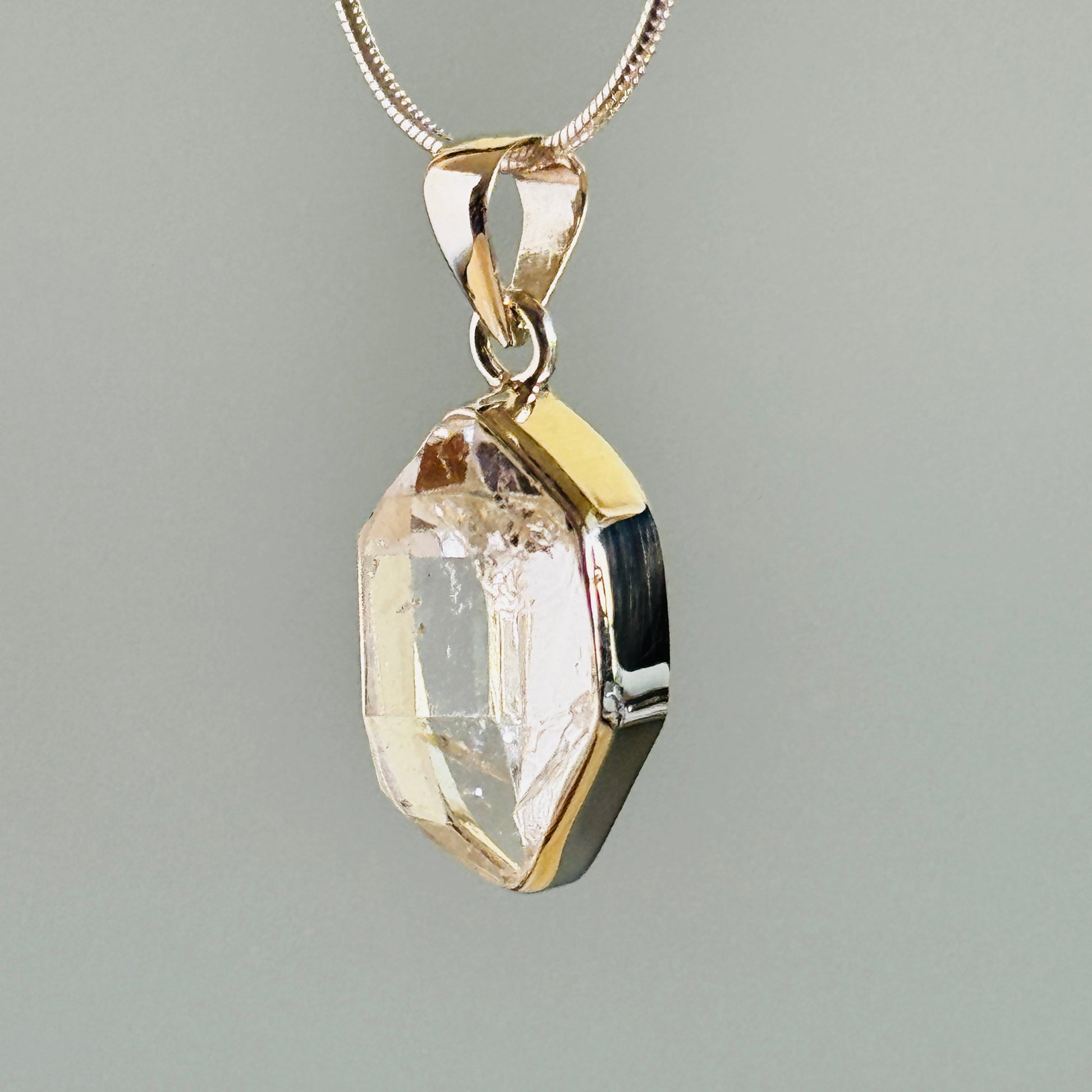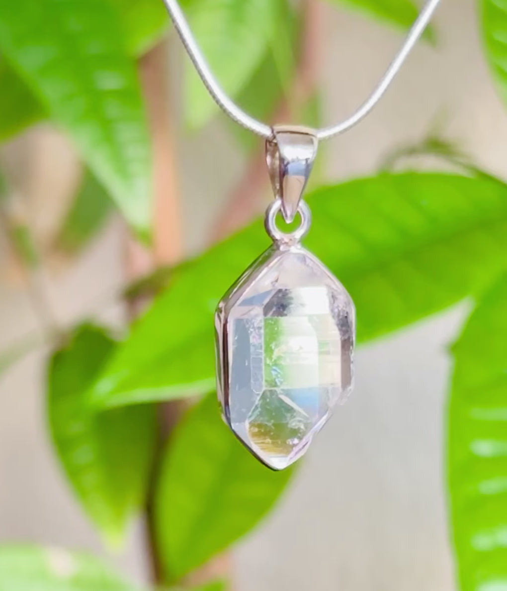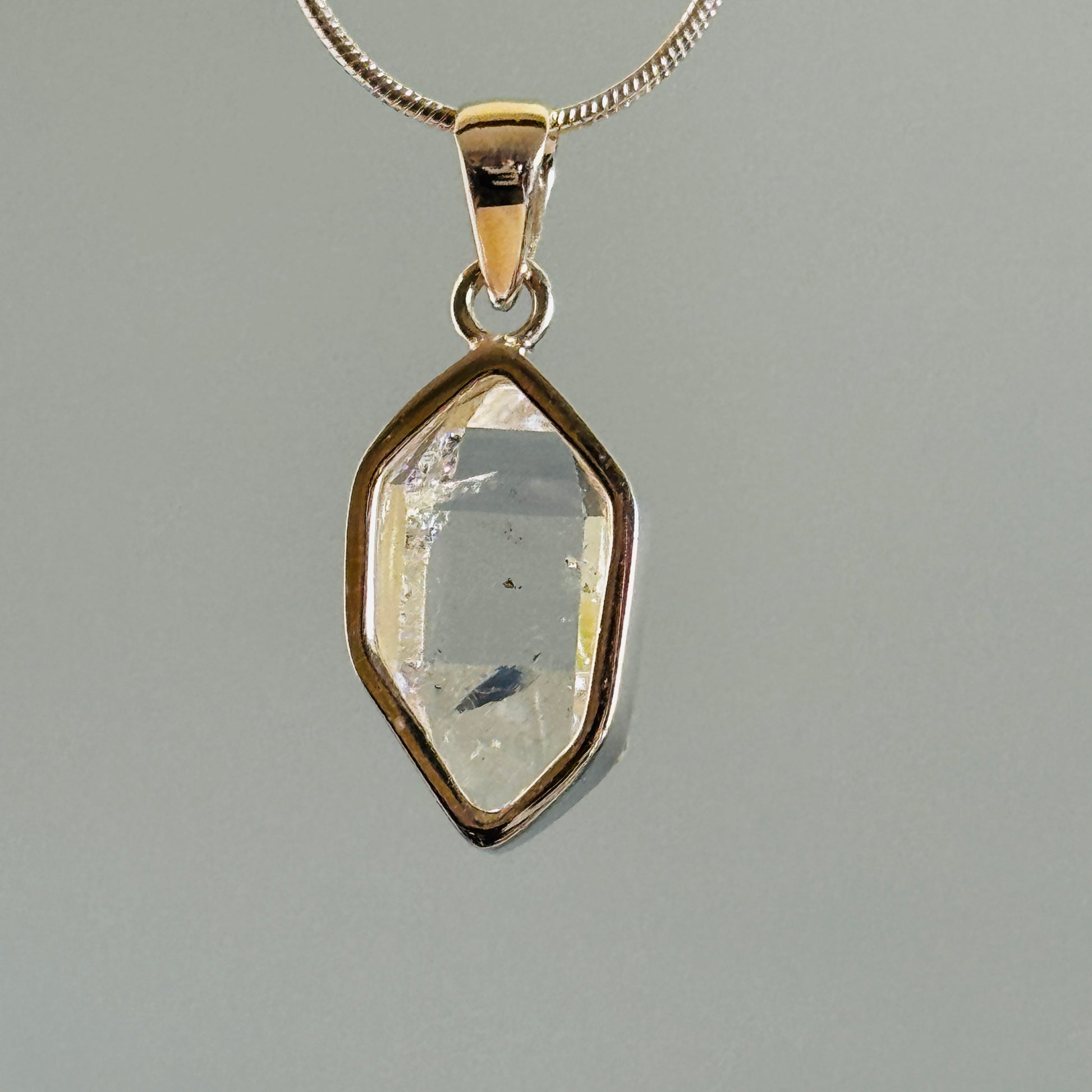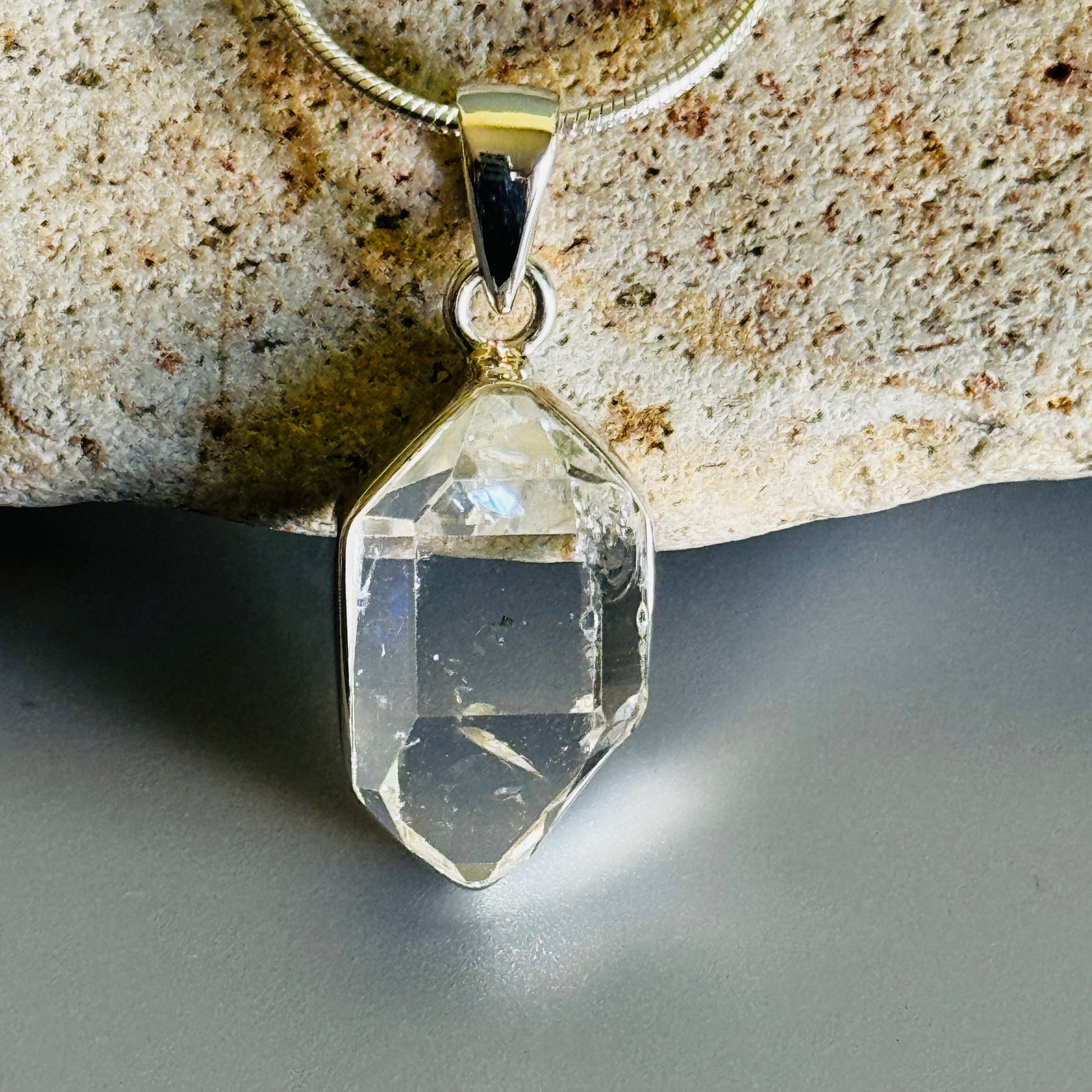 Herkimer Diamond Rough Pendant, Herkimer Necklace, Crystal Pendant, Herkimer Jewelry, Raw Stone, Uncut Unpolished, Natural Silver Pendant