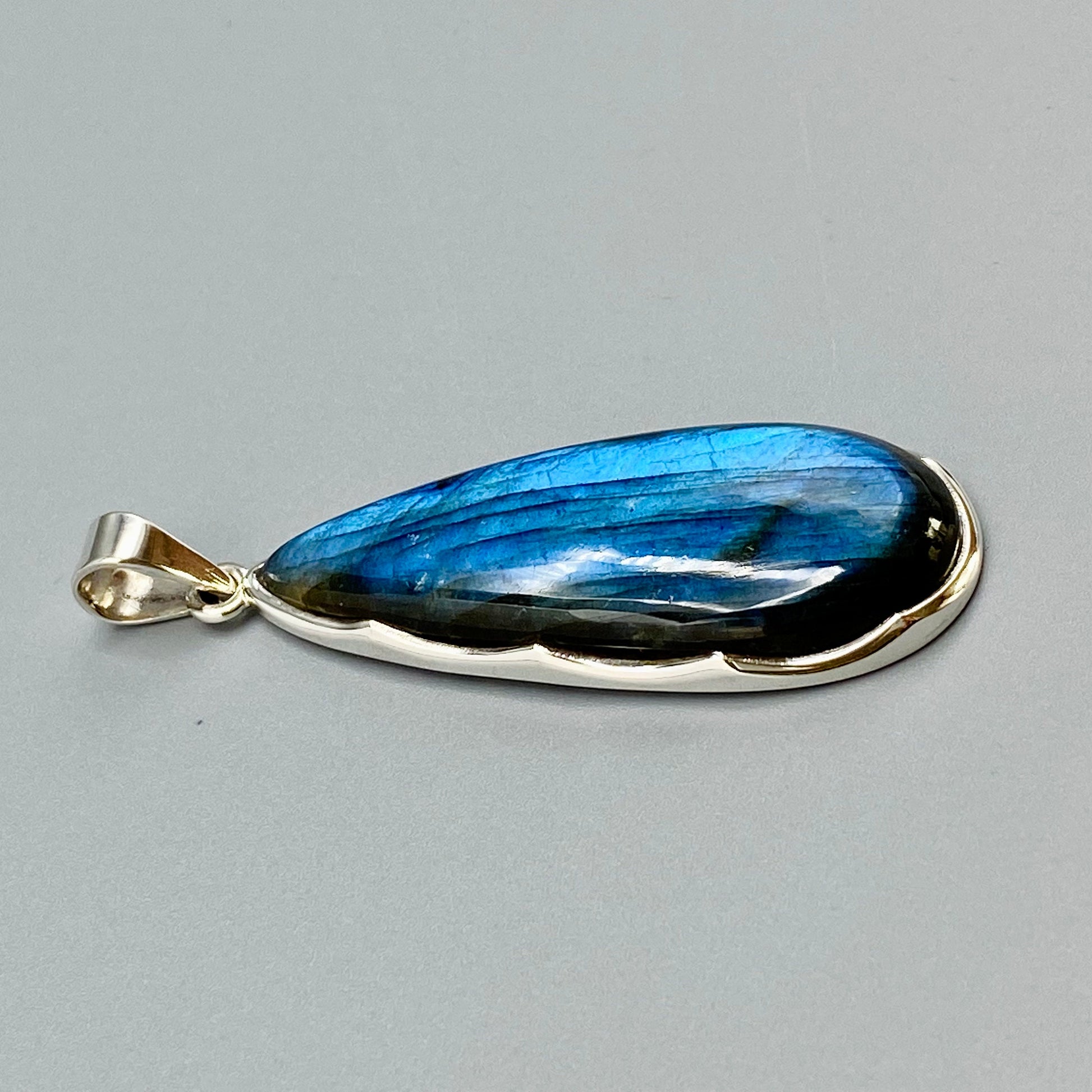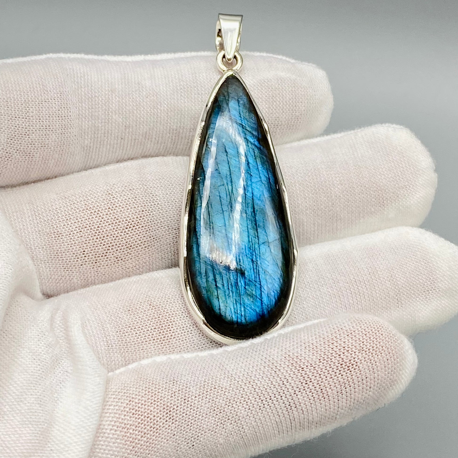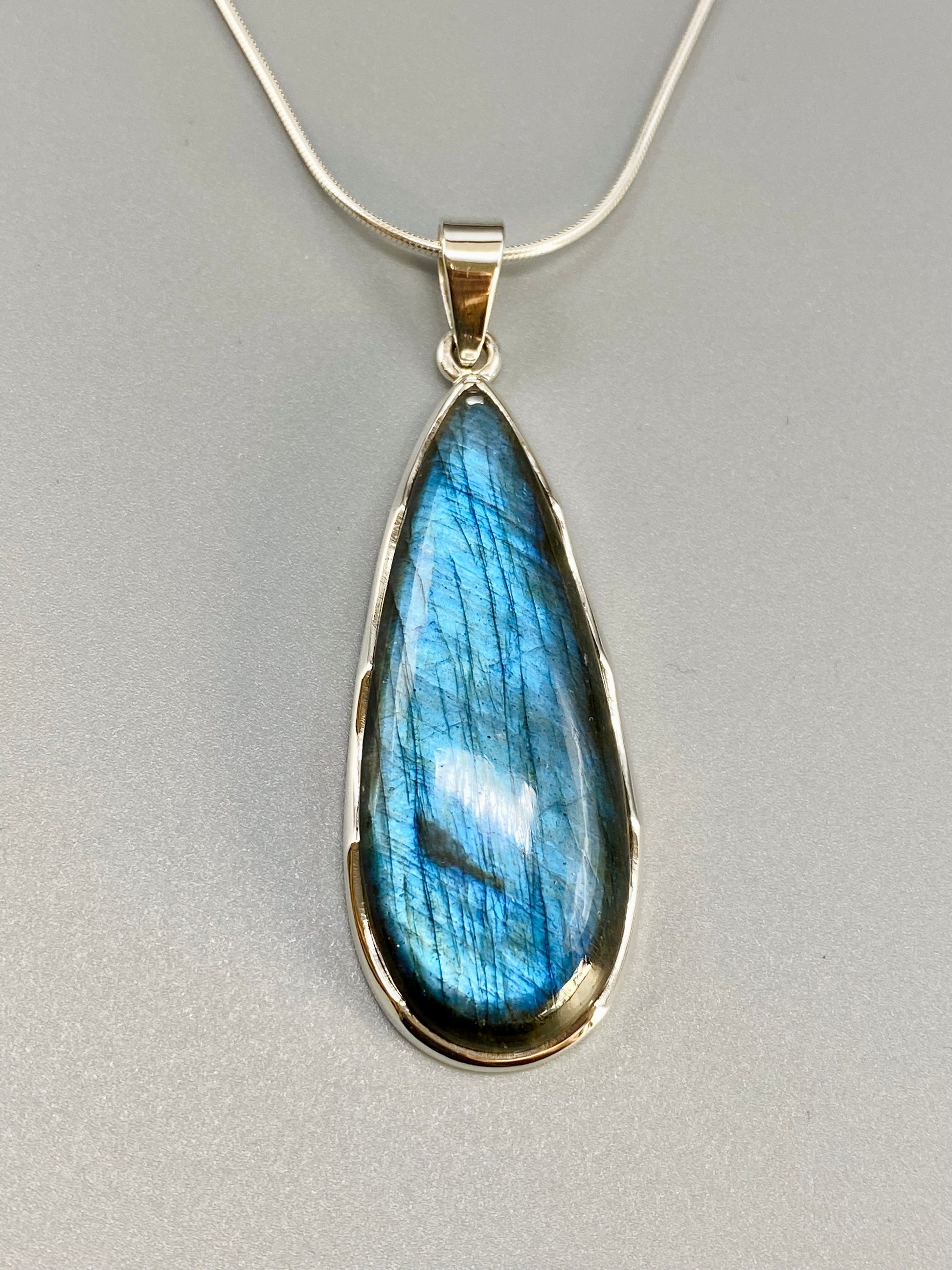Beautiful Labradorite pendant. Handmade high quality 925 silver one of a kind. Natural Labradorite stone. Very stylish and perfect for everyday wear. This beautiful pendant would also make a perfect gift for any healing stones passionate person. Teardrop, Blue, Black.