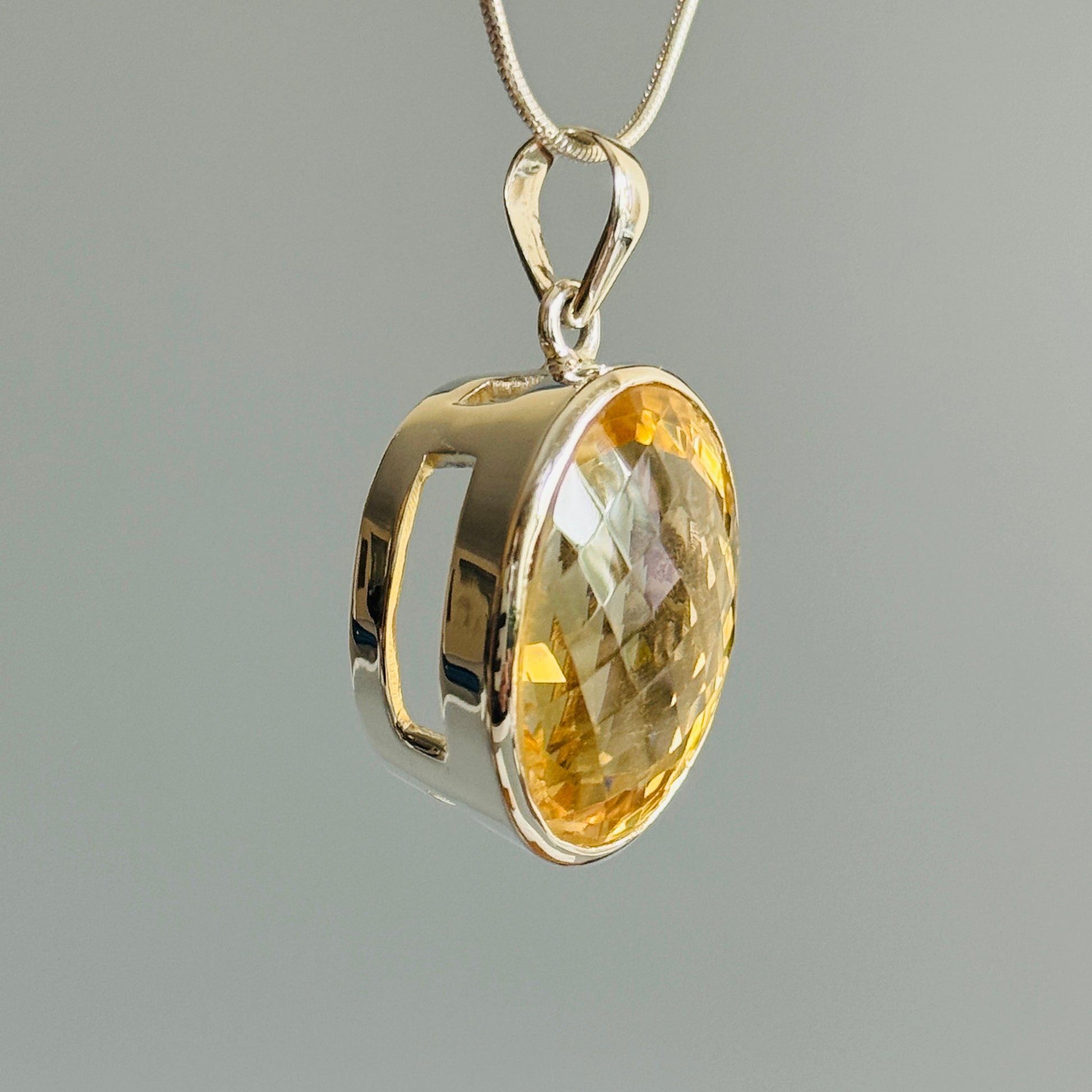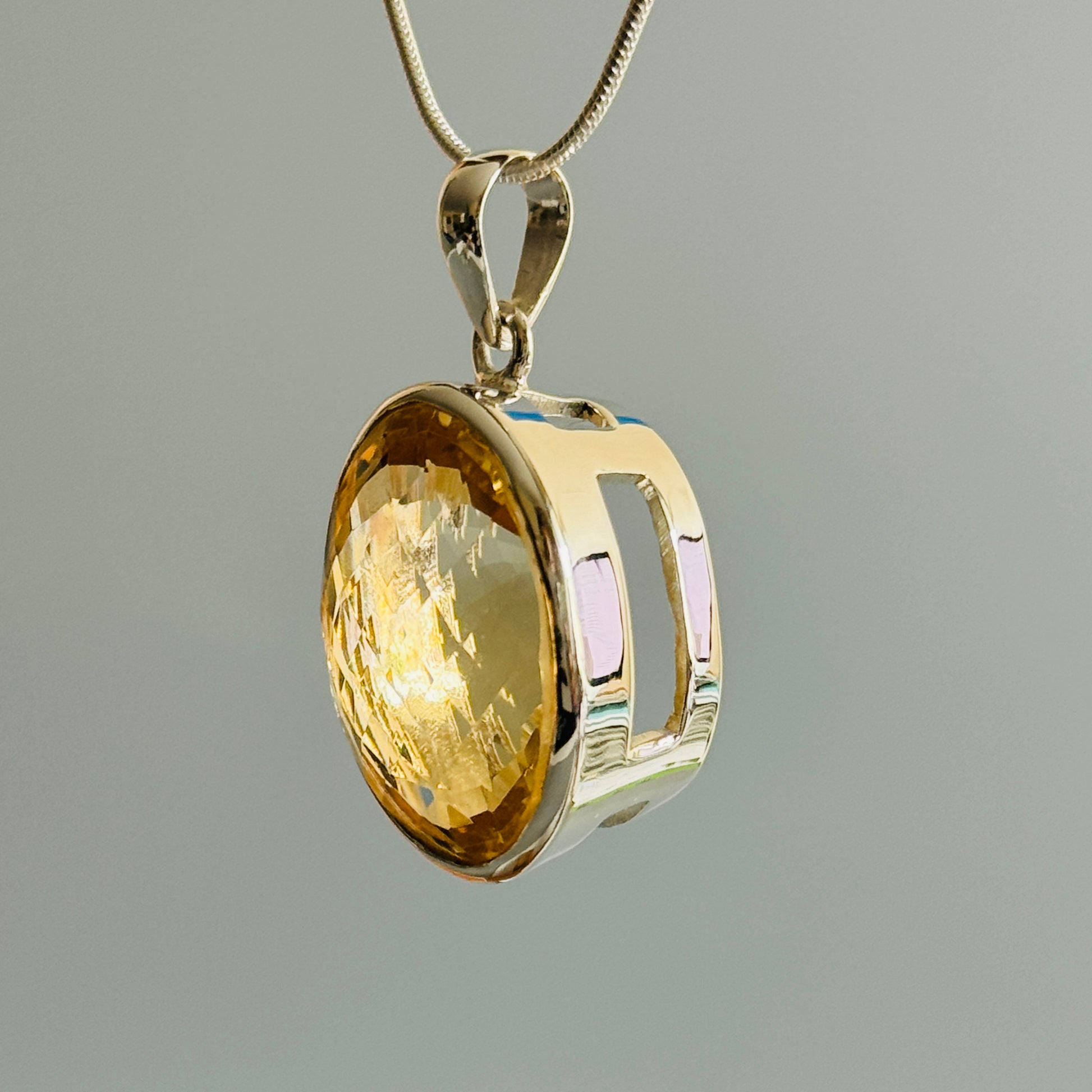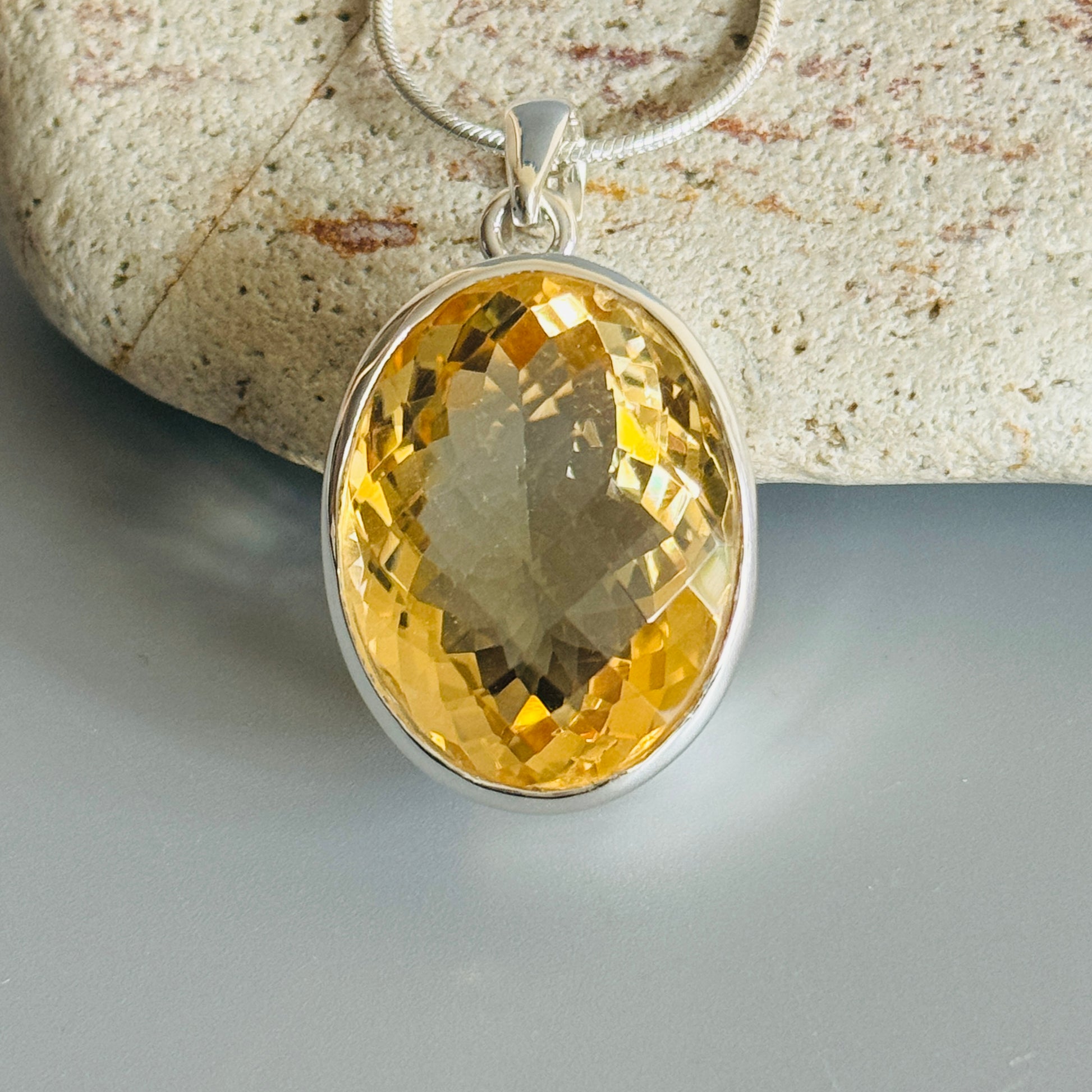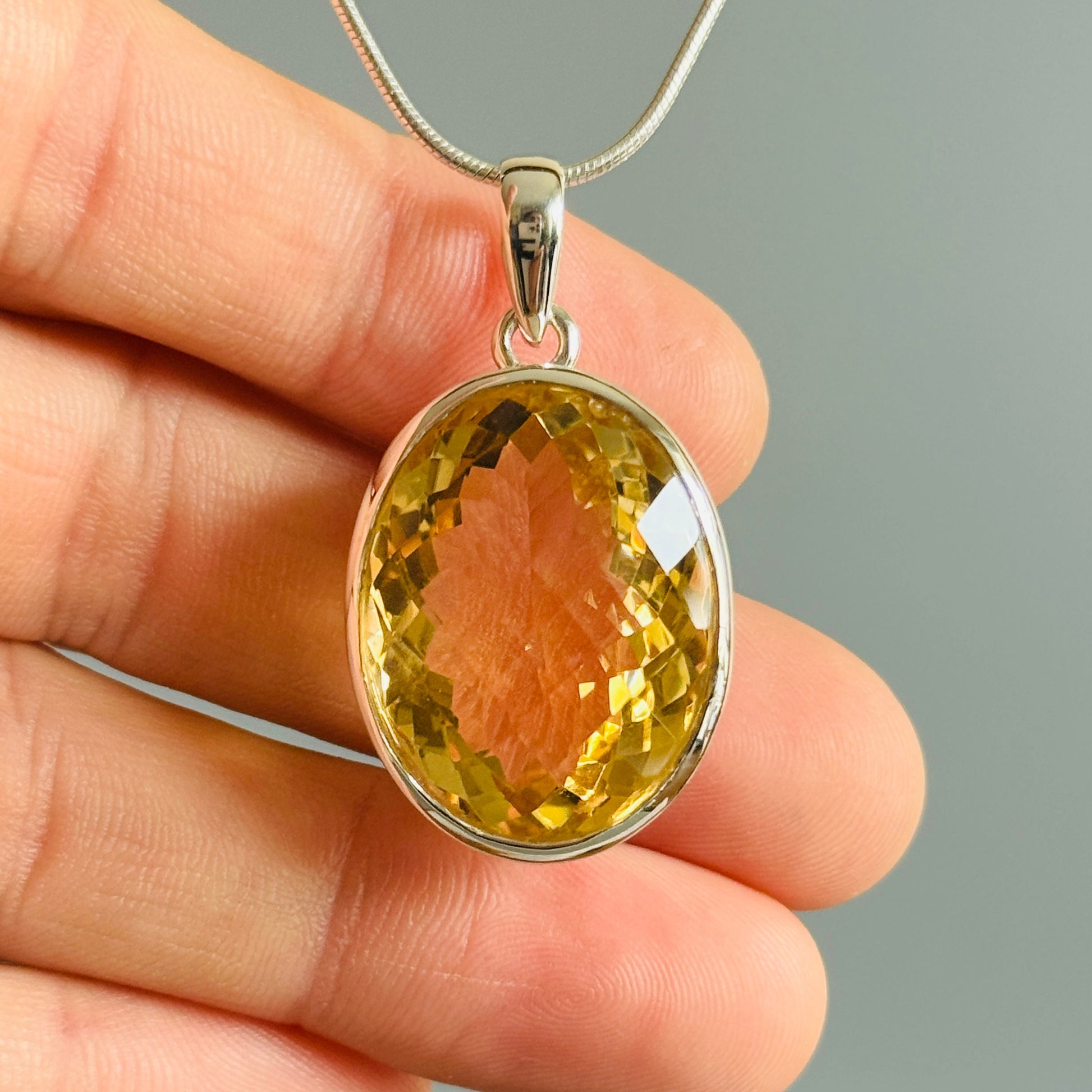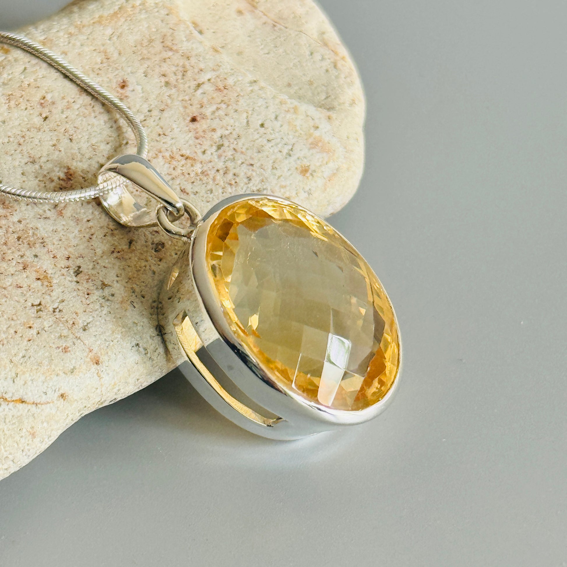 Citrine Pendant, Large Faceted Citrine Quartz Pendant, 925 sterling silver pendant, handmade Pendant, Citrine Quartz gemstone Pendant Oval Unique Stunning Beautiful One of a kind