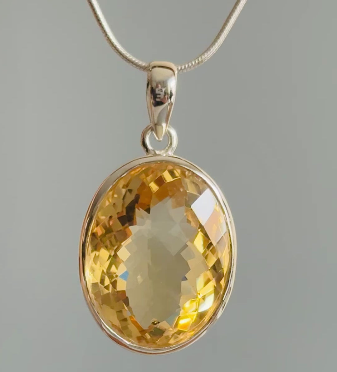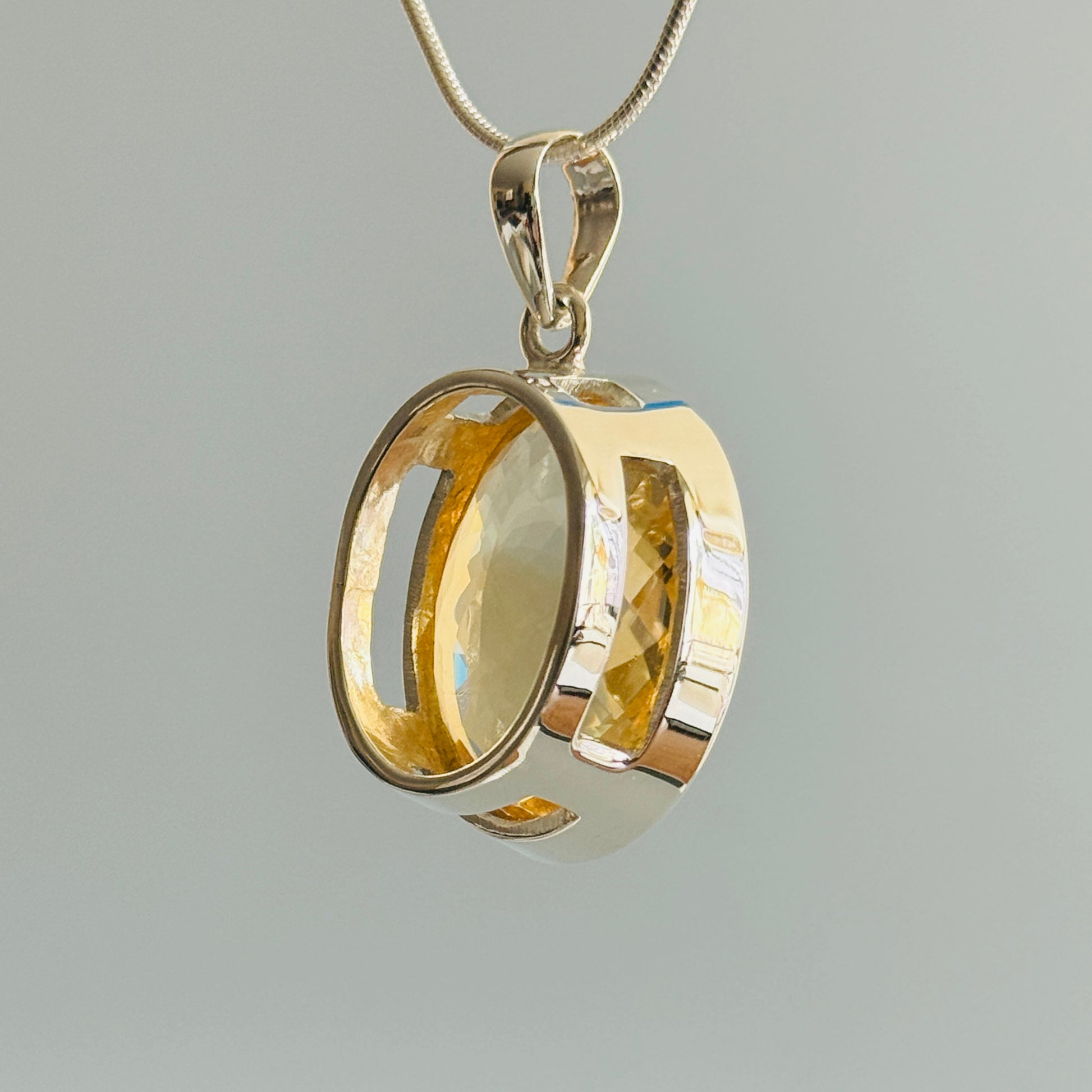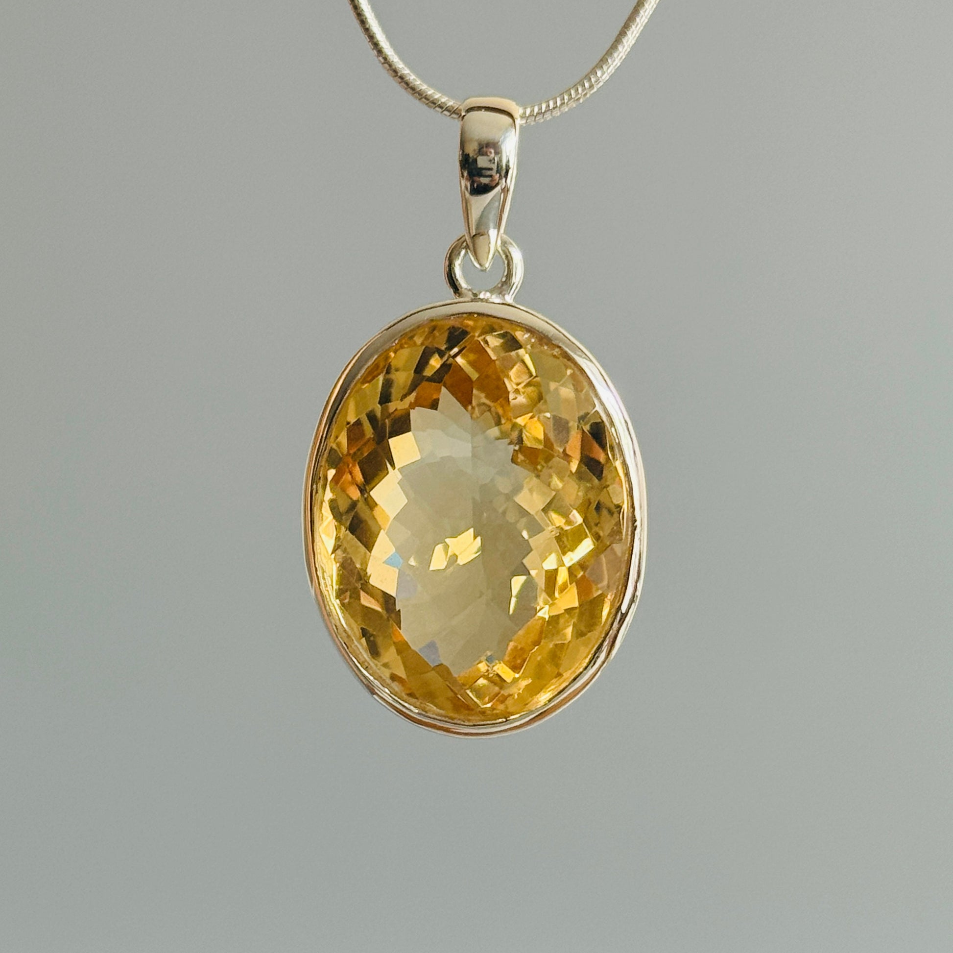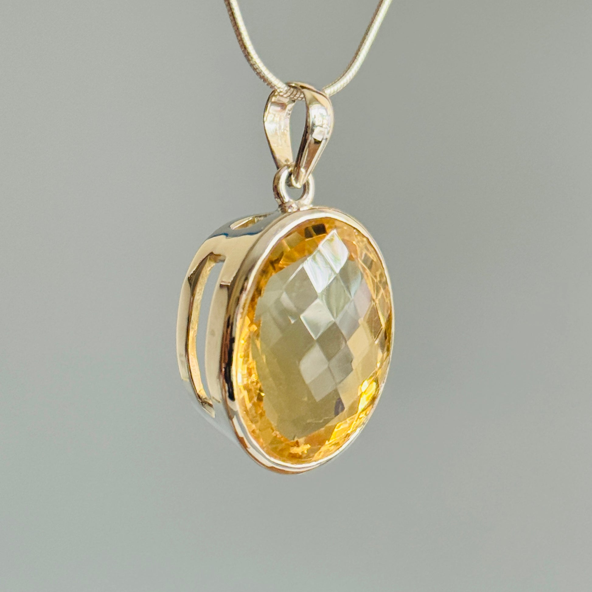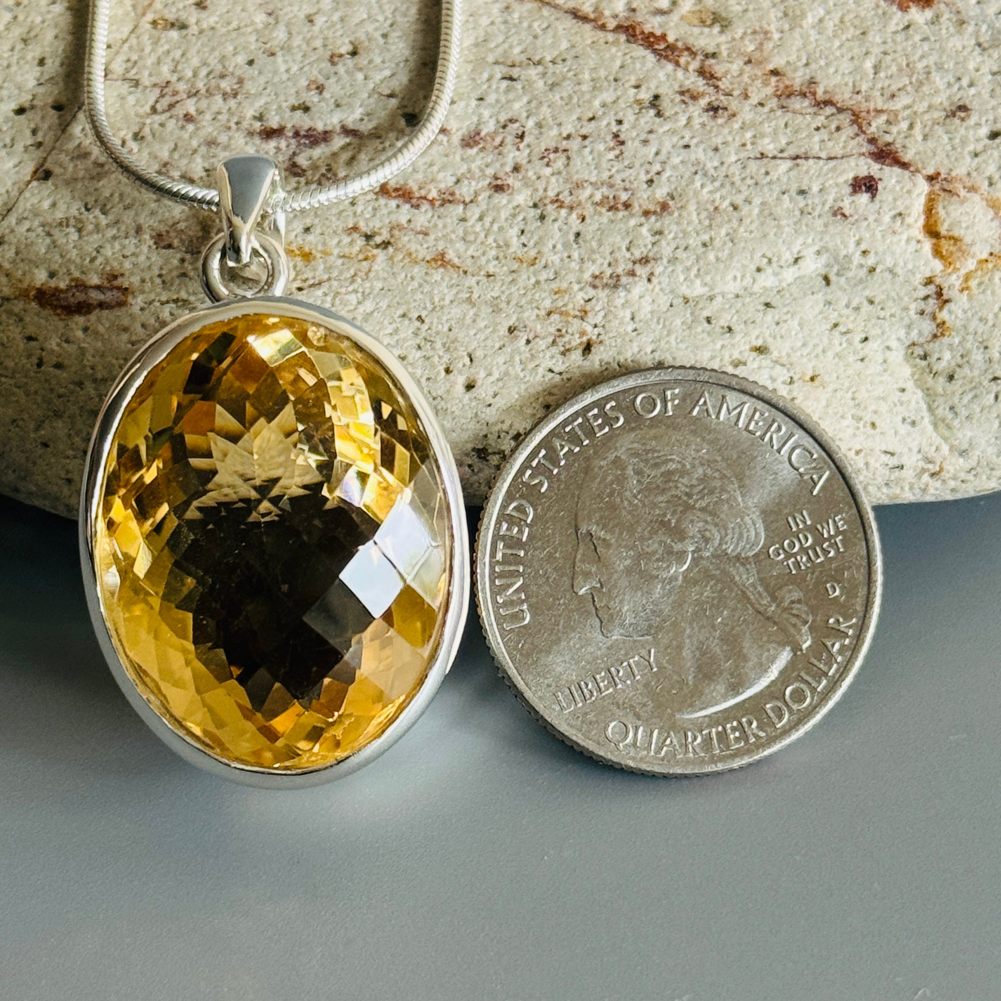 Citrine Pendant, Large Faceted Citrine Quartz Pendant, 925 sterling silver pendant, handmade Pendant, Citrine Quartz gemstone Pendant Oval Unique Stunning Beautiful One of a kind