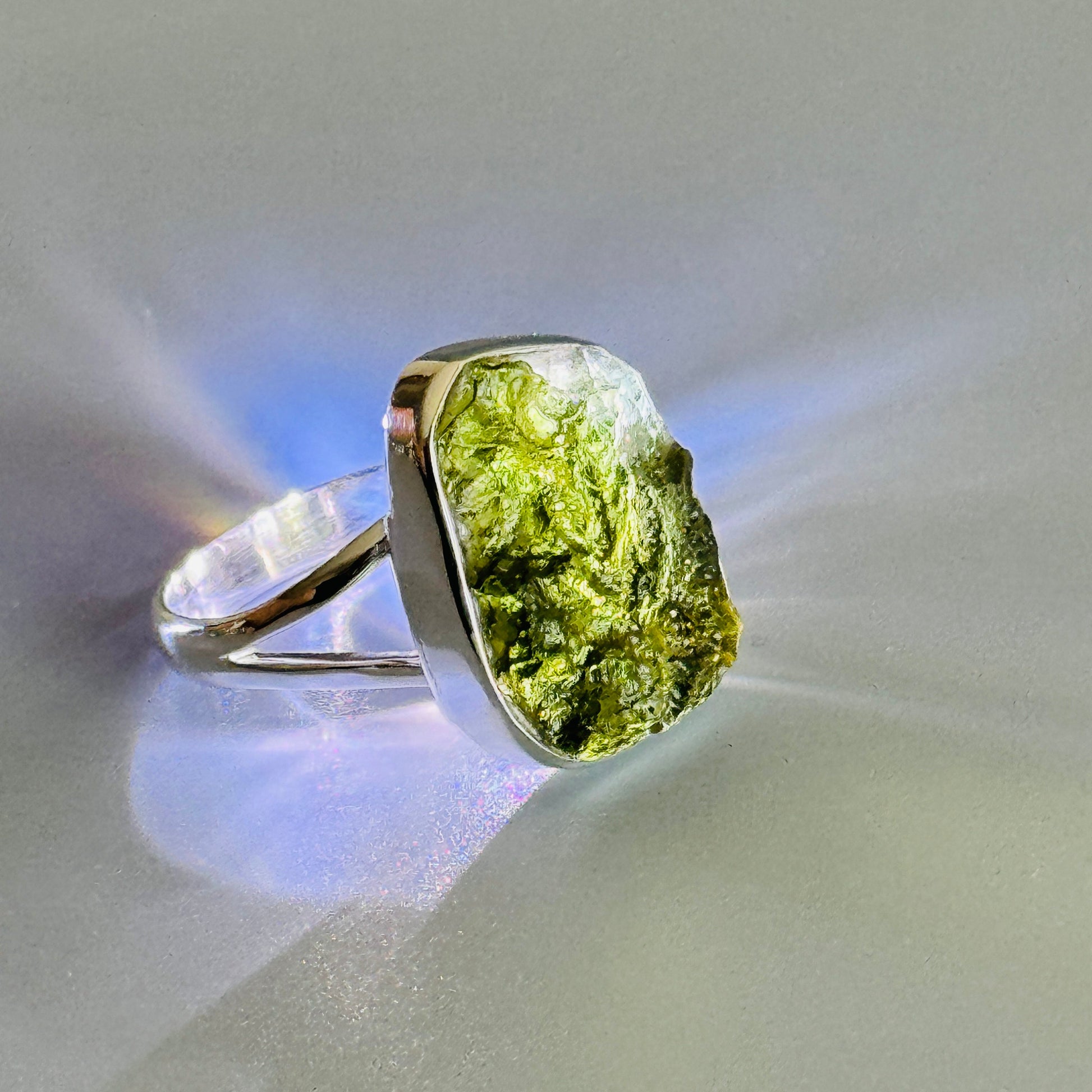 Moldavite Ring, Raw Stone Moldavite, Moldavite Gemstone Ring, 925 Solid Sterling Silver Ring, Genuine Czech Republic Green Meteorite Ring Size 10