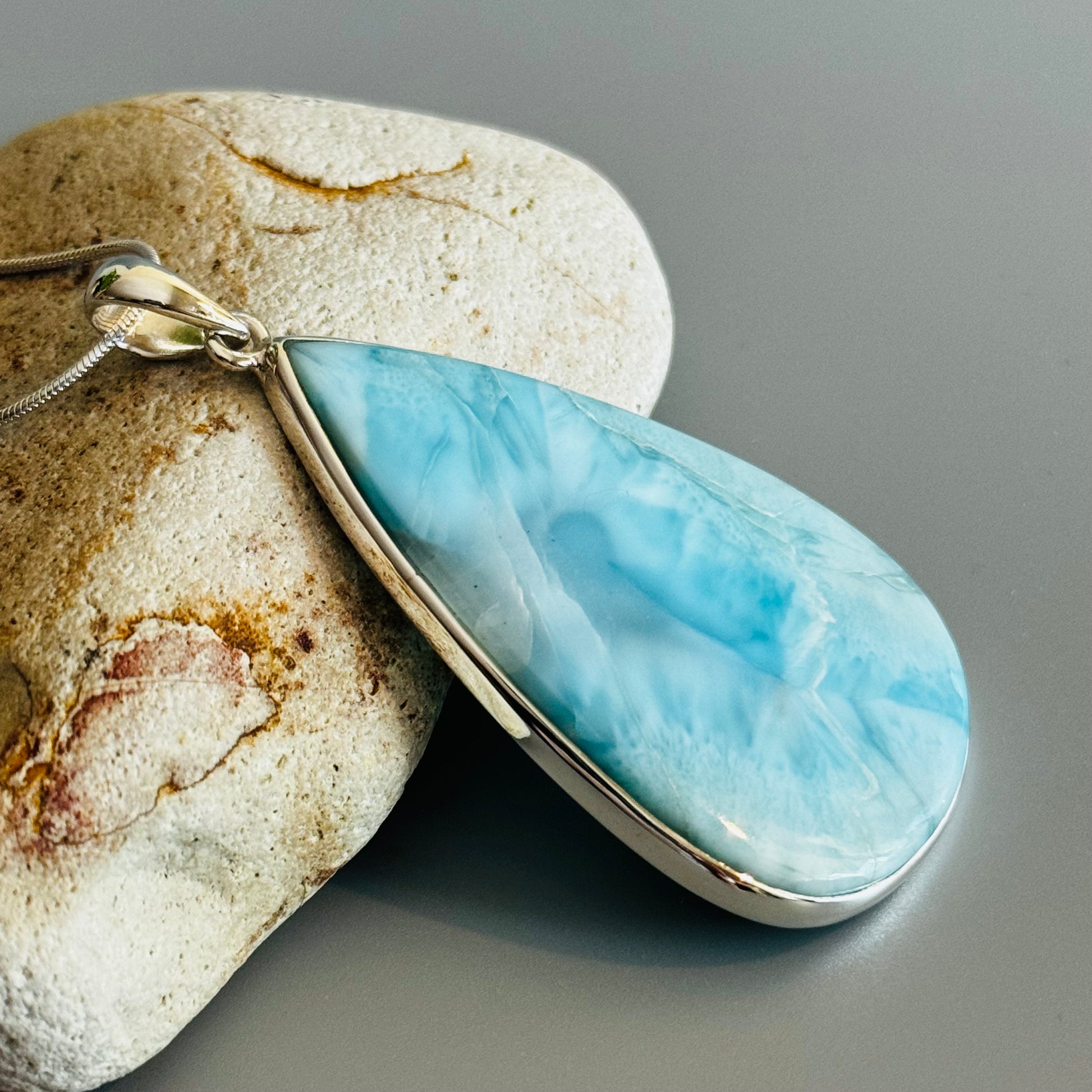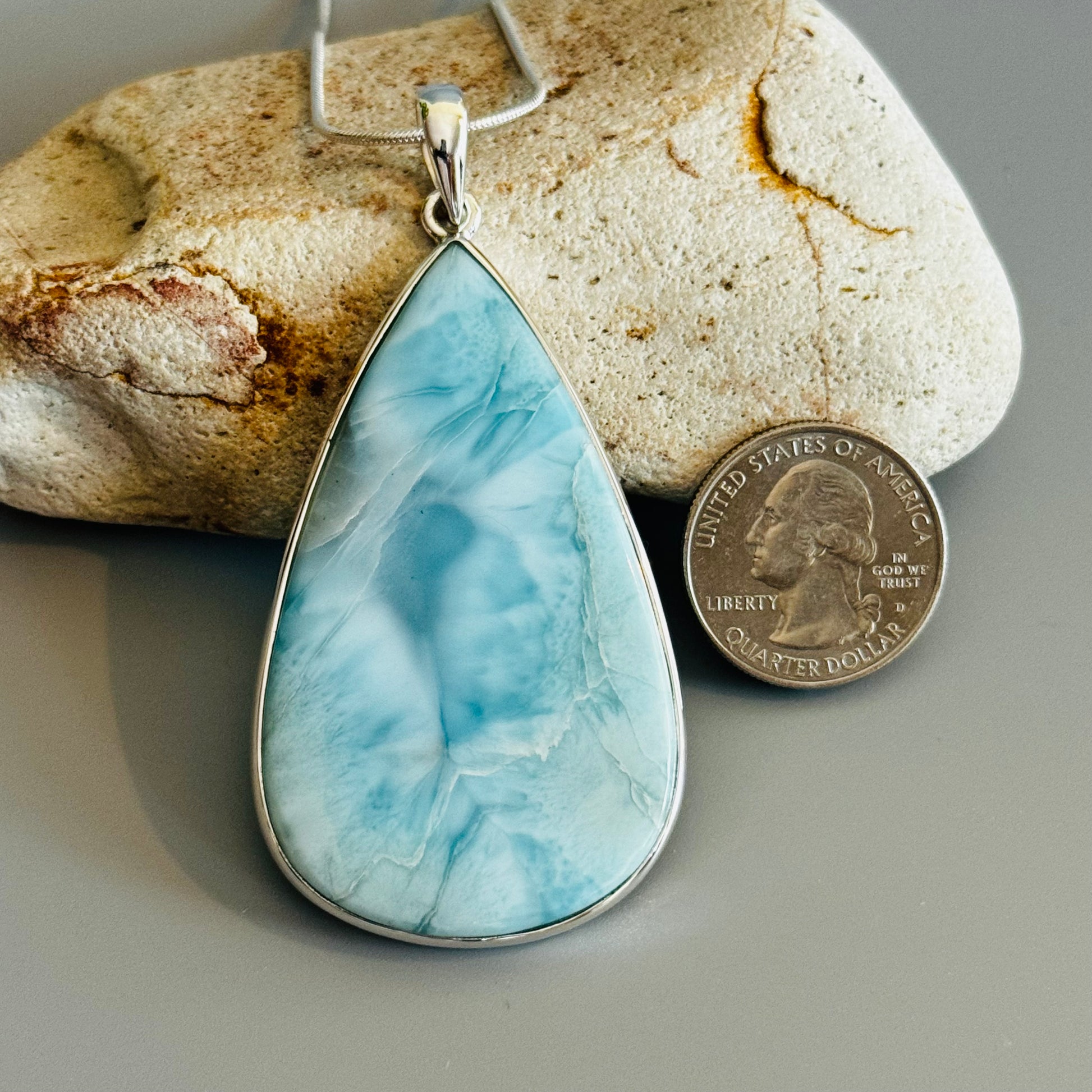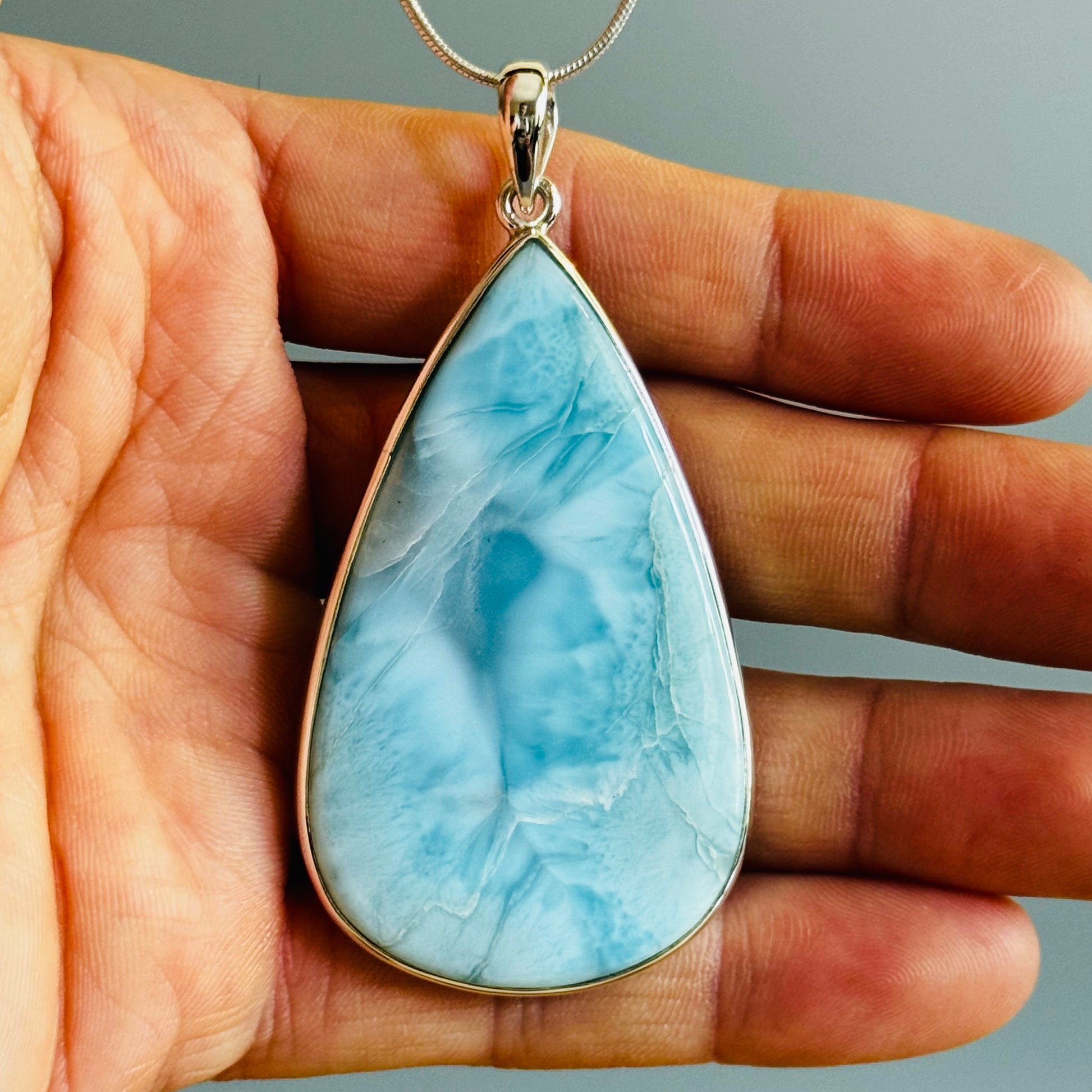 Natural Larimar Pendant, Larimar Sterling Silver 925 Pendant, Handmade Pendant For Necklace, Handmade Larimar Pendant, Larimar Gemstone, XL