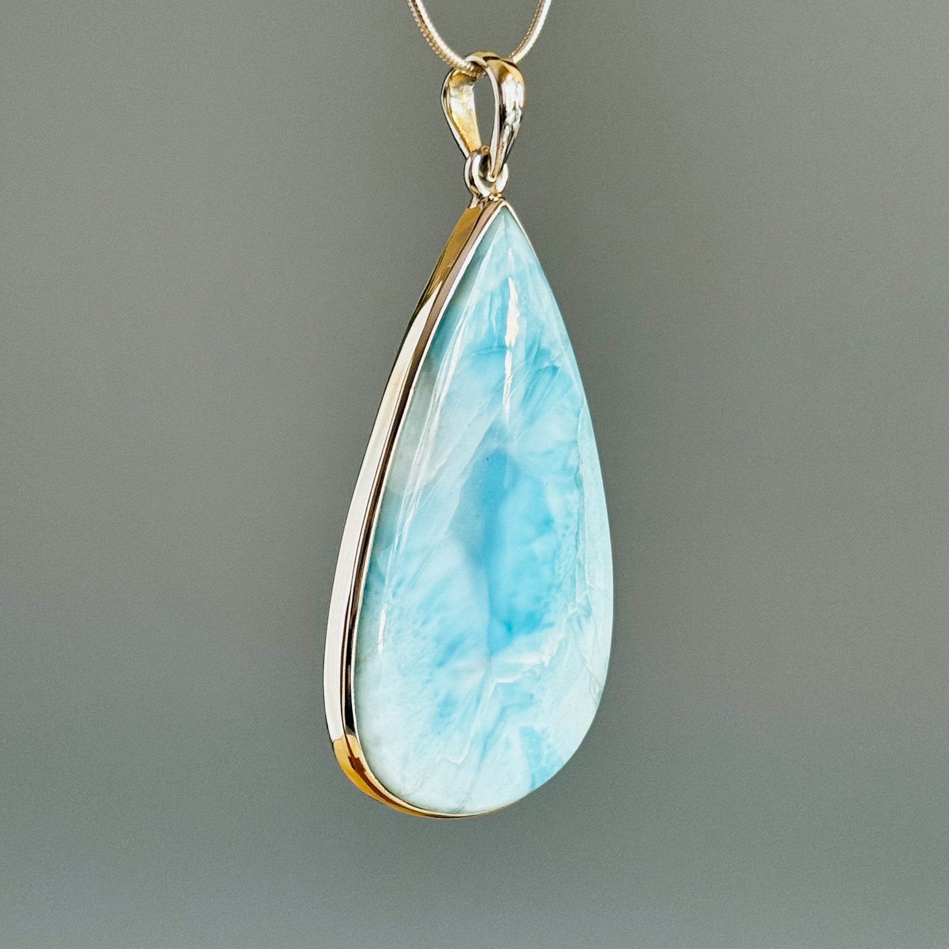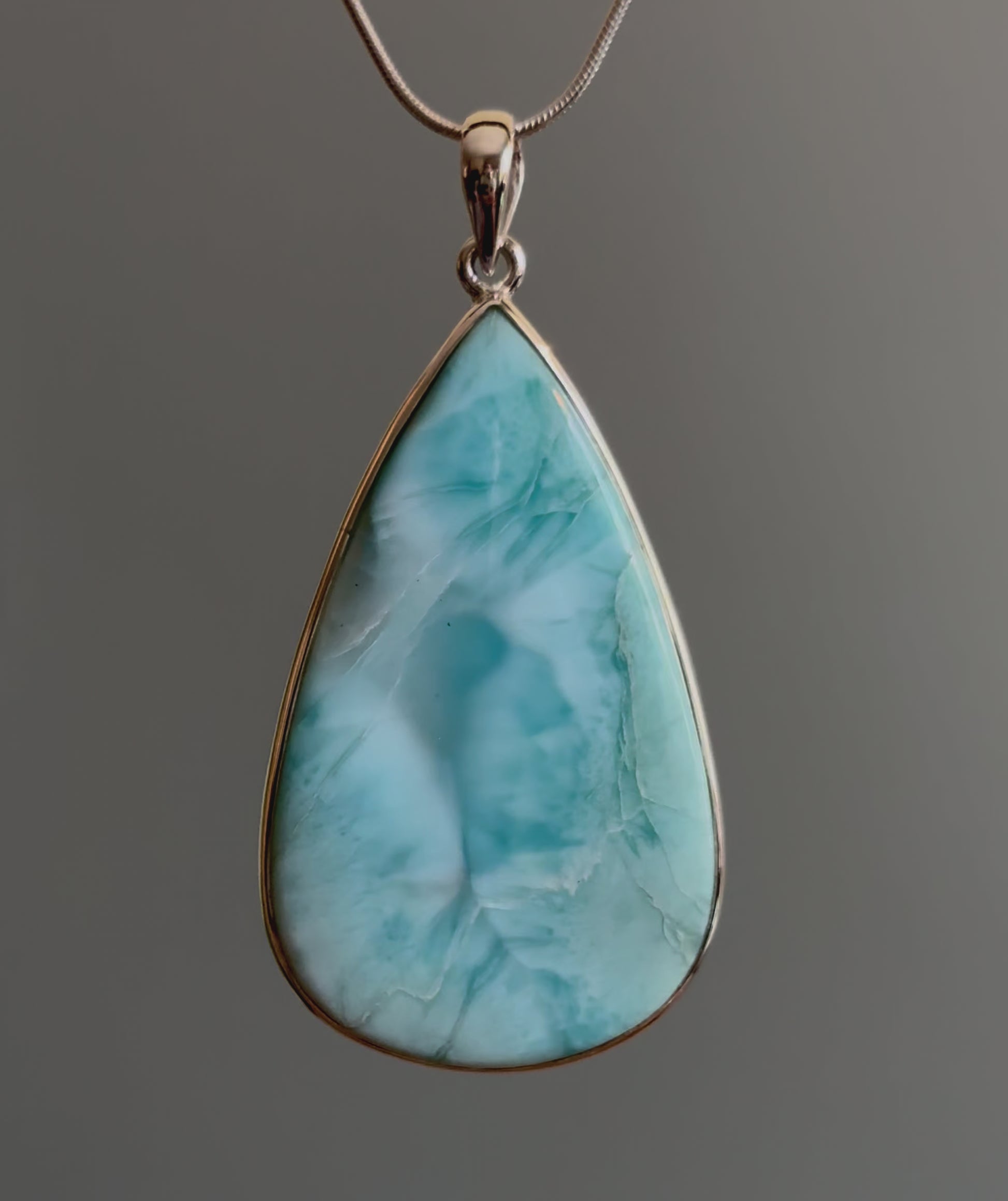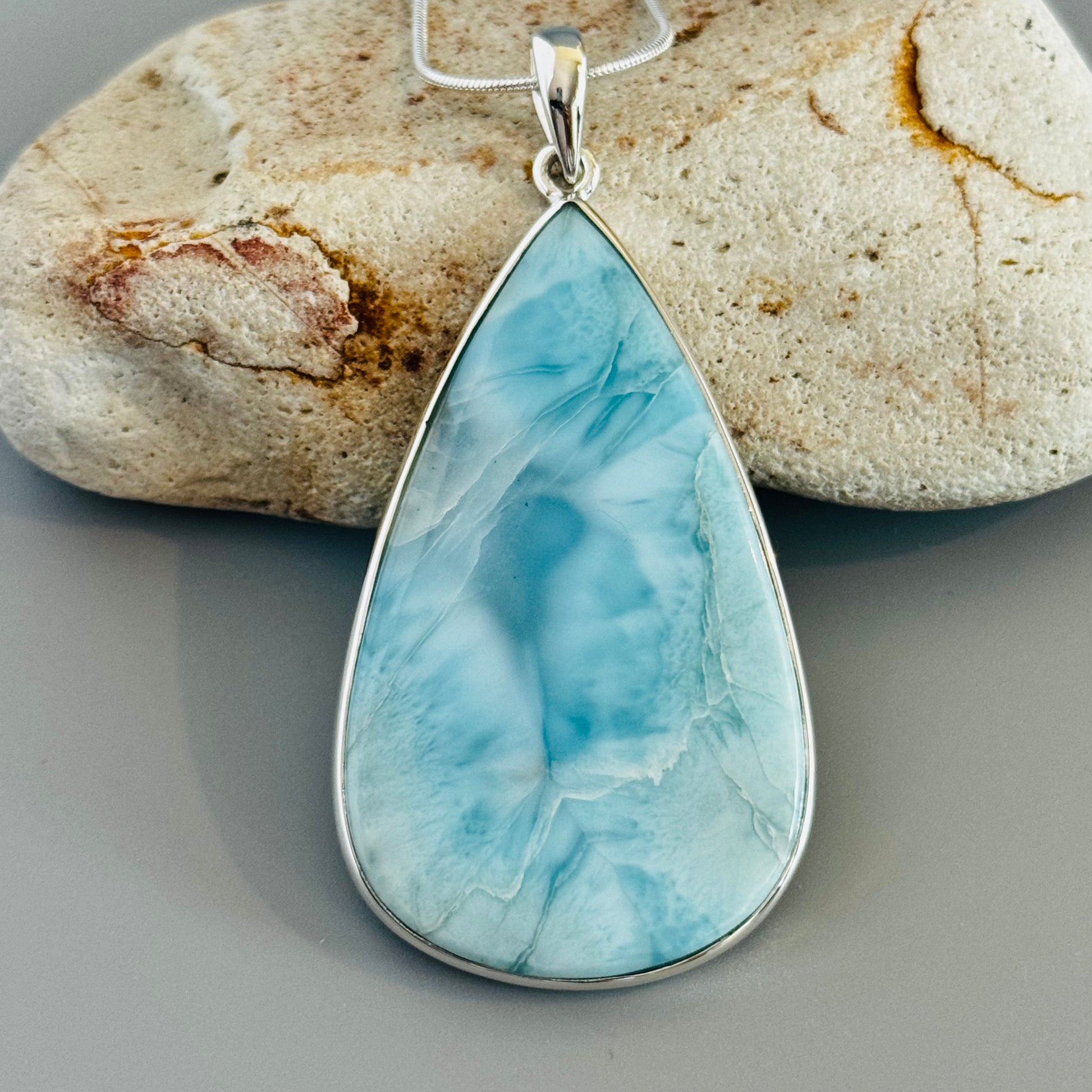 Natural Larimar Pendant, Larimar Sterling Silver 925 Pendant, Handmade Pendant For Necklace, Handmade Larimar Pendant, Larimar Gemstone, XL