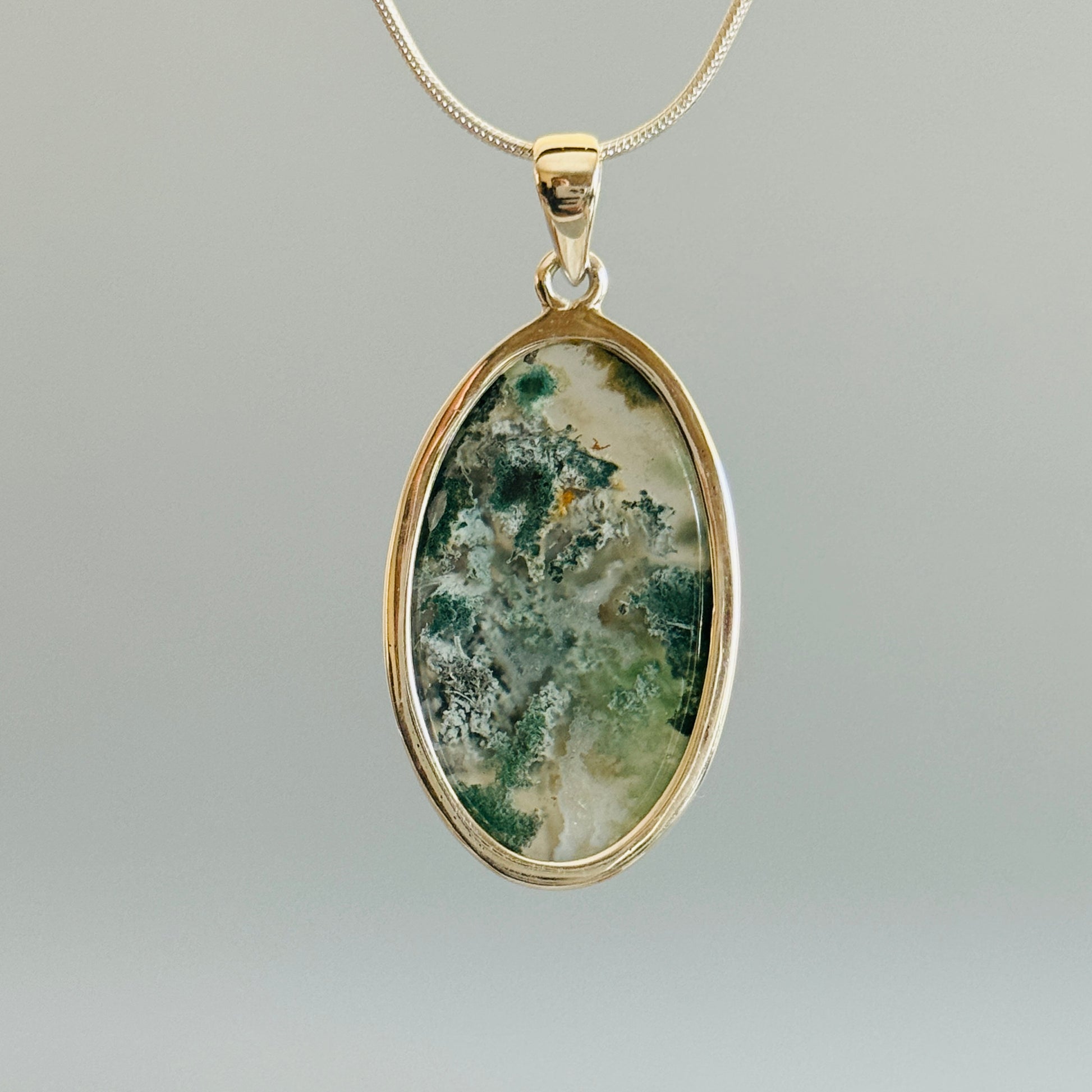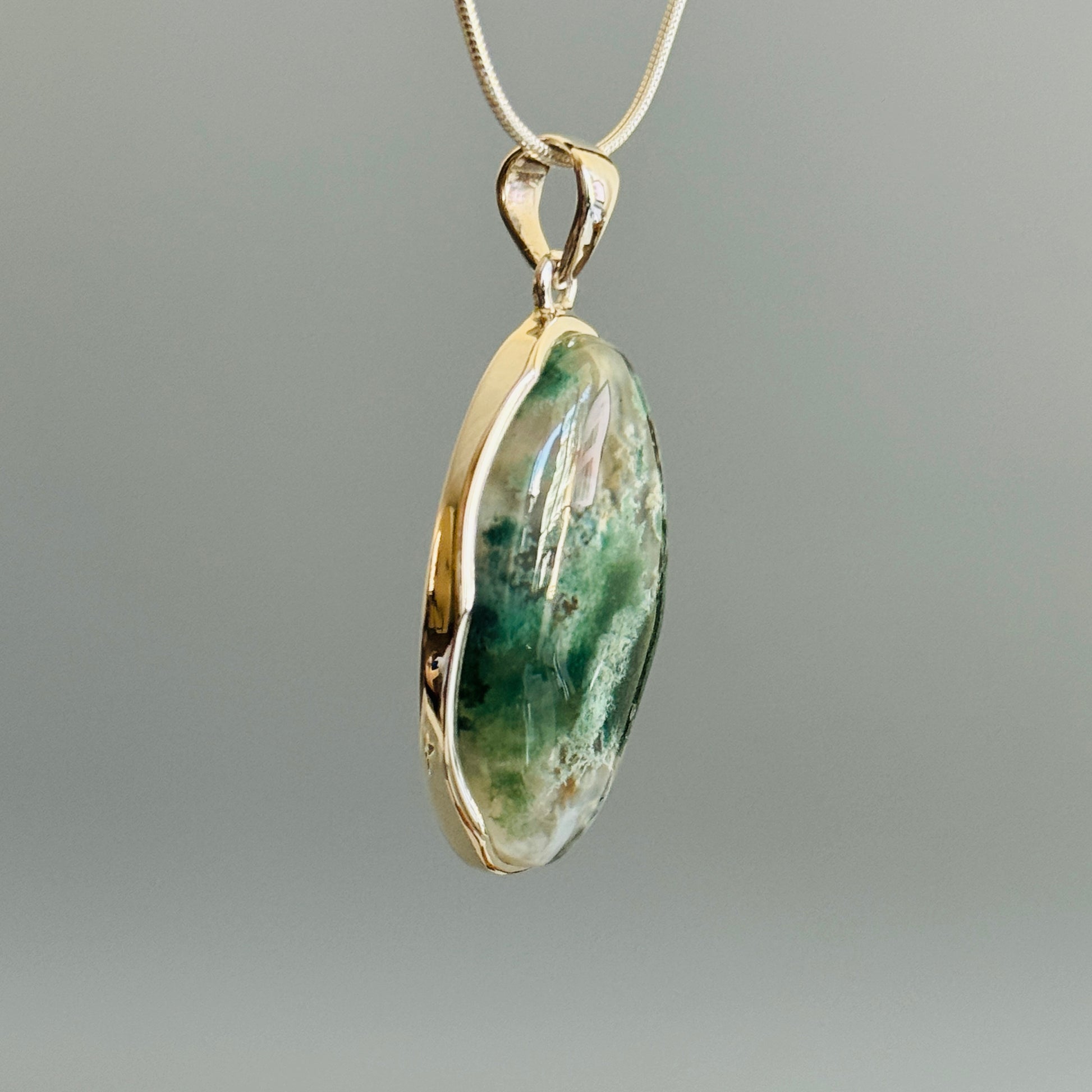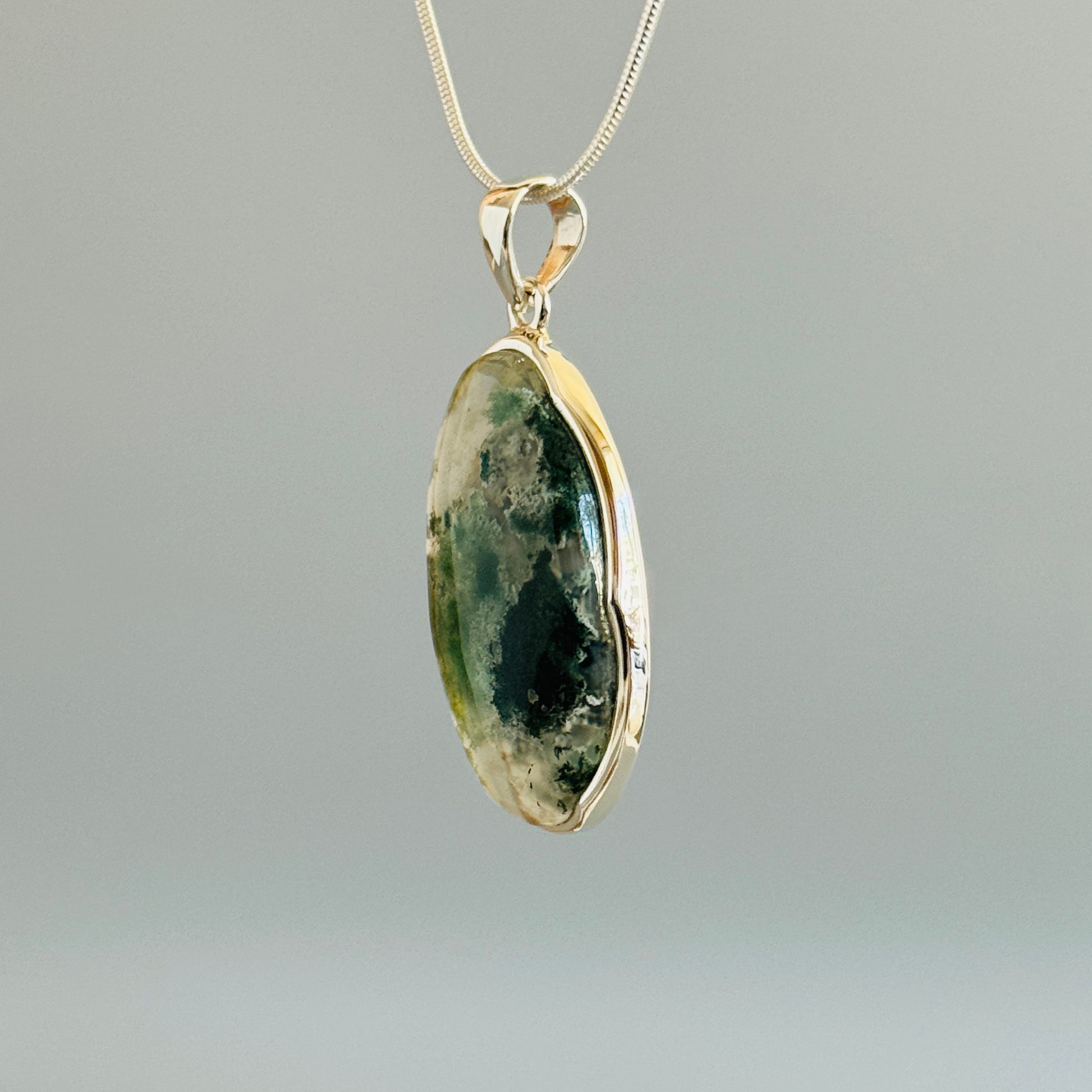 Natural Moss Agate Pendant, 925 Sterling Silver Pendant, Green Pendant, Nature Inspired Pendant, Green Moss Agate, Handmade Jewelry, Unique and Beautiful. Oval.