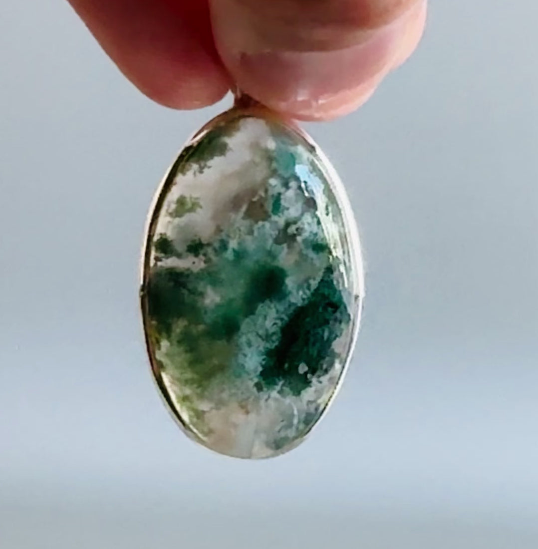 Natural Moss Agate Pendant Handmade