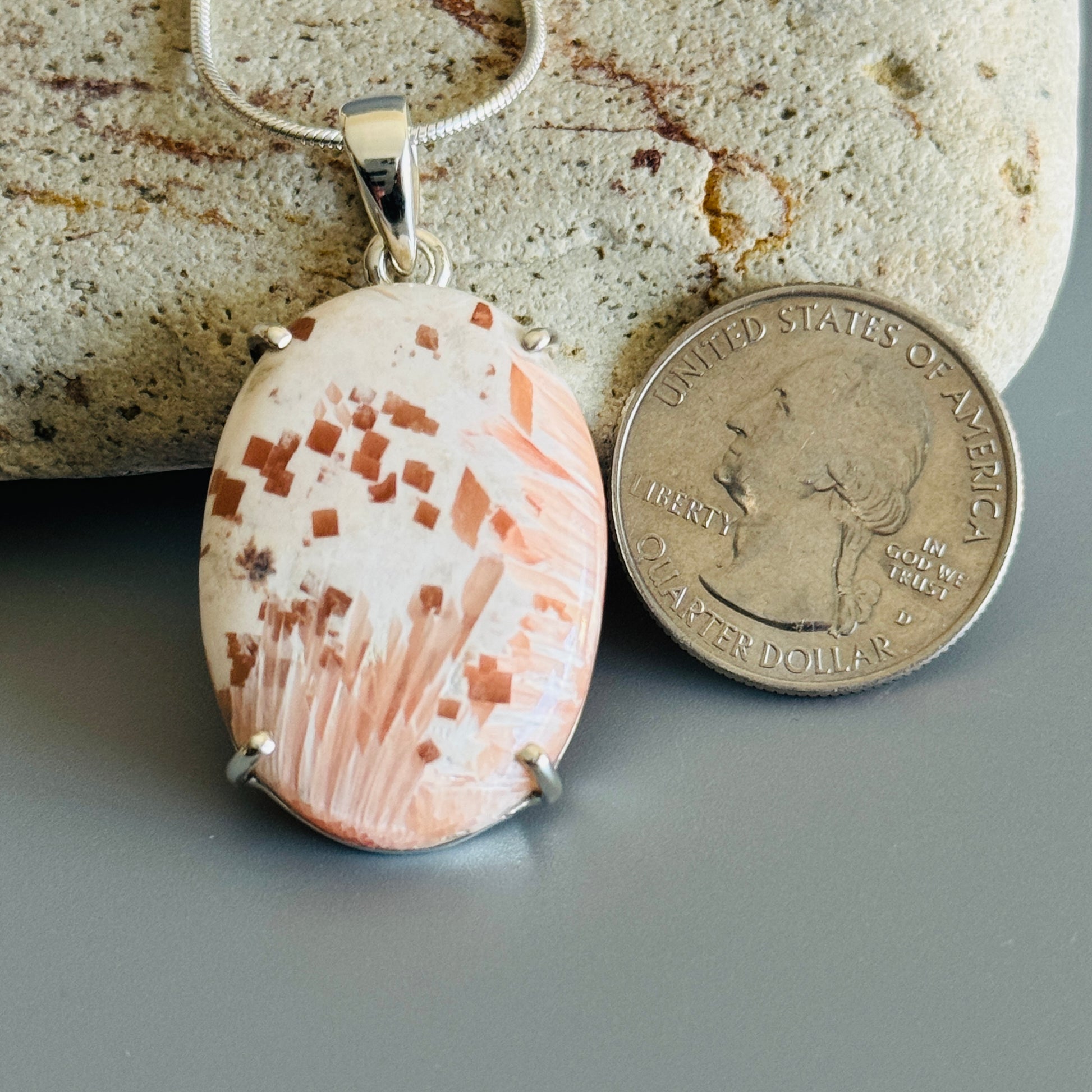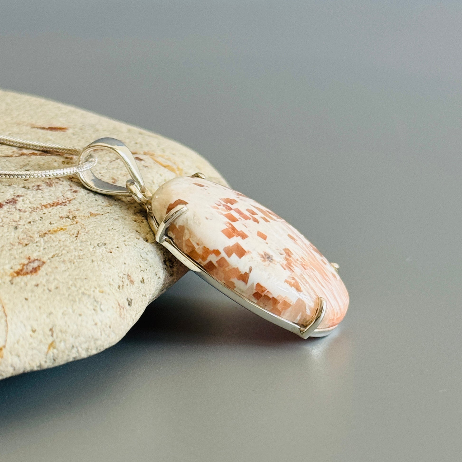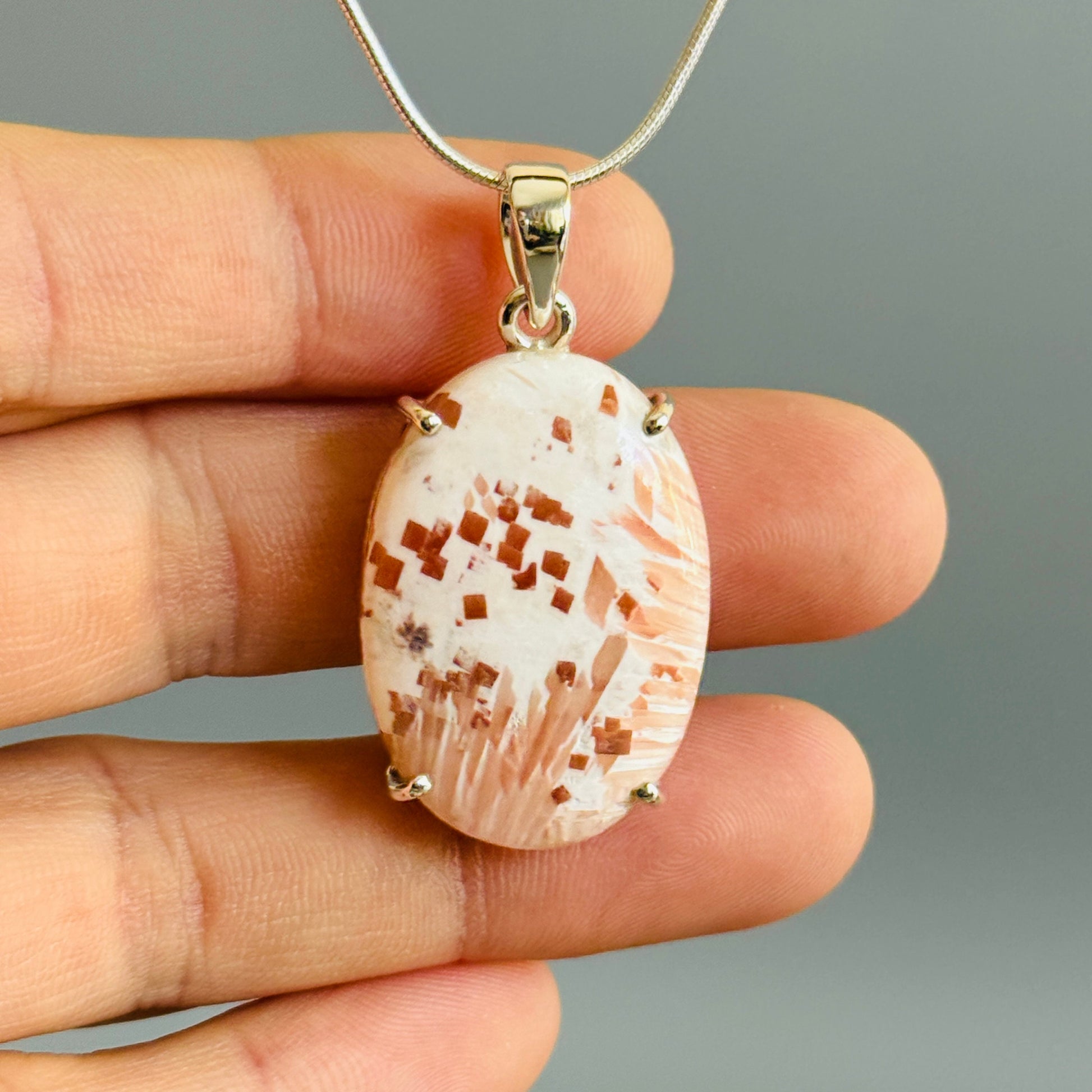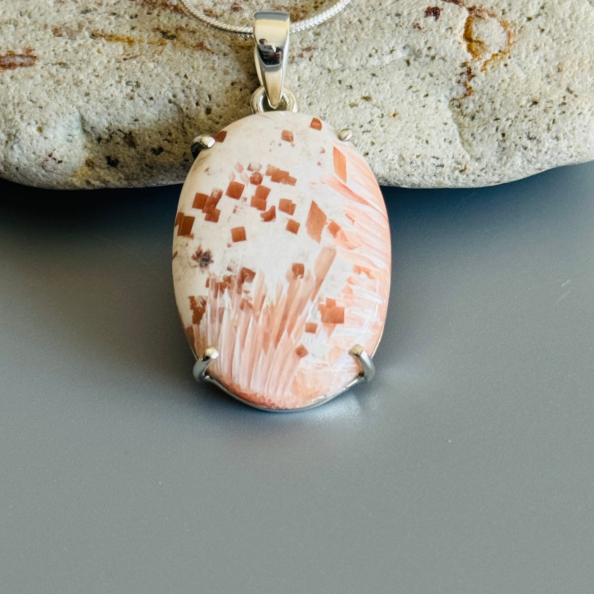 Natural Scolecite Cabochon Pendant, 925 Sterling Silver Pendant, Handmade Pendant Necklace Jewelry, Gift for her, Pink Scolecite Oval