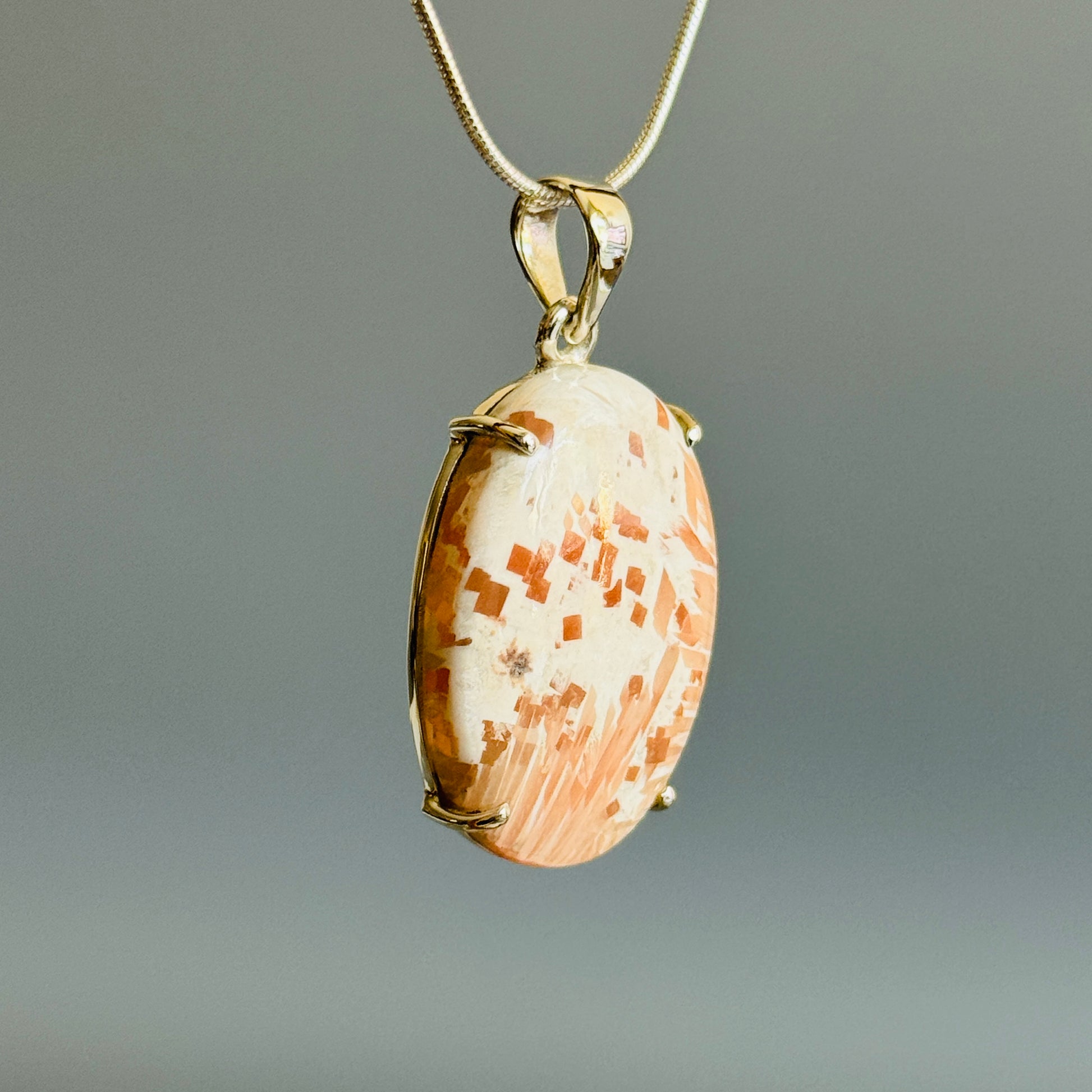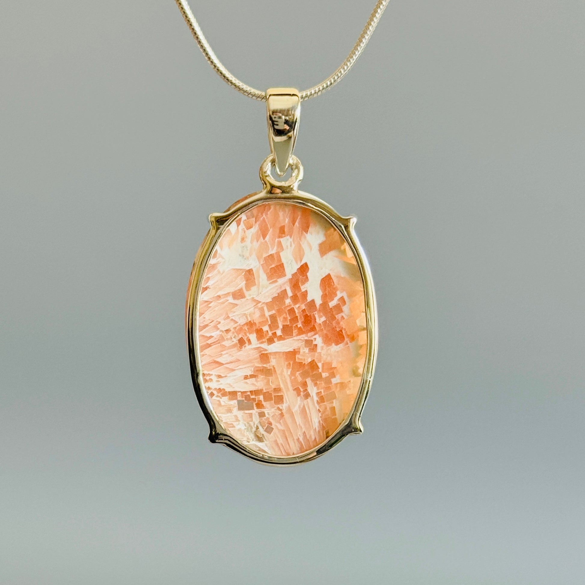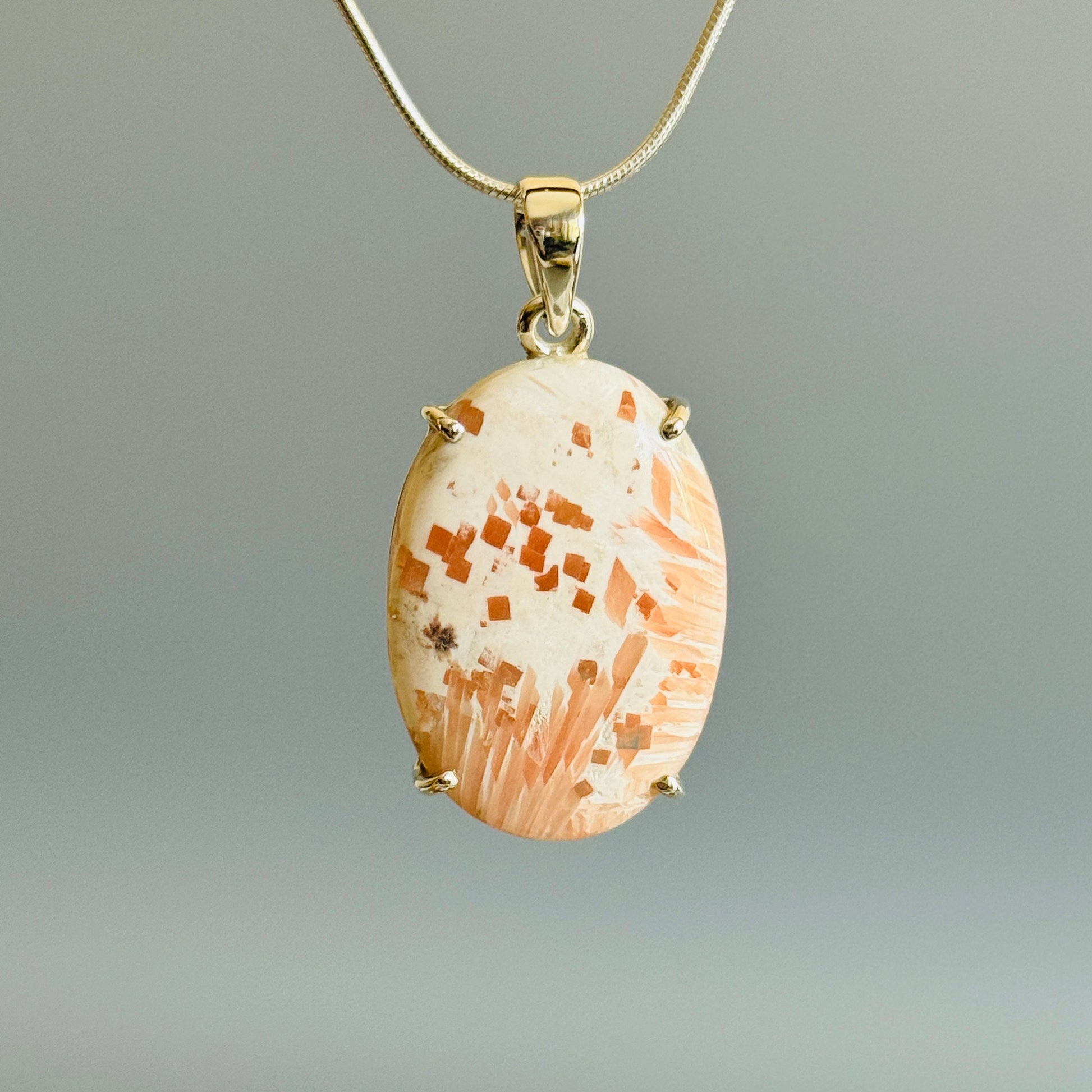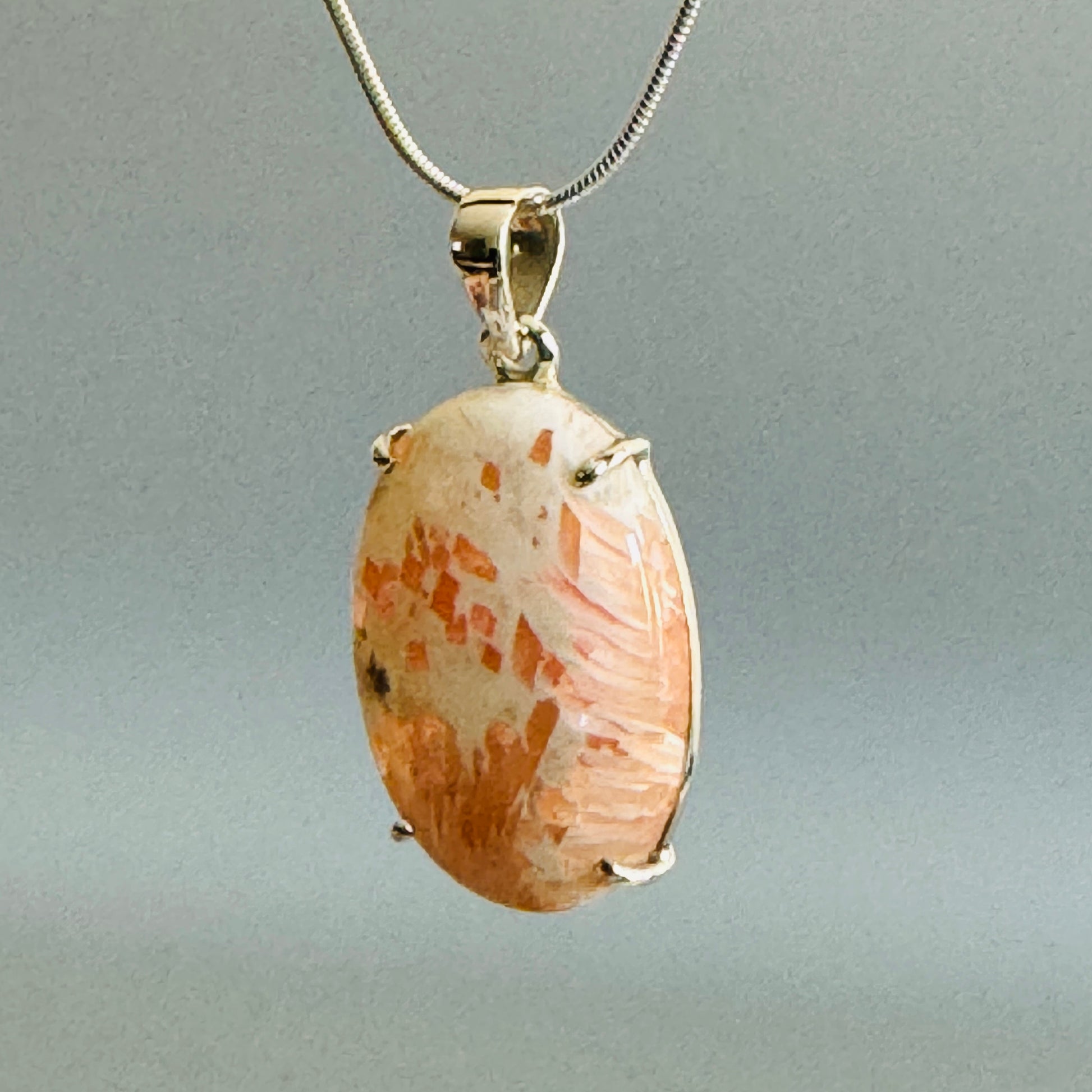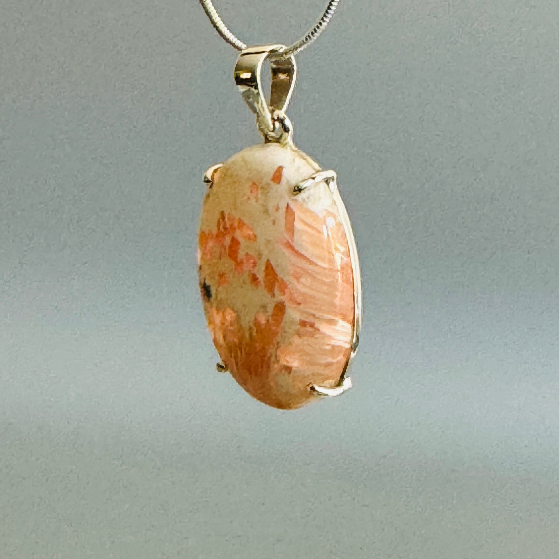 Natural Scolecite Cabochon Pendant, 925 Sterling Silver Pendant, Handmade Pendant Necklace Jewelry, Gift for her, Pink Scolecite Oval