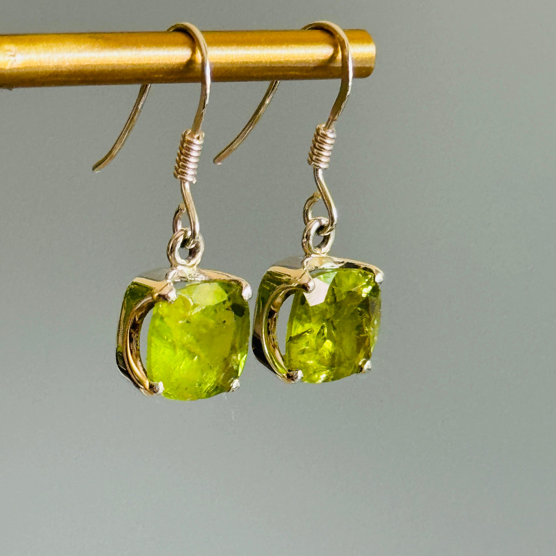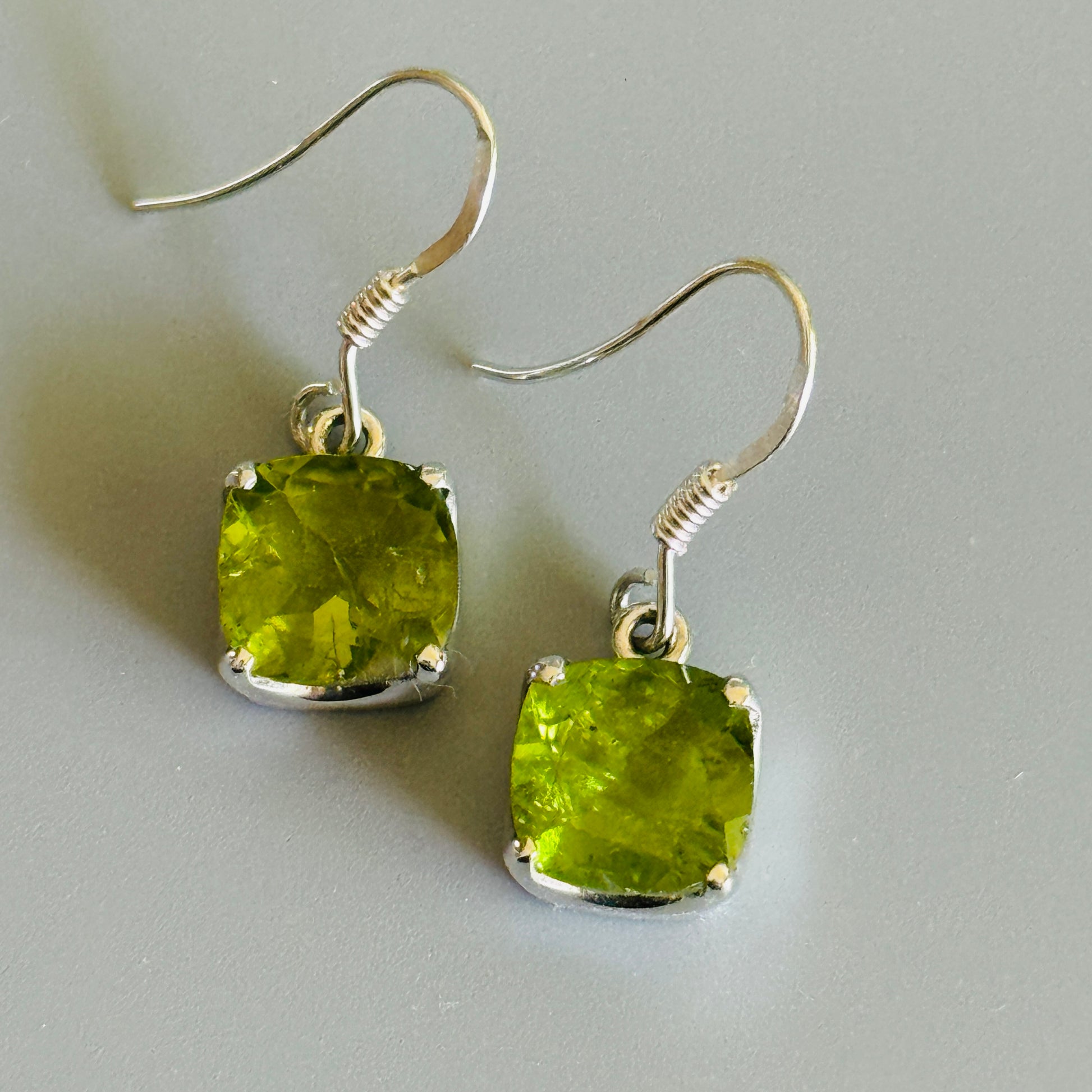 Peridot Earrings, Natural Gemstone Earrings, Handmade Earrings August Birthstone, Green Gemstone earrings square Peridot set in Sterling Silver 925.