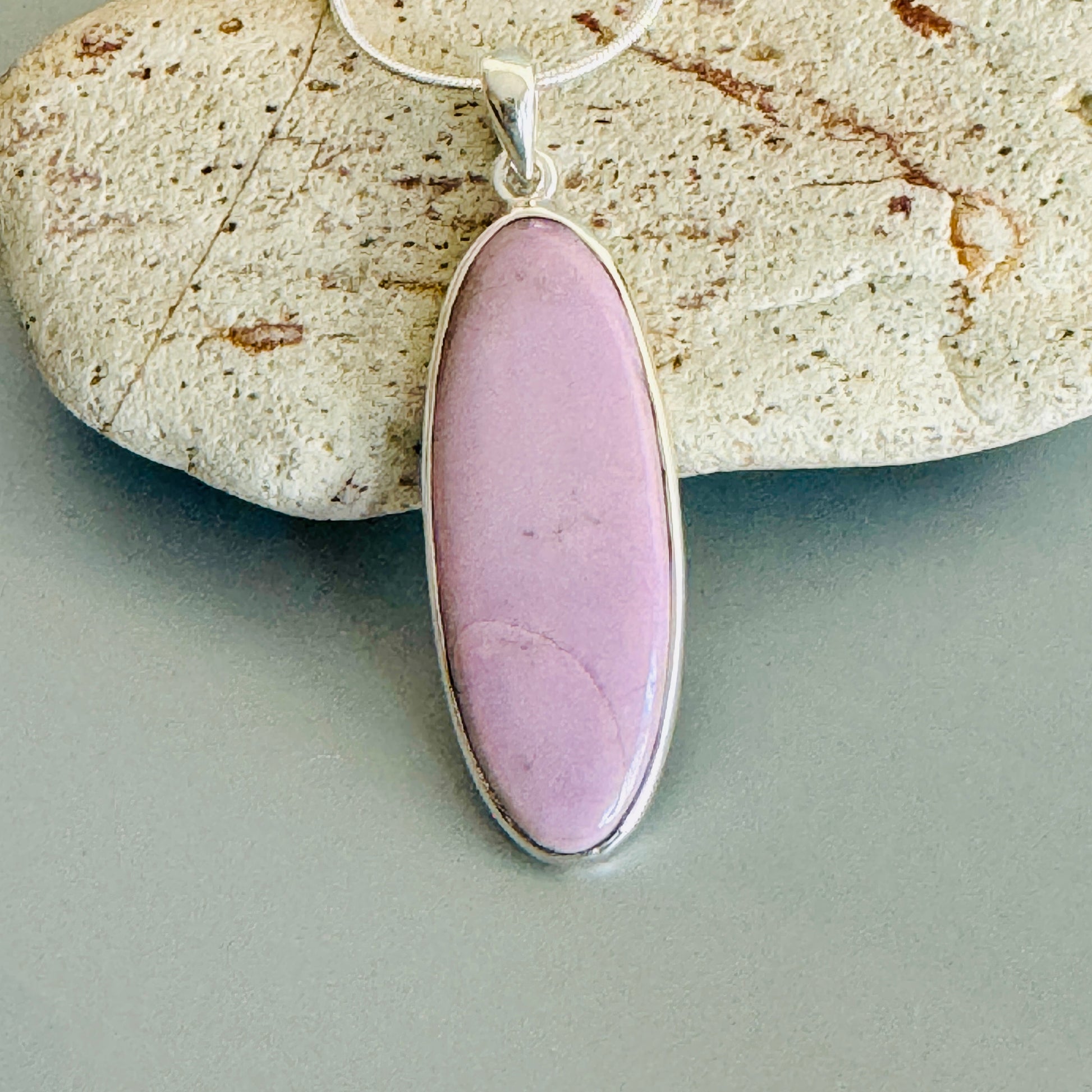 This captivating pendant features a genuine phosphosiderite stone, handcrafted in gleaming 925 sterling silver. The natural gemstone takes center stage, offering a unique touch to this beautiful piece.