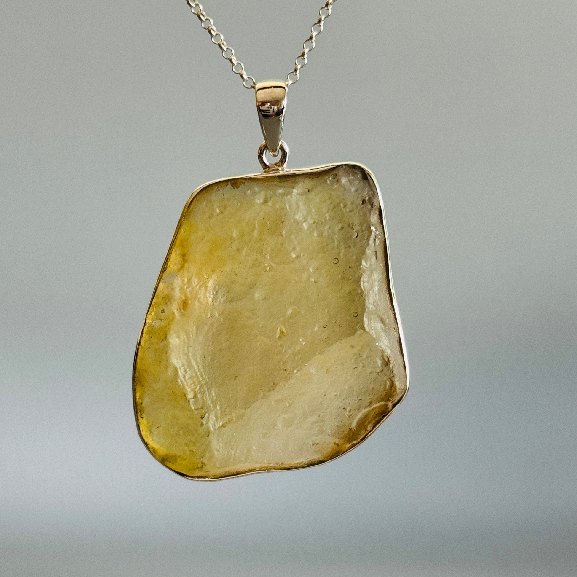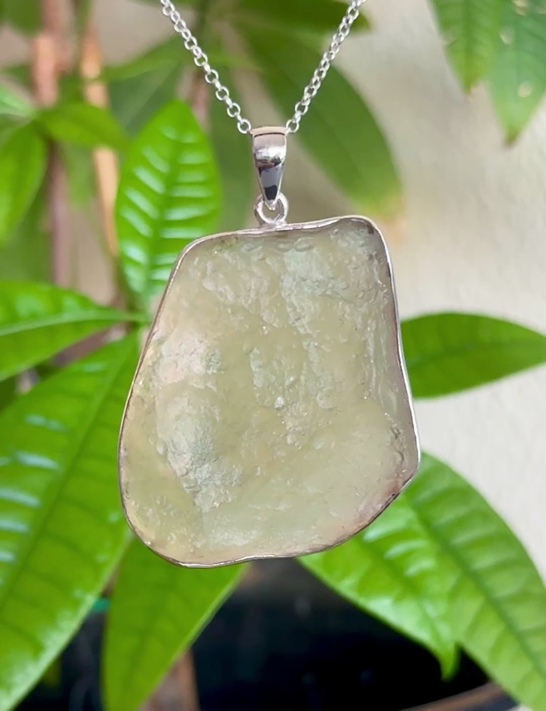 Rare Natural Libyan Desert Glass Pendant, Raw Libyan Desert Glass Necklace, Unique unpolished Jewelry, 925 Sterling Silver Pendant, X-Large