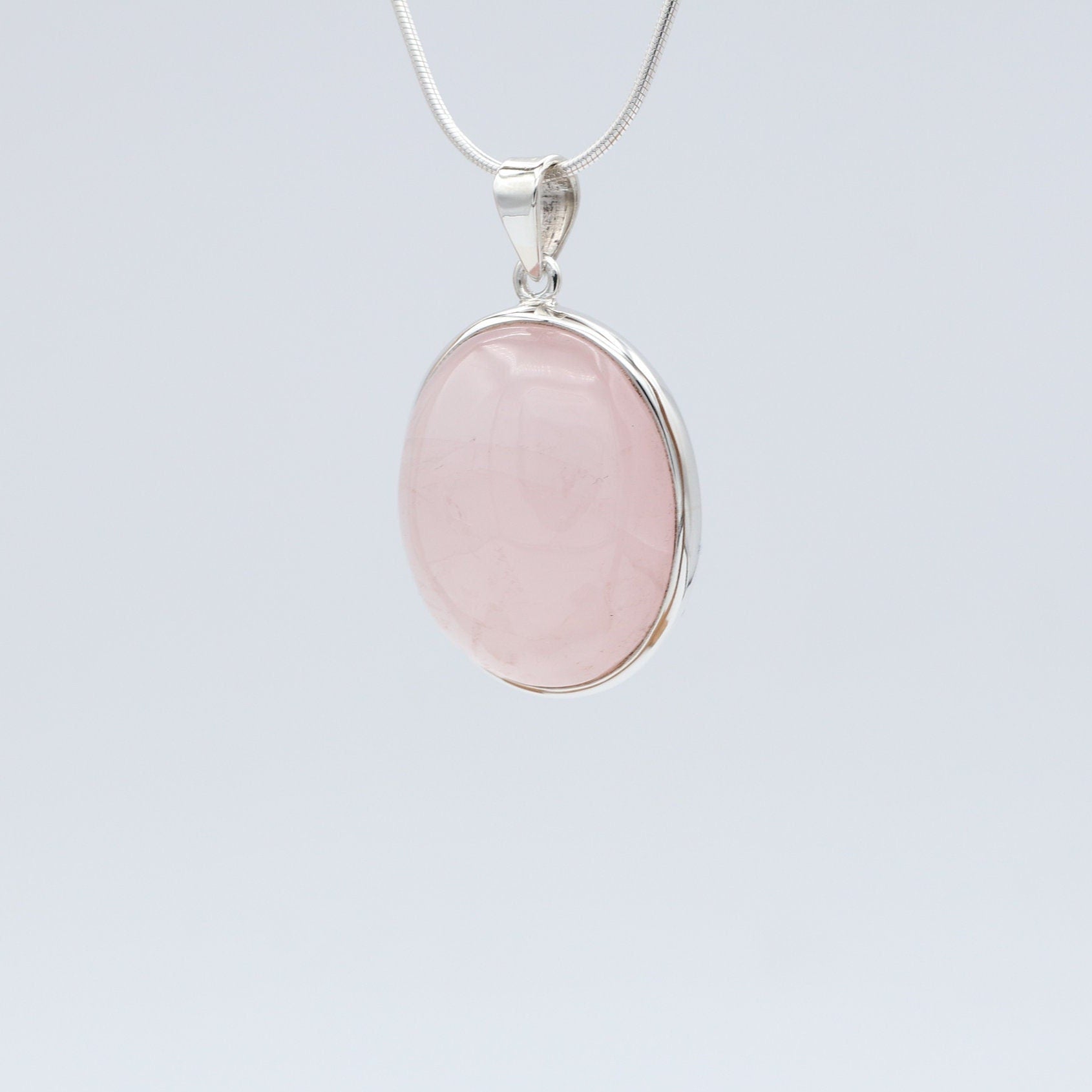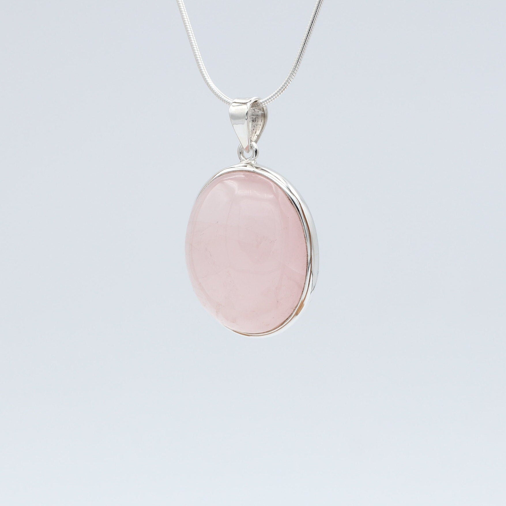 Beautiful natural rose quartz oval shaped pendant. Handmade high quality 925 silver and natural rose quartz stone pendant. Very stylish and perfect for every day wear or special occasions. This beautiful pendant would make a perfect and beautiful gift. **Chain sold separately, only pendant included** Oval, Pink.