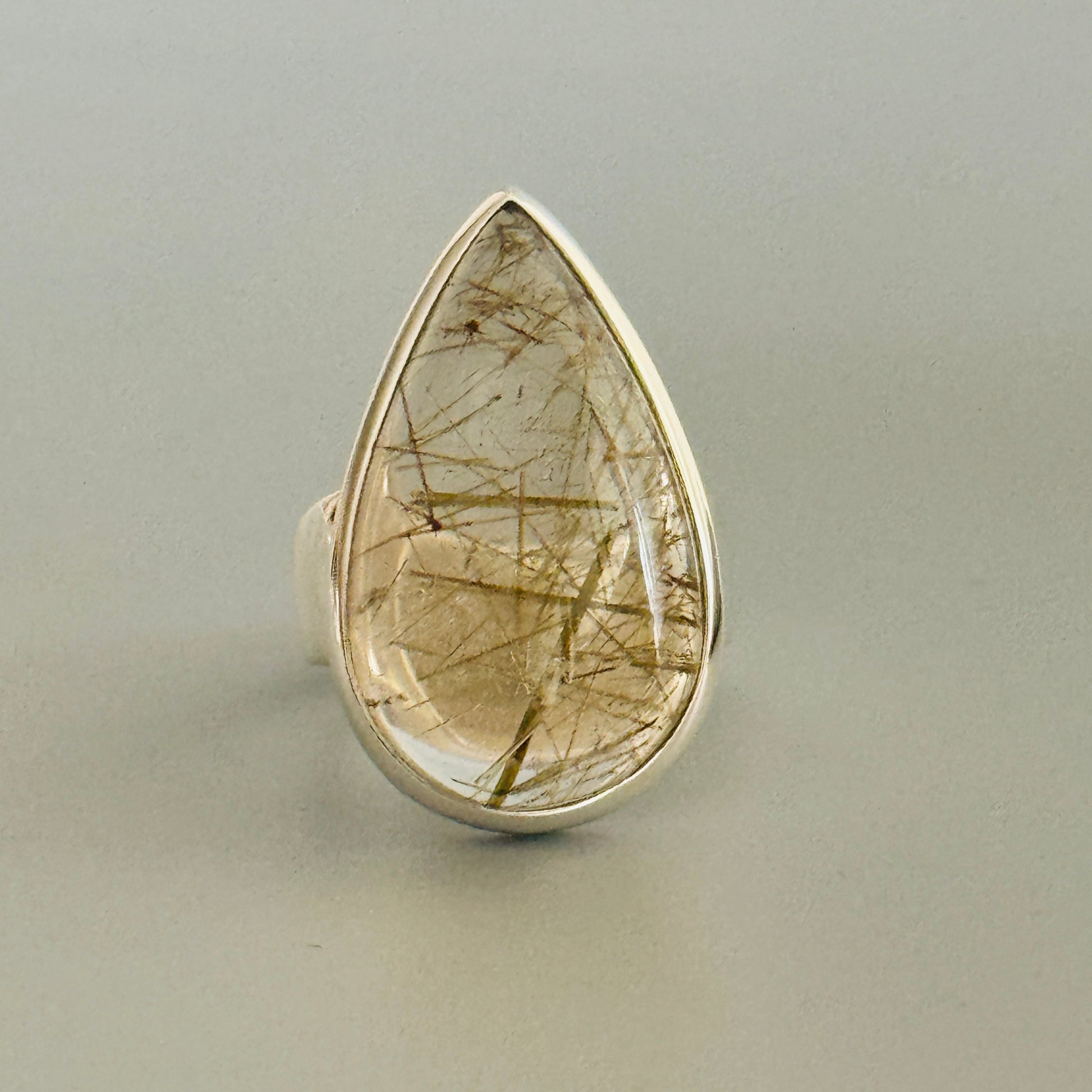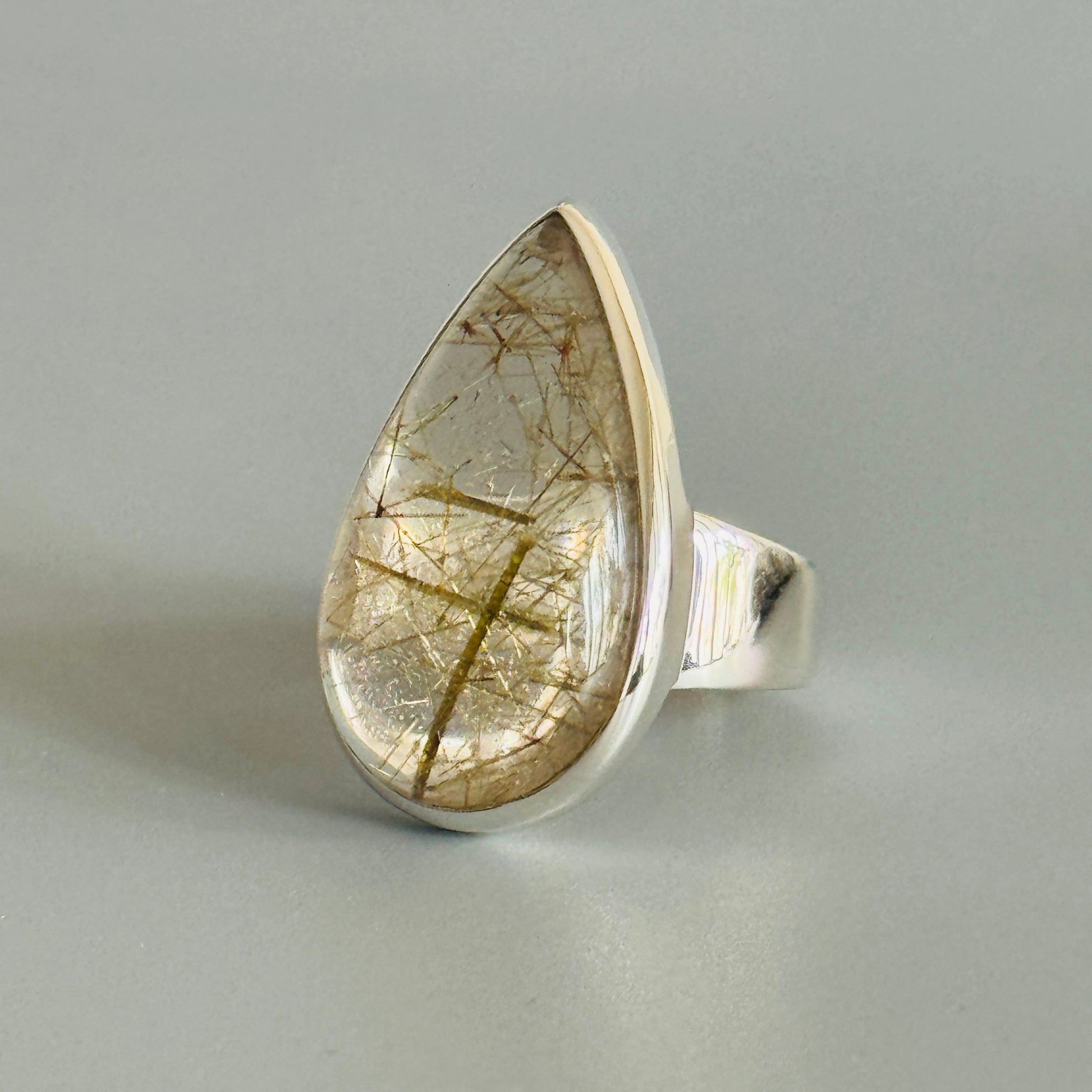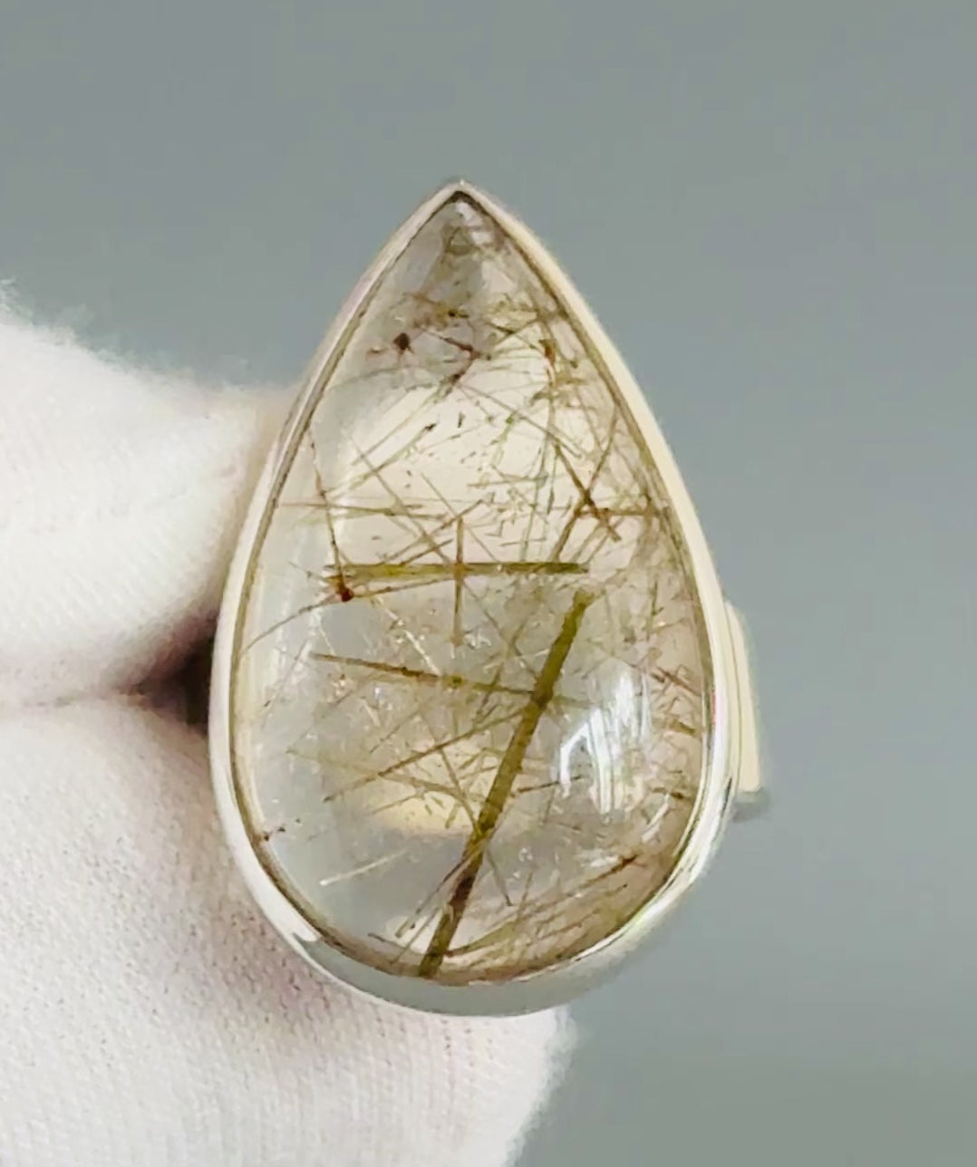 Rutile Quartz Ring, Handmade Sterling Silver Ring, Healing Crystal Ring, Natural Rutile Quartz Ring, Rutile Quartz Crystal Ring Teardrop. Very stylish and perfect for every day wear or special occasions. This beautiful ring would make a perfect and beautiful gift.
