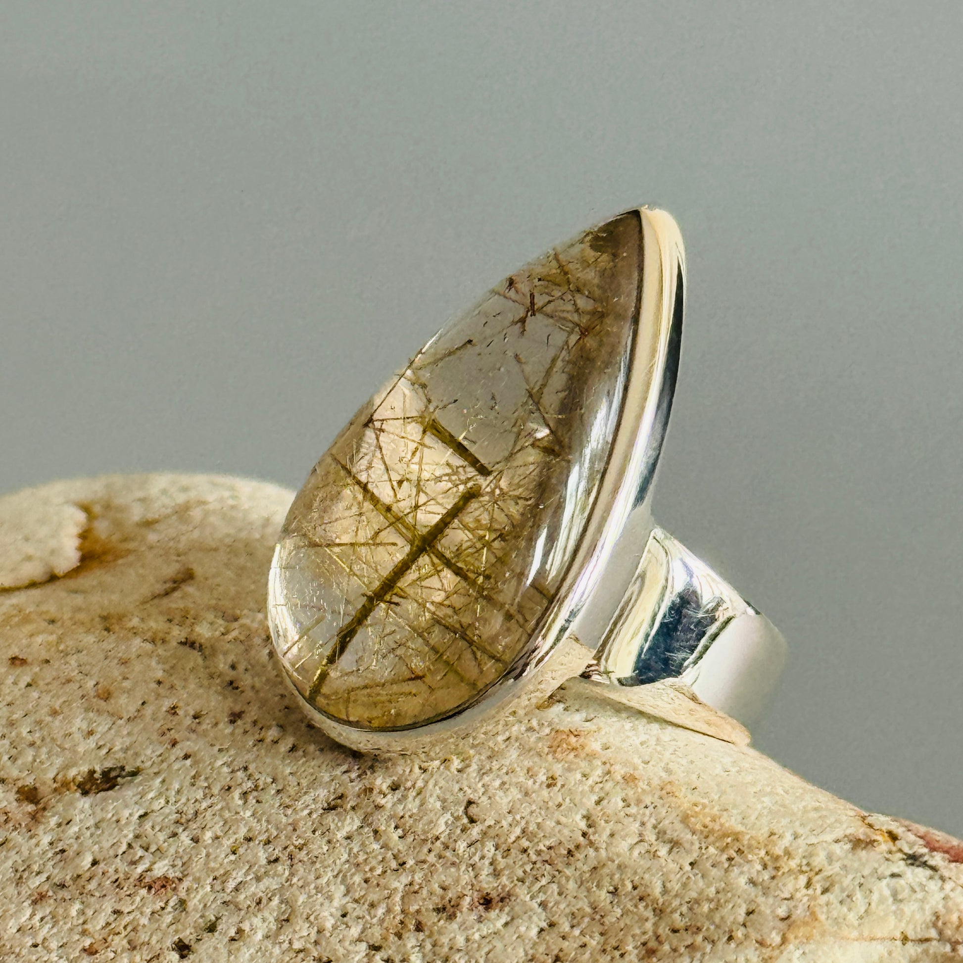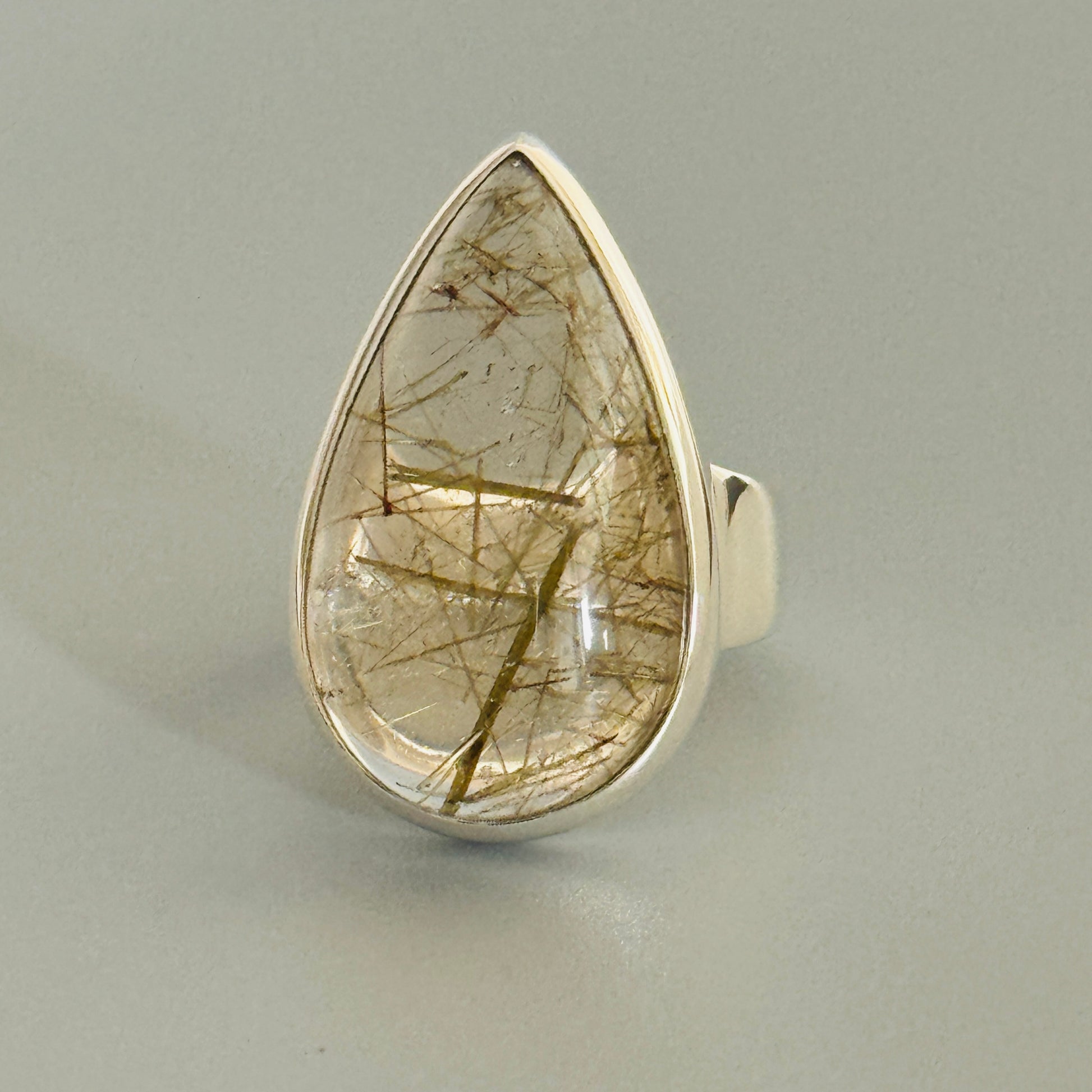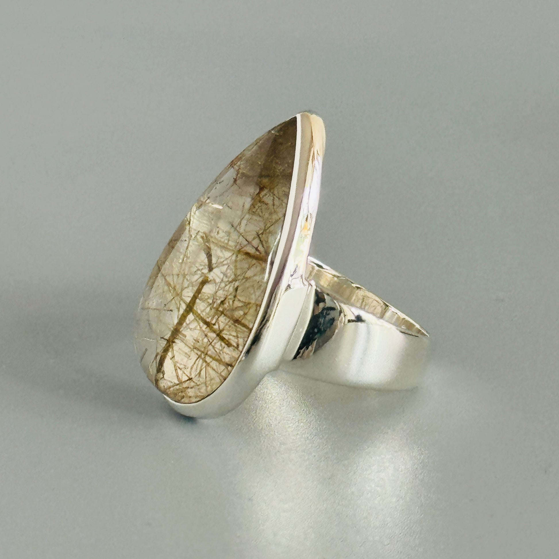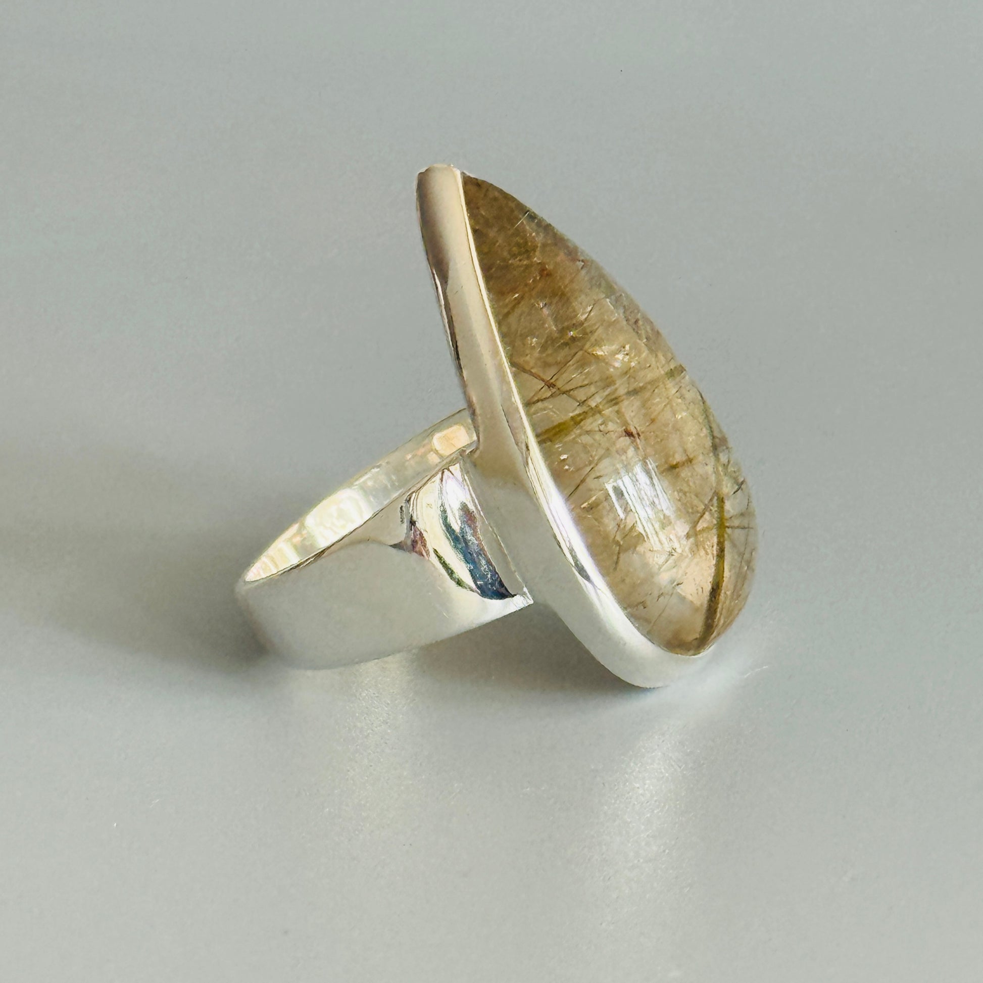 Rutile Quartz Ring, Handmade Sterling Silver Ring, Healing Crystal Ring, Natural Rutile Quartz Ring, Rutile Quartz Crystal Ring Teardrop. Very stylish and perfect for every day wear or special occasions. This beautiful ring would make a perfect and beautiful gift.